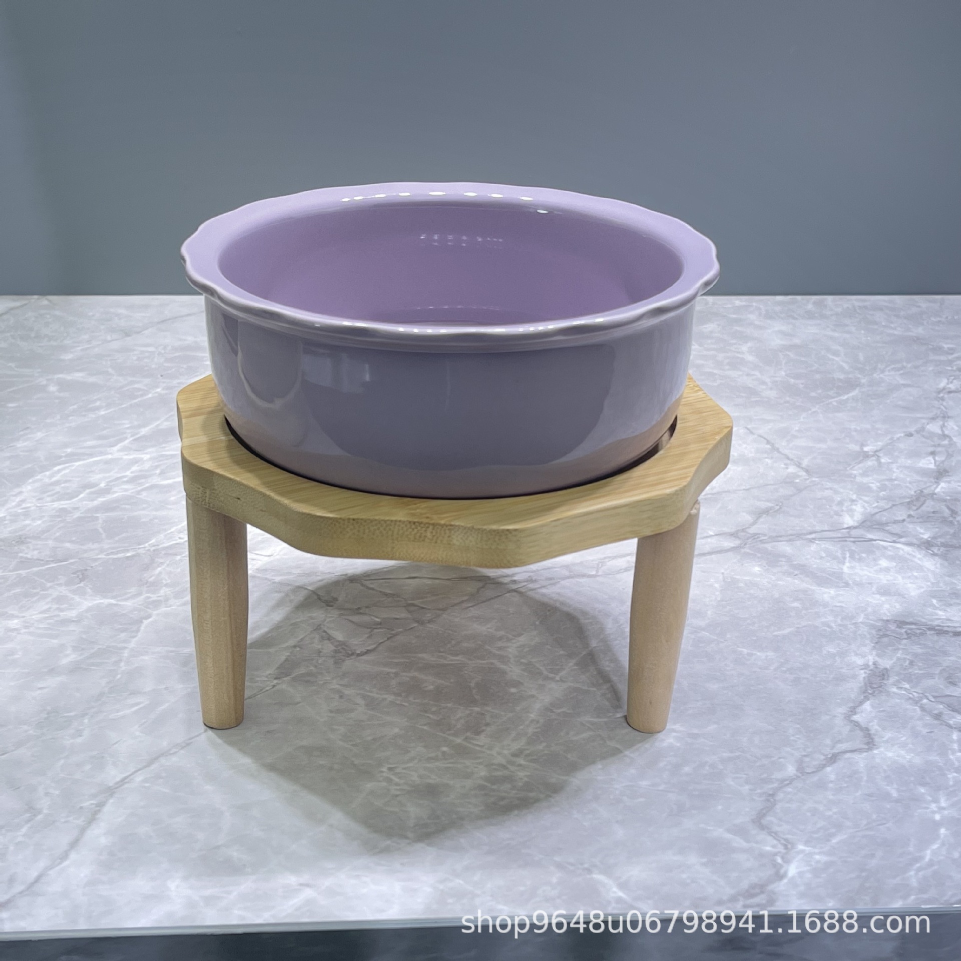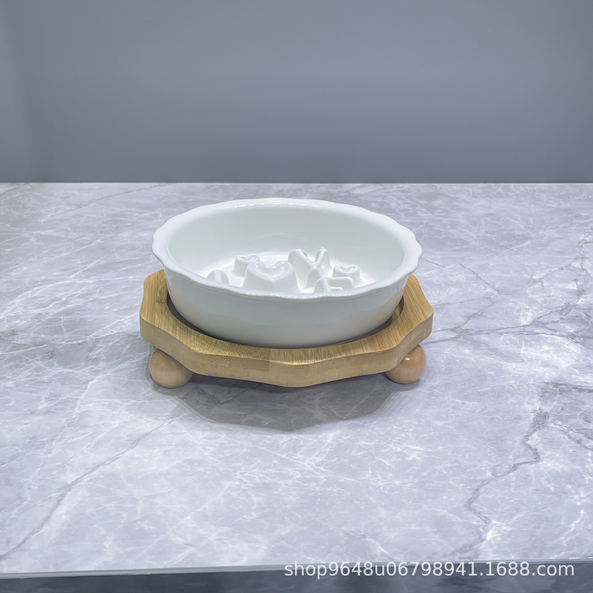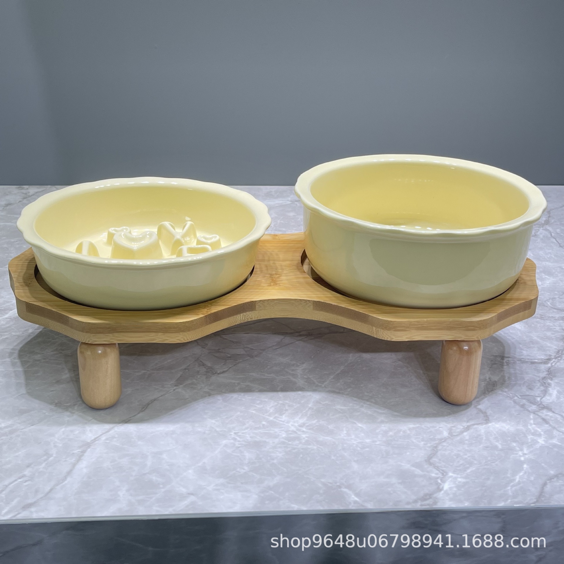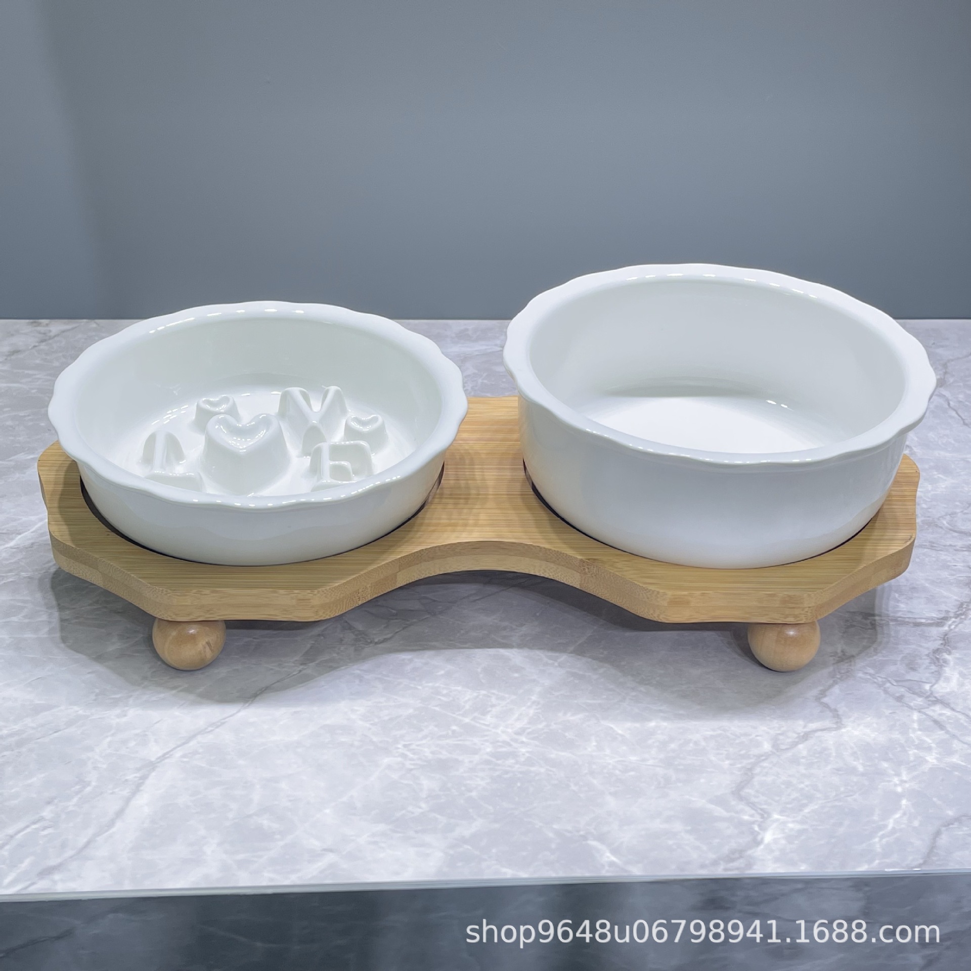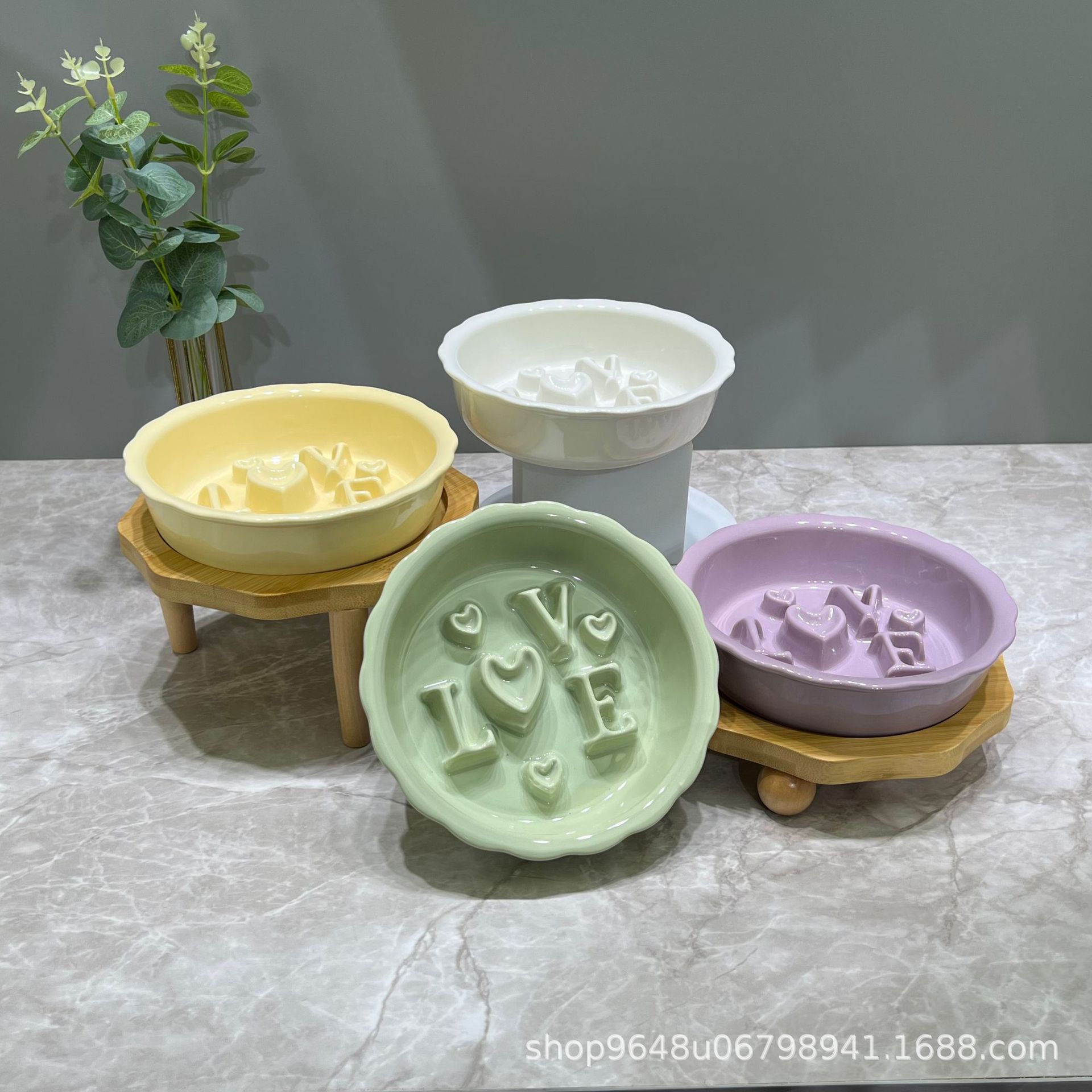 애완동물용 세라믹 그릇, 슬로우 푸드 그릇, 고양이 그릇, 강아지 그릇, 물그릇, 질식 방지 고양이 및 강아지 식기, 식기, 그릇 용품, 높은 다리가 있는 나무 받침대