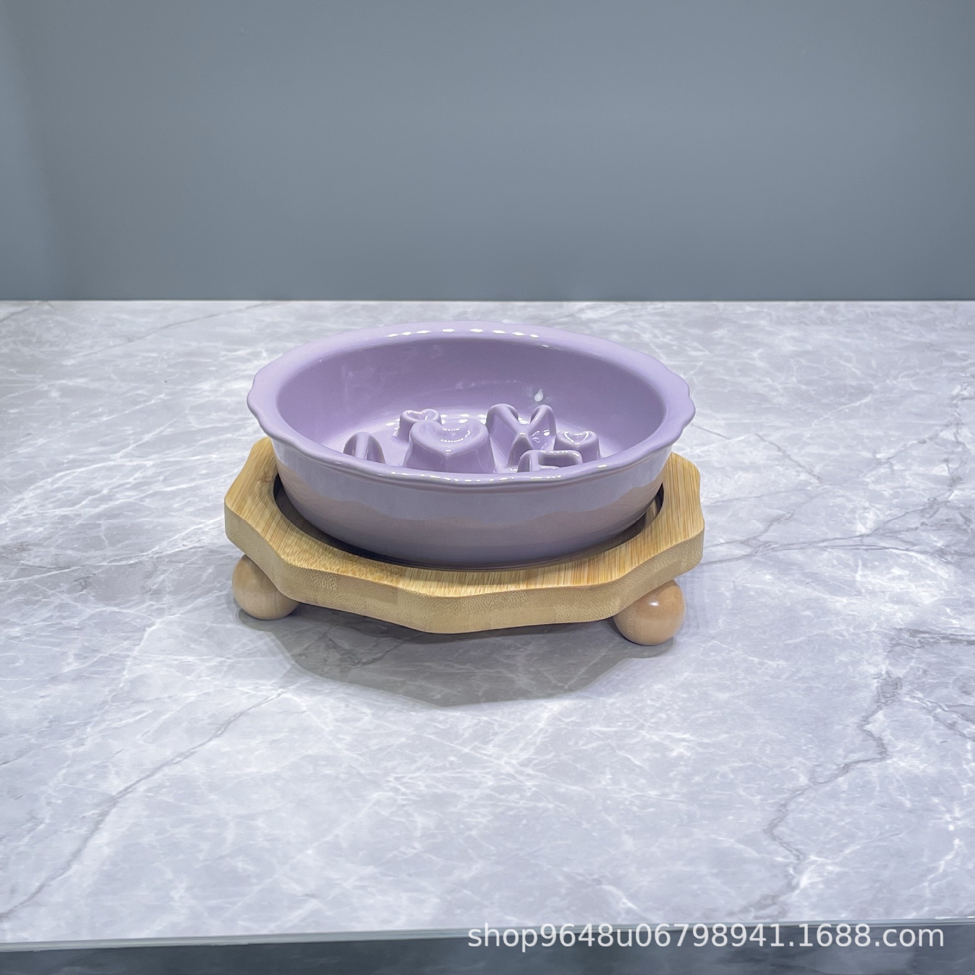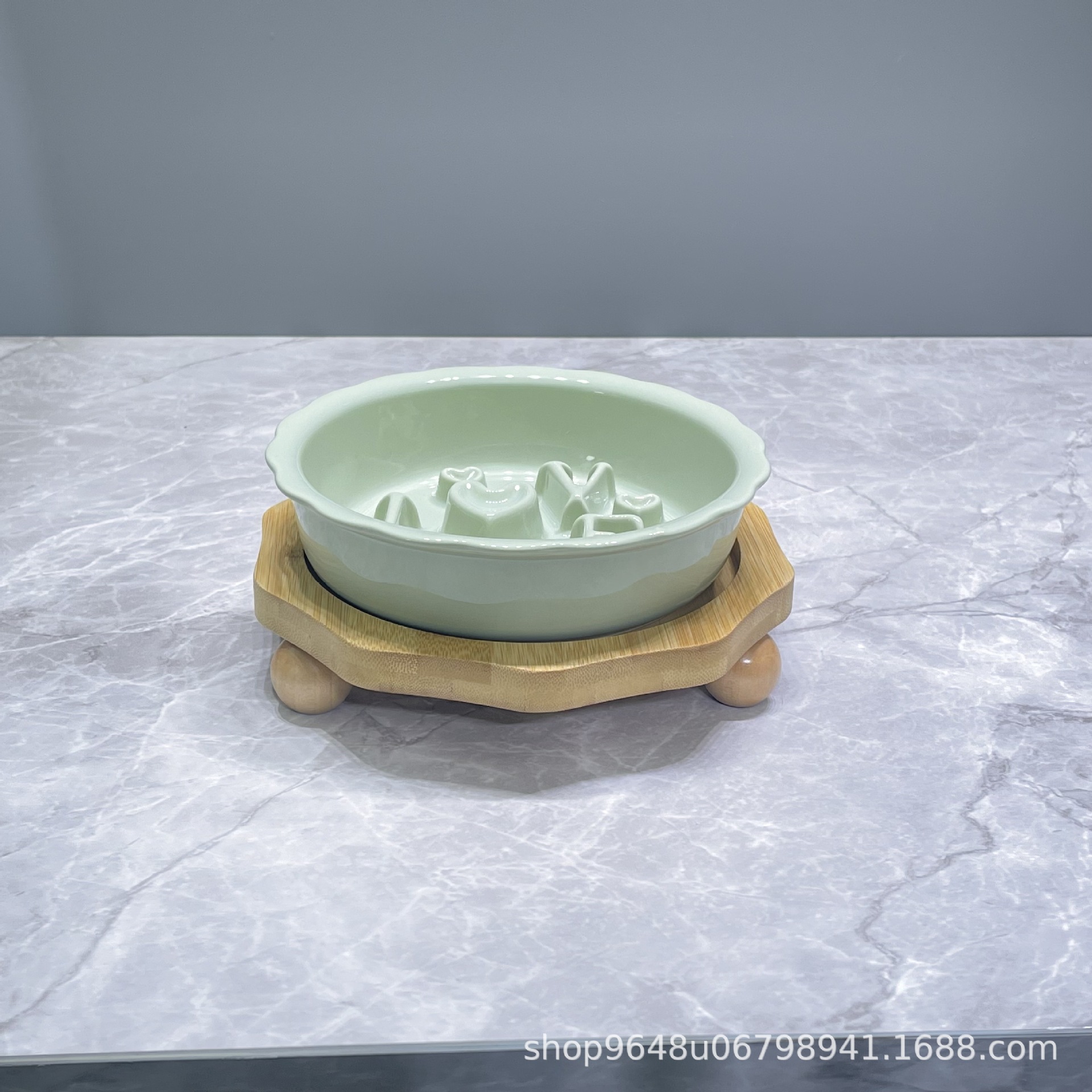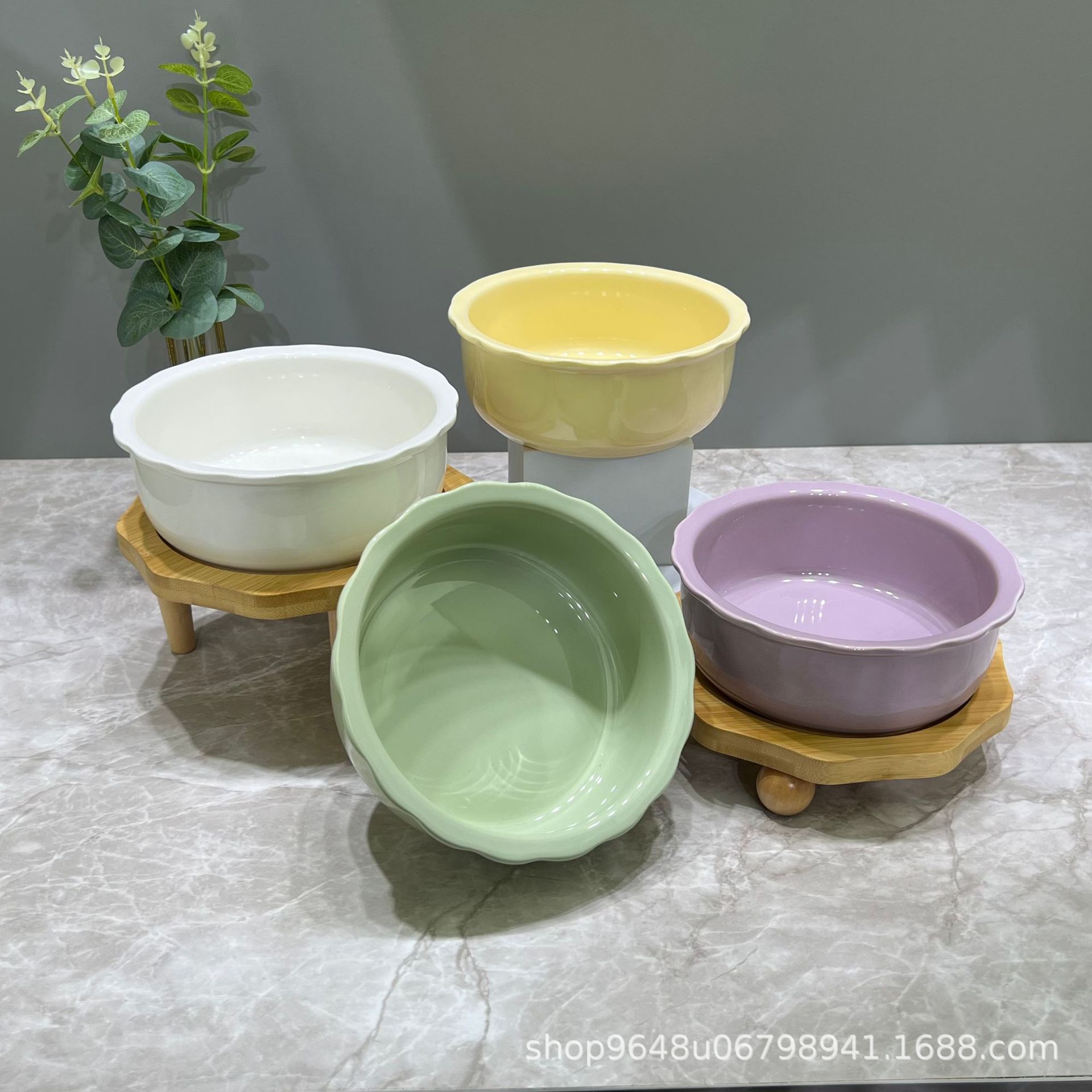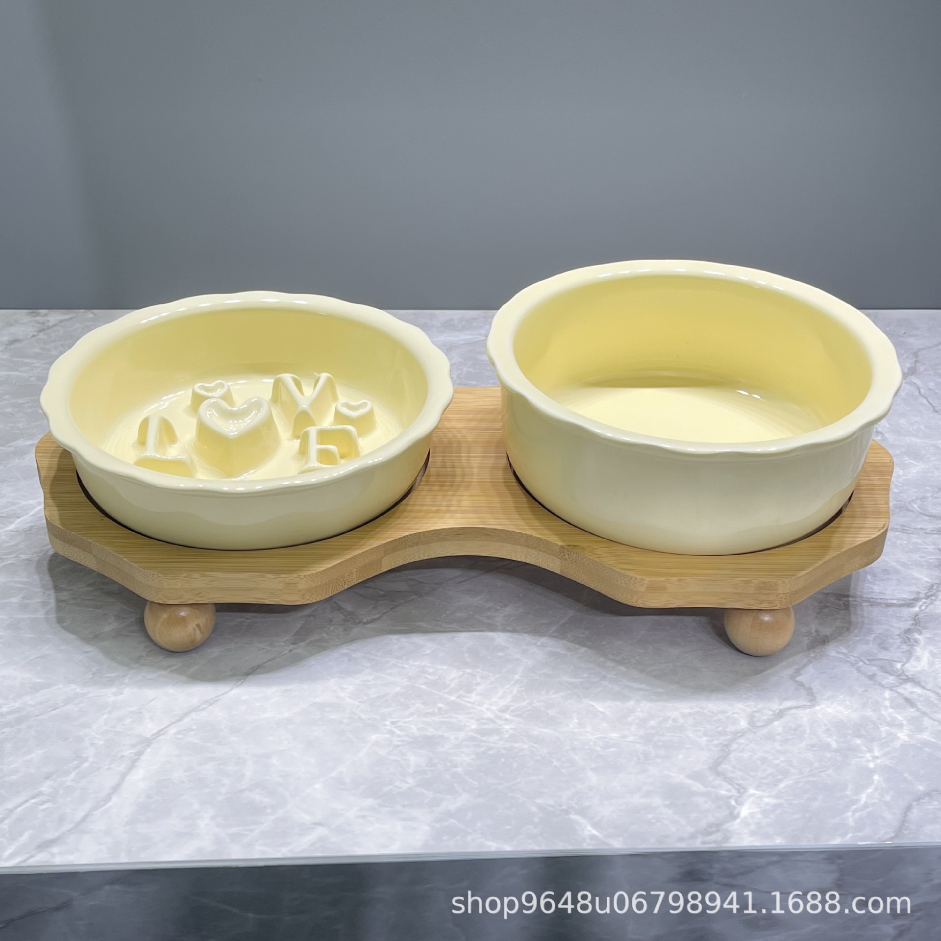 애완동물용 세라믹 그릇, 슬로우 푸드 그릇, 고양이 그릇, 강아지 그릇, 물그릇, 질식 방지 고양이 및 강아지 식기, 식기, 그릇 용품, 높은 다리가 있는 나무 받침대