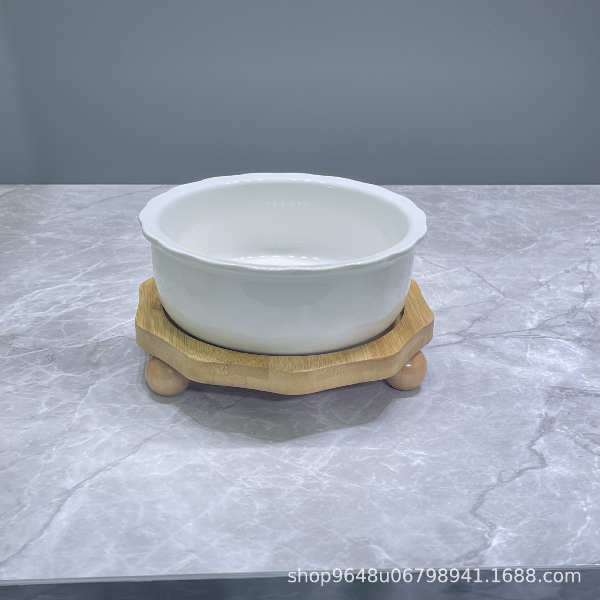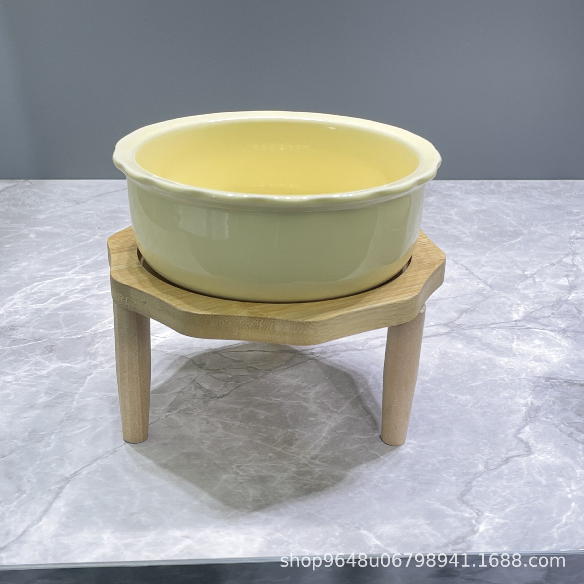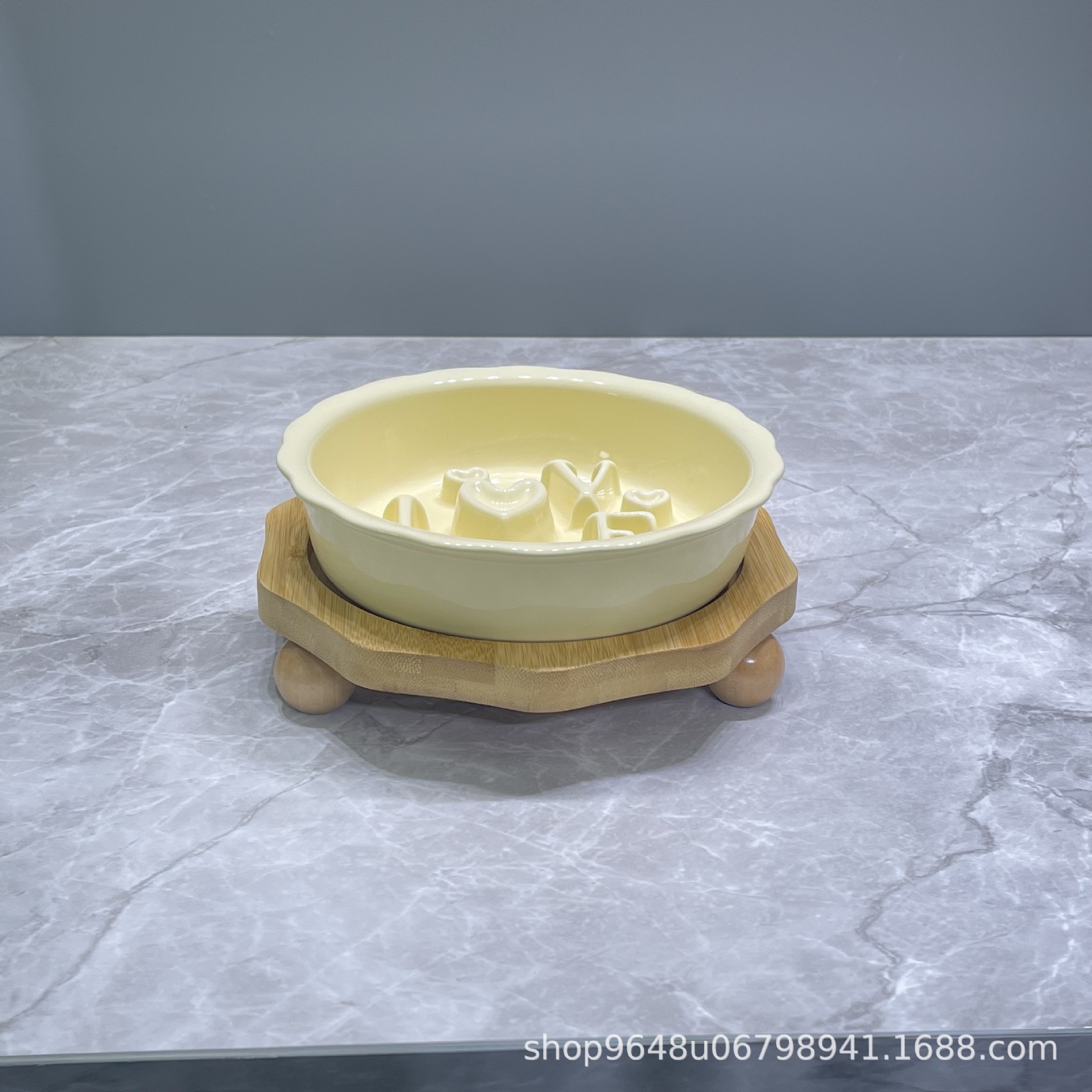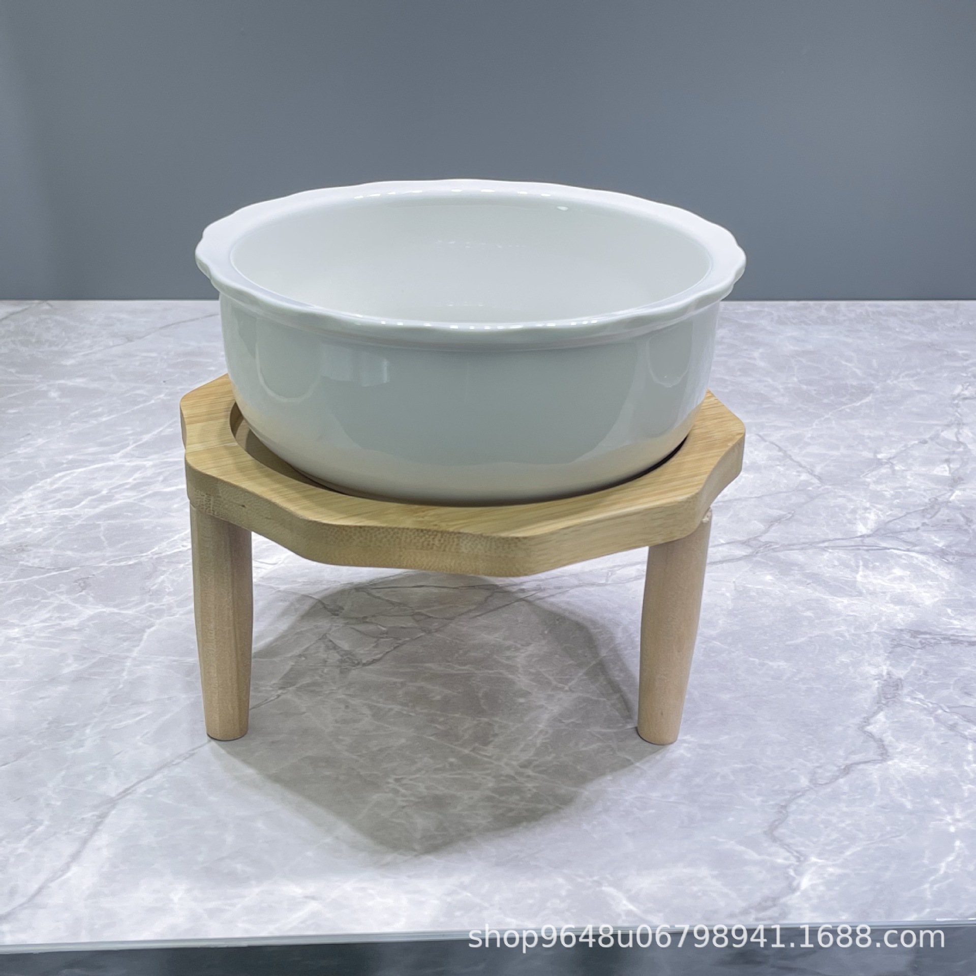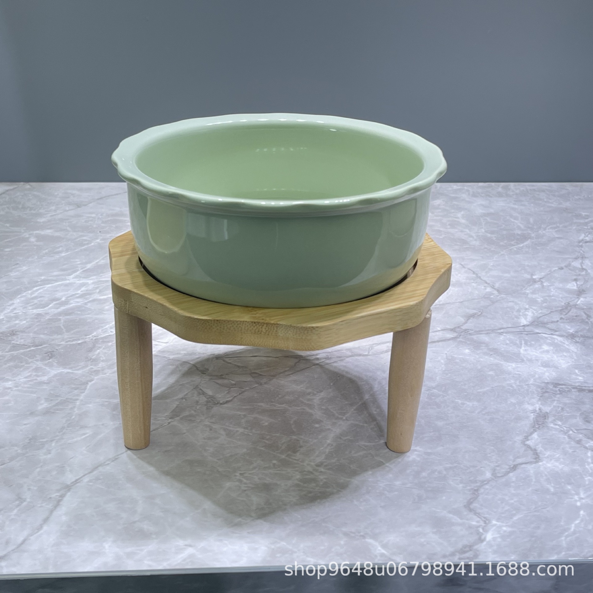 애완동물용 세라믹 그릇, 슬로우 푸드 그릇, 고양이 그릇, 강아지 그릇, 물그릇, 질식 방지 고양이 및 강아지 식기, 식기, 그릇 용품, 높은 다리가 있는 나무 받침대