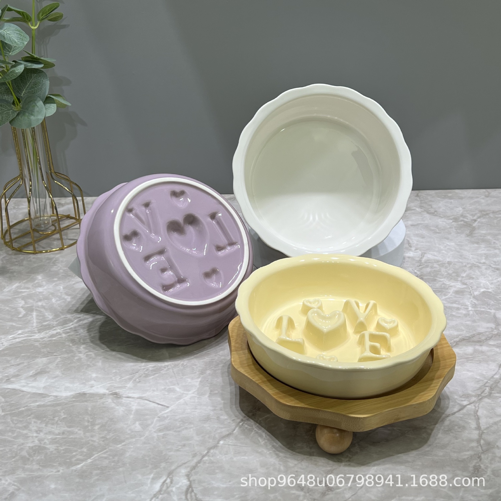 애완동물용 세라믹 그릇, 슬로우 푸드 그릇, 고양이 그릇, 강아지 그릇, 물그릇, 질식 방지 고양이 및 강아지 식기, 식기, 그릇 용품, 높은 다리가 있는 나무 받침대스토어 가기