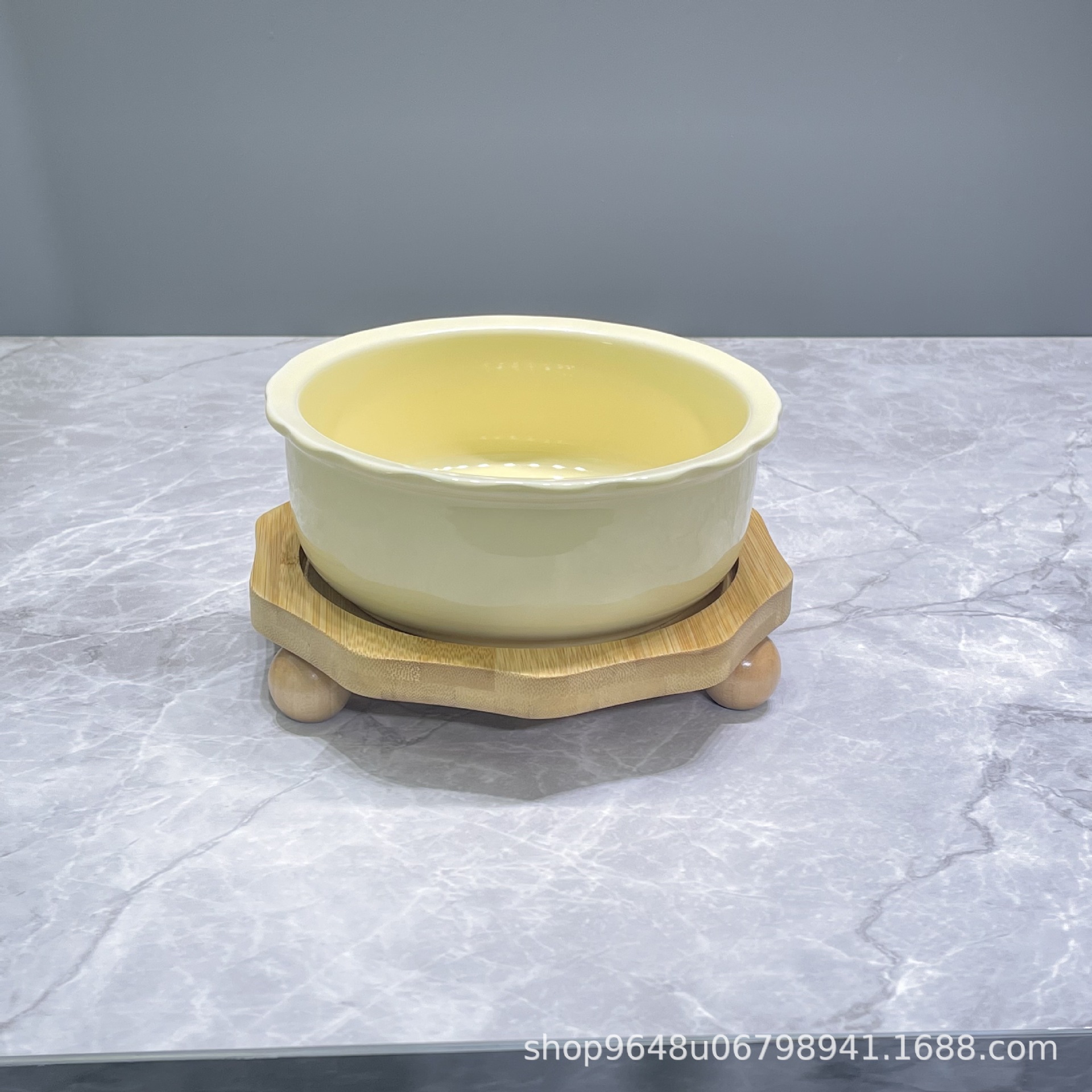 • 레이스 슬로우 푸드 그릇 - 커스터드 [다리가 낮은 단일 나무 베이스 포함]