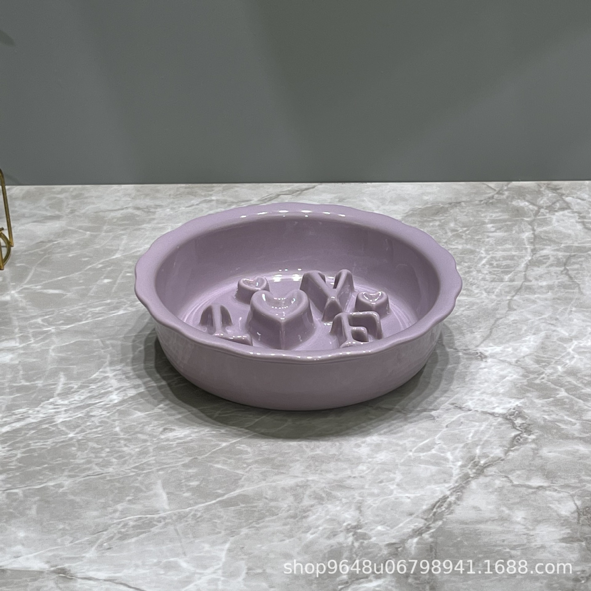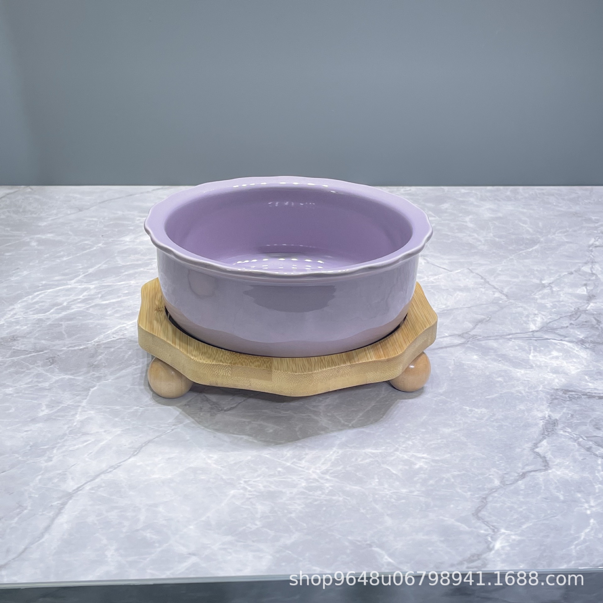 • 레이스 슬로우 푸드 그릇 - 보라색 [키가 큰 단일 나무 베이스 포함]