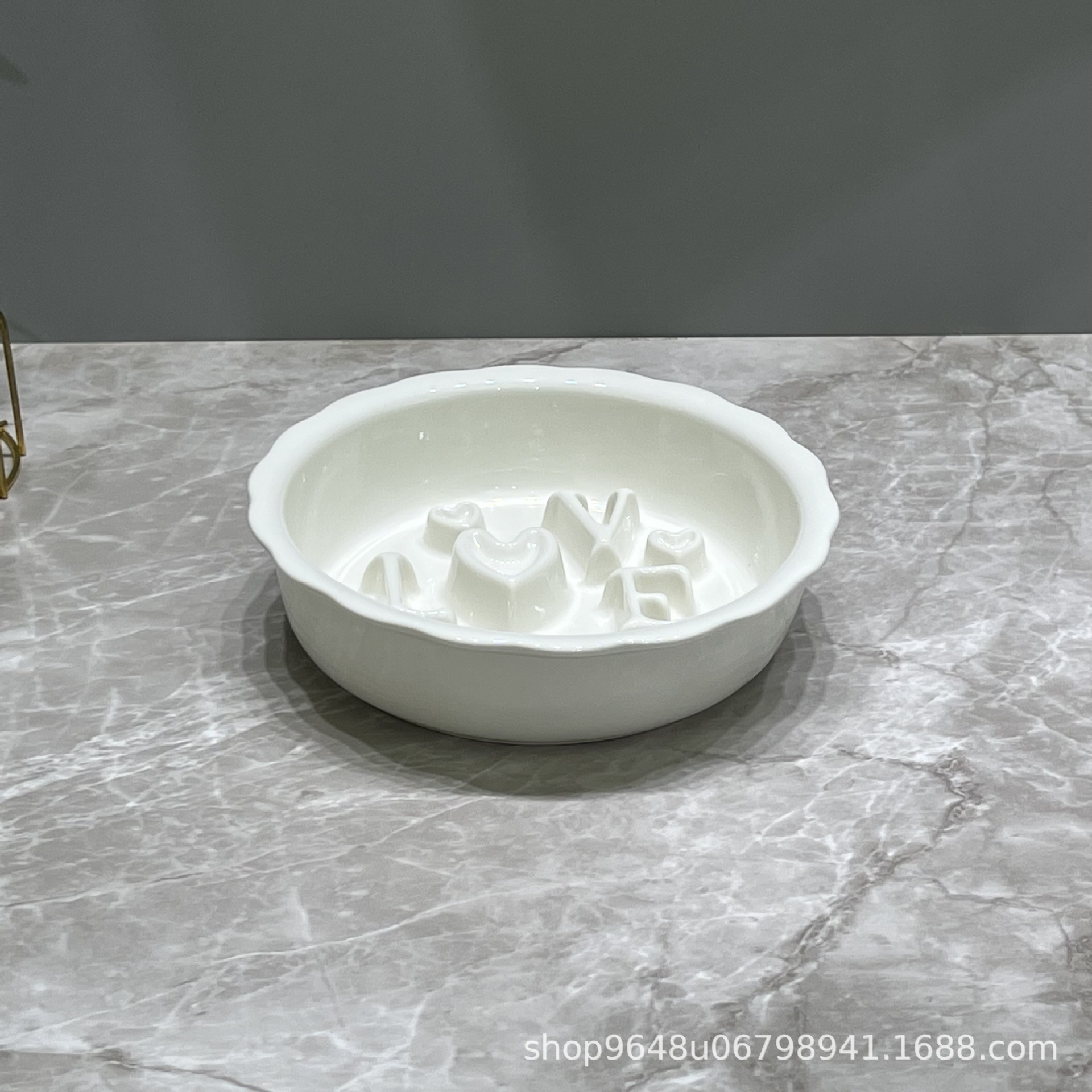 • 레이스 슬로우 푸드 그릇 - 화이트 [낮은 단일 나무 받침대 포함]