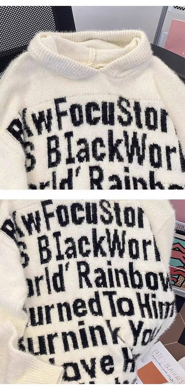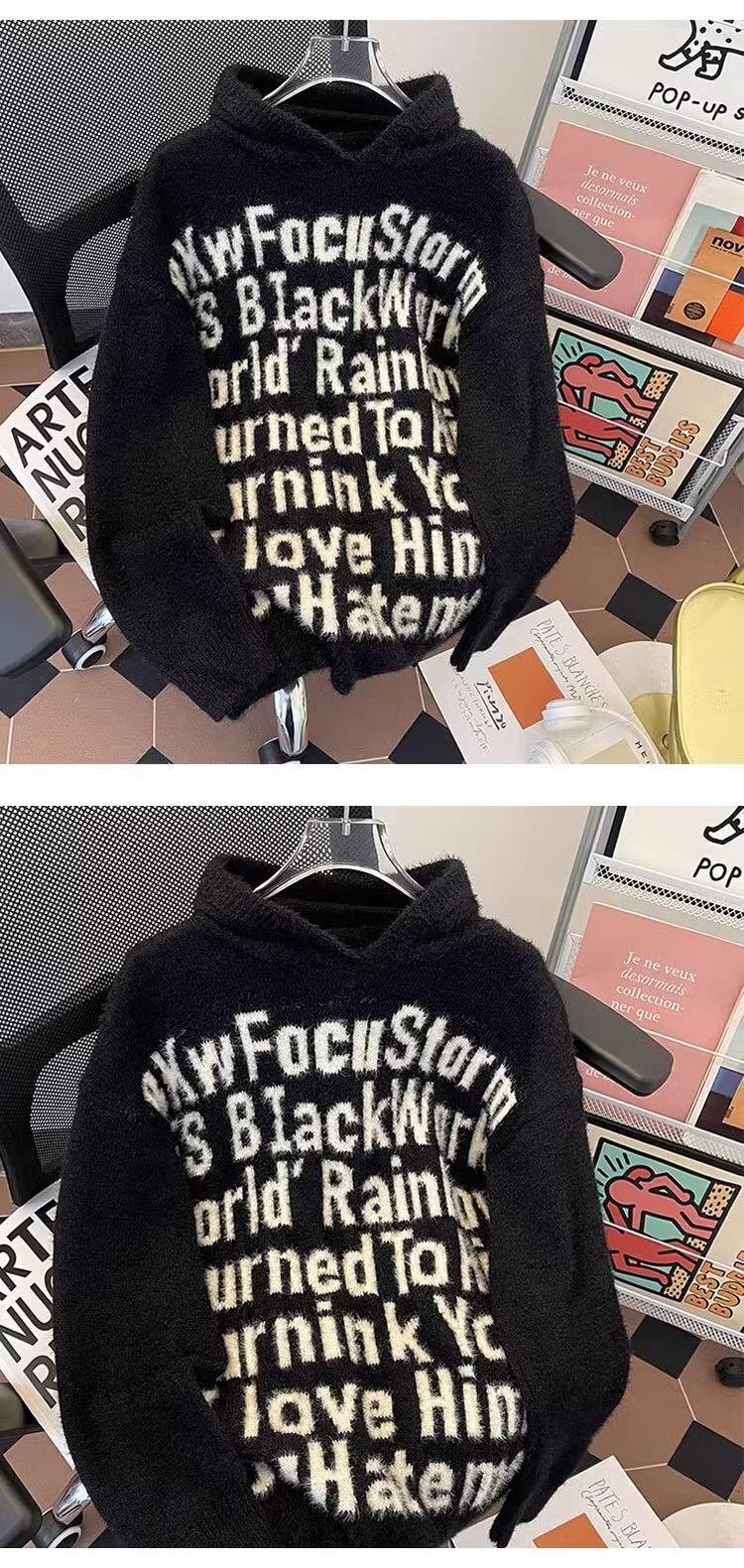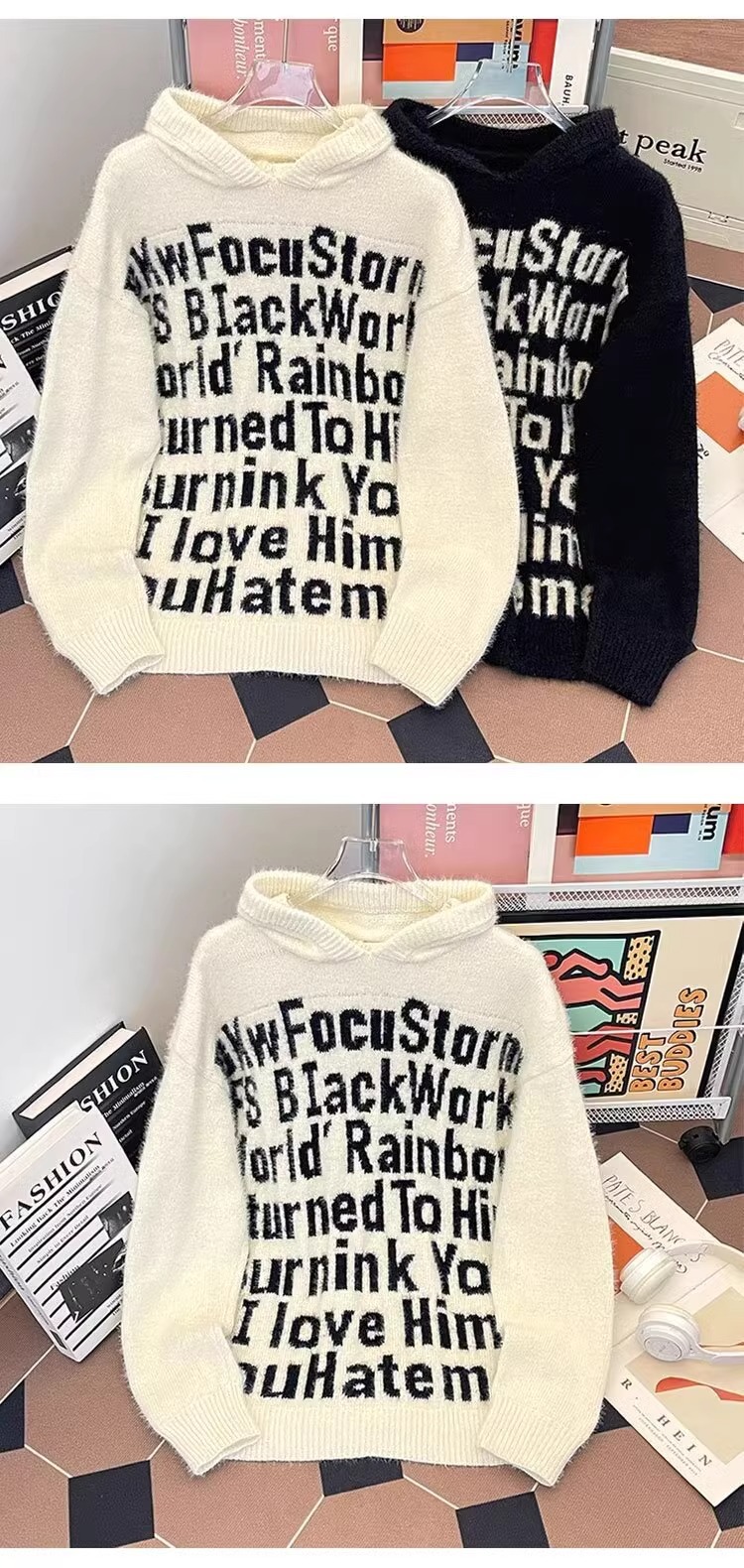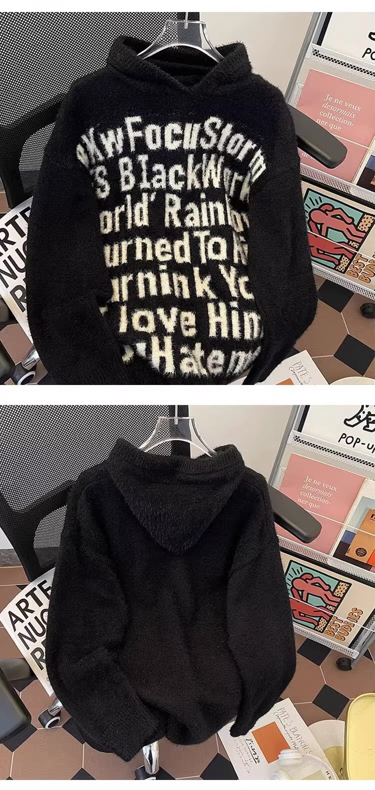 알파벳 자카드 후드 니트 후디 남자의 가을과 겨울 미국 패션 브랜드 느슨한 캐주얼 커플 풀오버 스웨터 재킷스토어 가기
