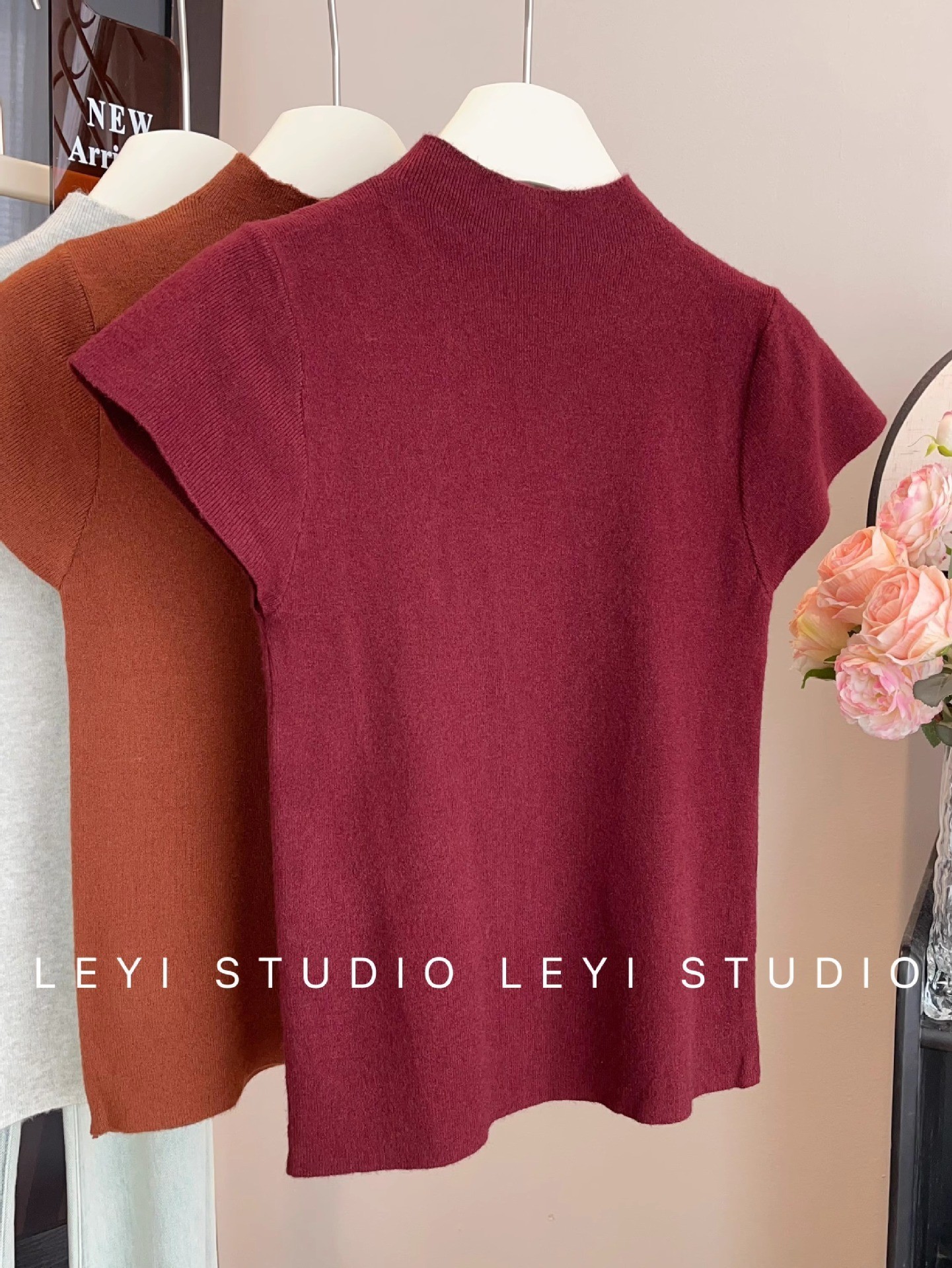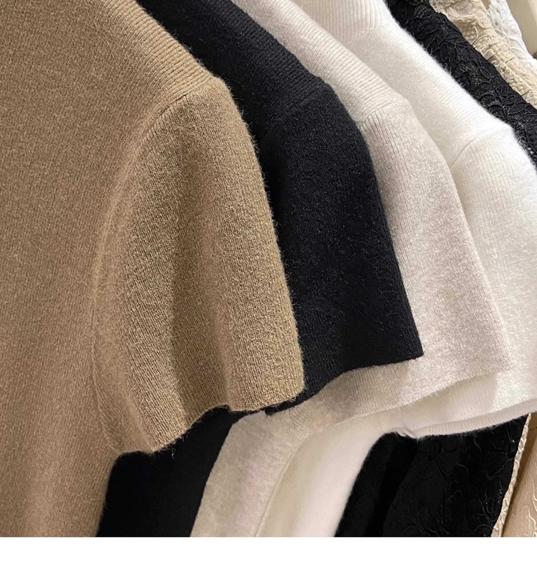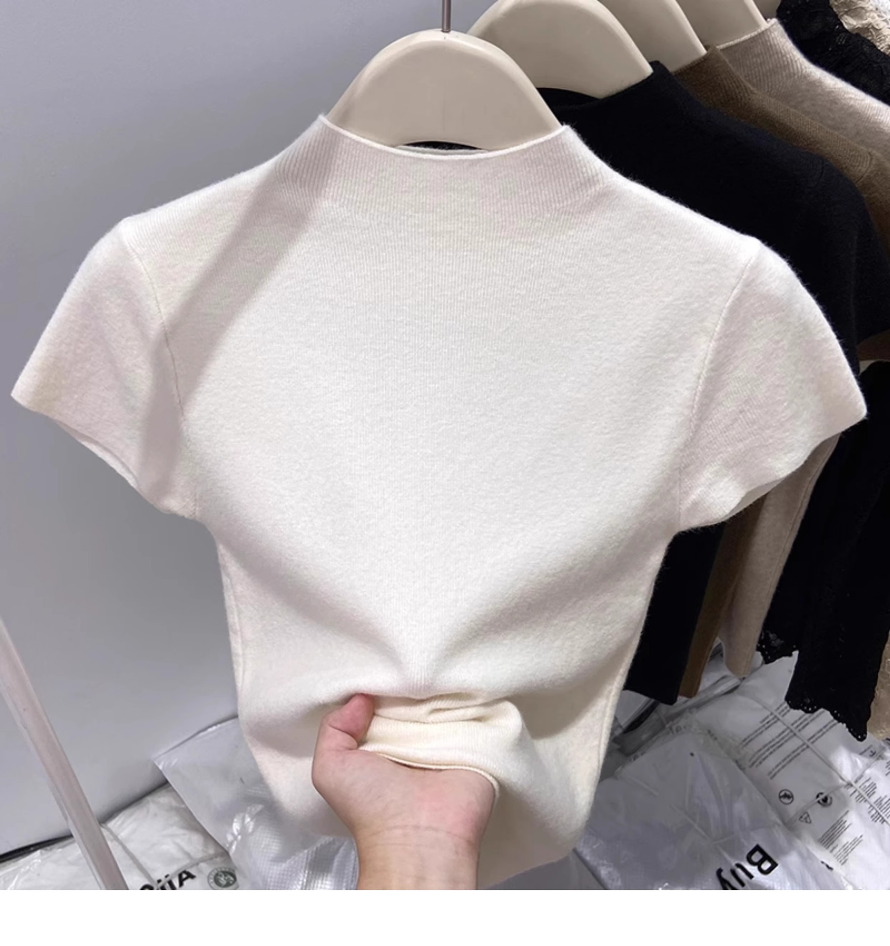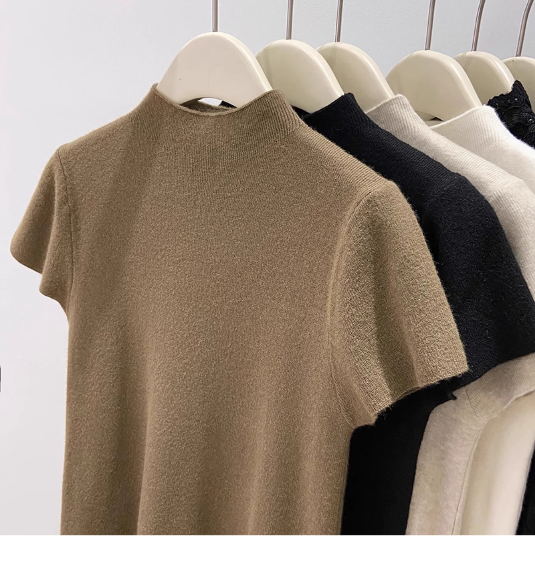 소프트 왁스 모크 칼라 니트 셔츠 반팔 티셔츠 여성용 봄과 가을 새로운 우아한 스키니 내부 칼라베이스 탑스토어 가기