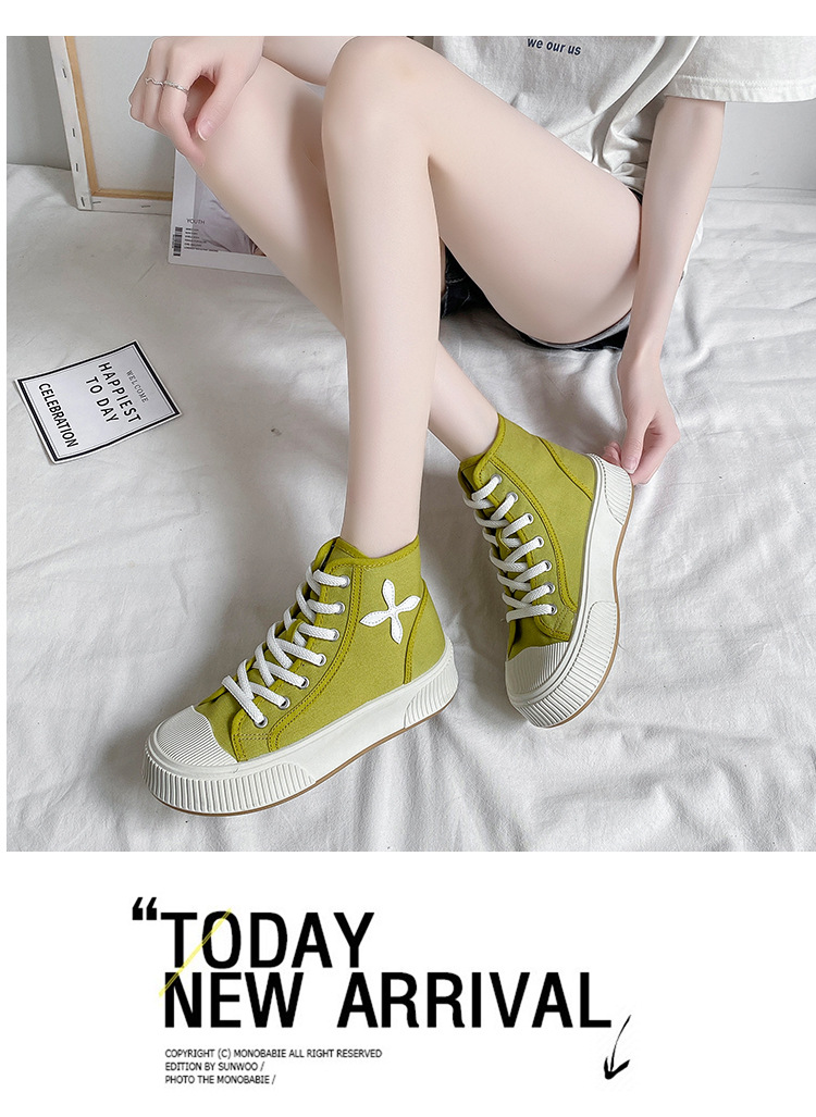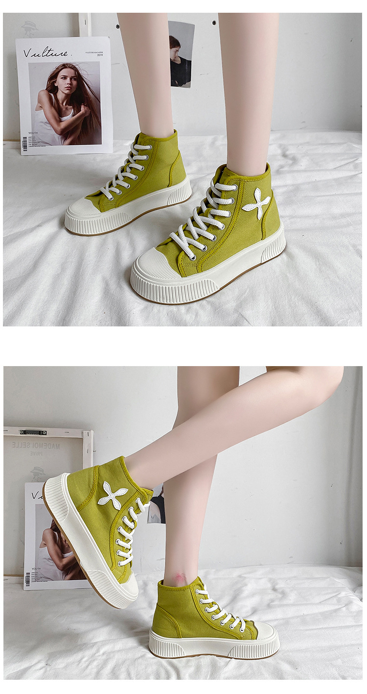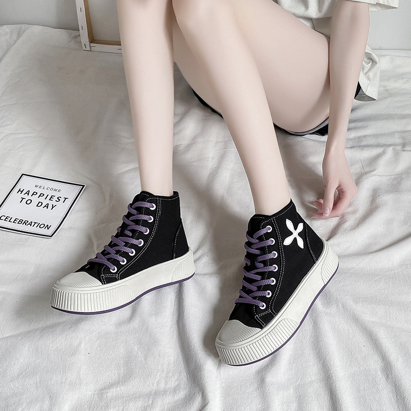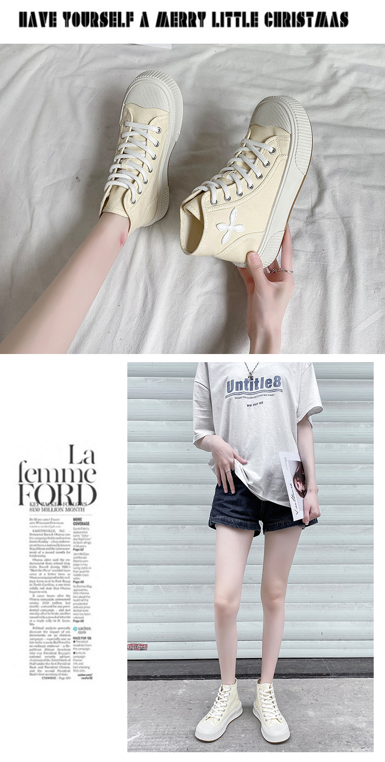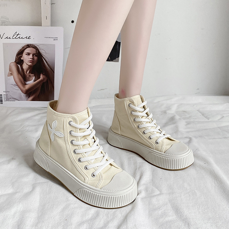 Baikuang 2022 가을 새로운 얇은 통기성 하이 탑 캔버스 신발 여성 두꺼운 싱글 트렌디 올 매치 학생 여름 화이트 신발스토어 가기