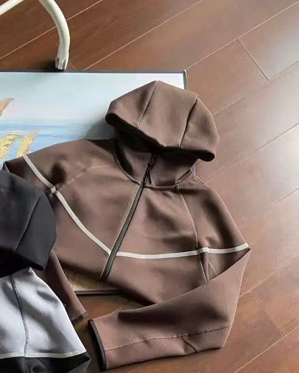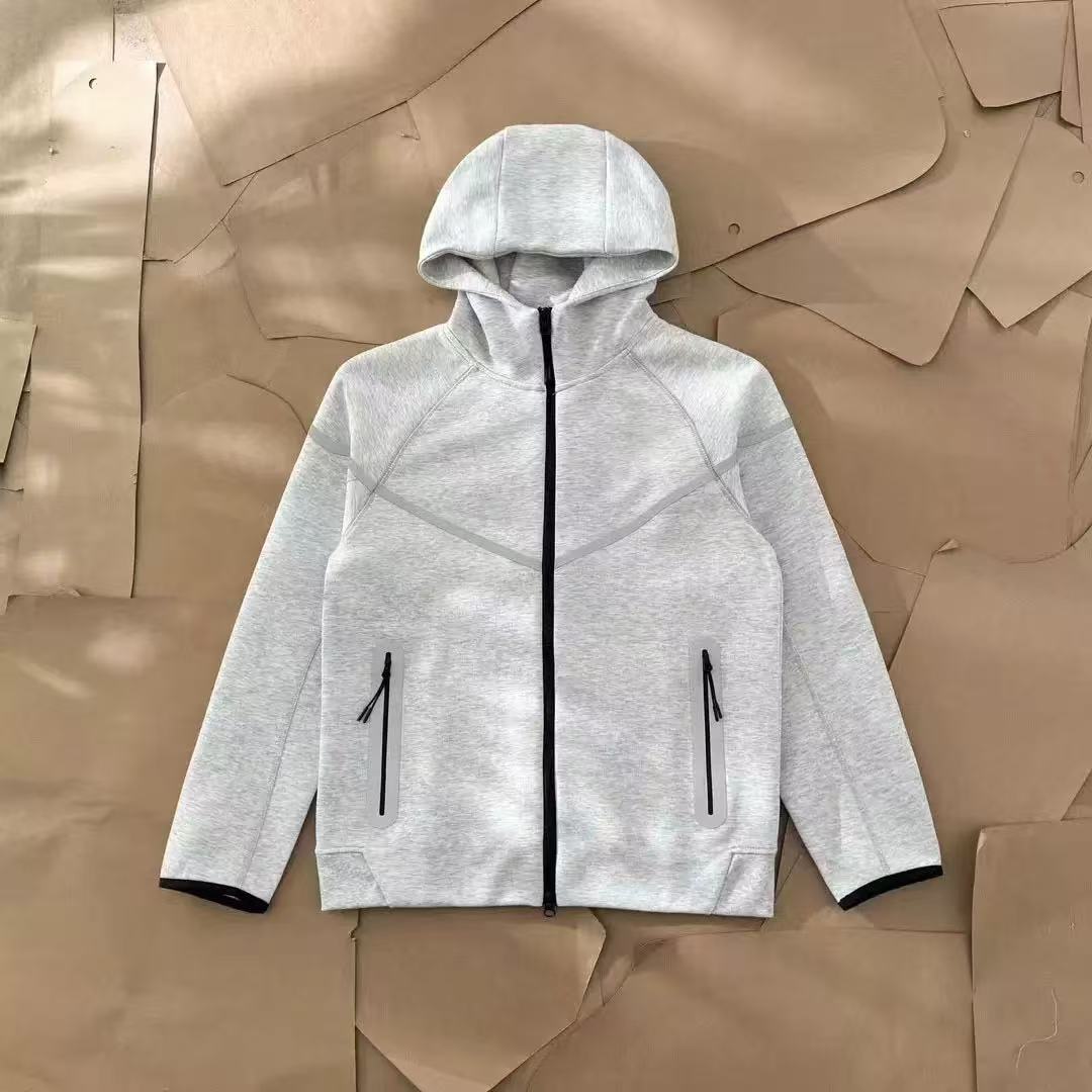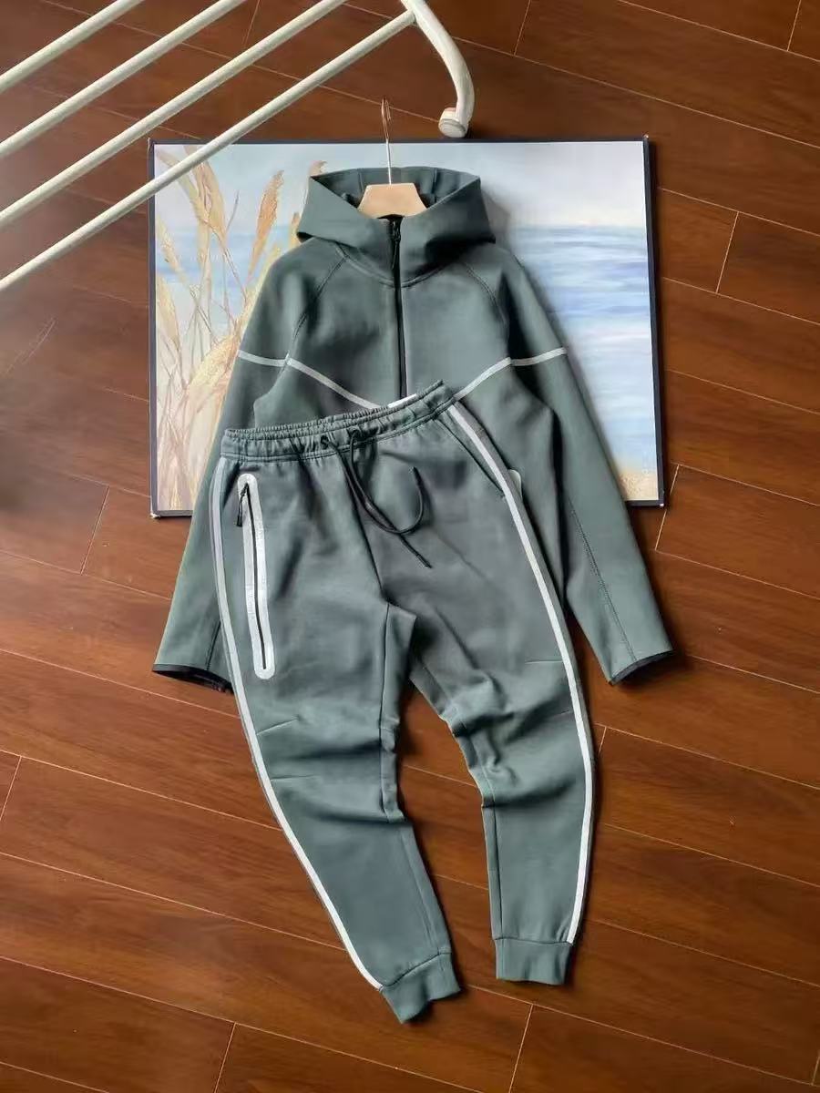 25 년 봄과 가을 새로운 지퍼 셔츠 스포츠 캐주얼 후드 재킷 바지 에어 레이어면 반사 접착제 세트 남성