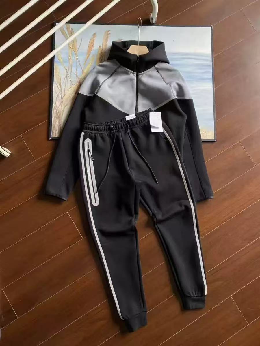 25 년 봄과 가을 새로운 지퍼 셔츠 스포츠 캐주얼 후드 재킷 바지 에어 레이어면 반사 접착제 세트 남성스토어 가기