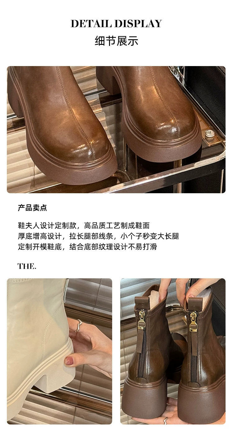 레이디 신발 같은 스타일 2024 영국 스타일 높은 마틴 부츠 우아한 레트로 두꺼운 유일한 편안한 짧은 부츠 여성 신발