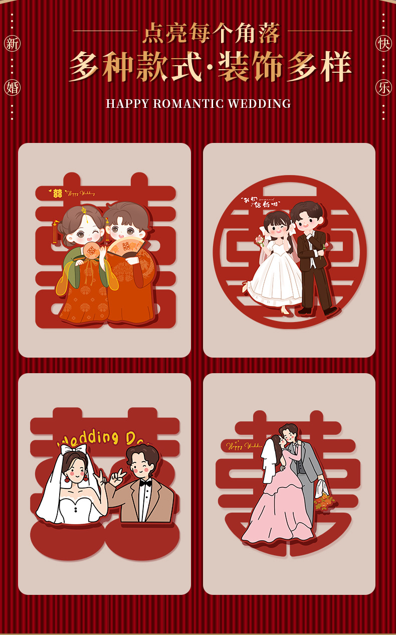 결혼식 결혼식 캐릭터 스티커 웨딩 룸 레이아웃 룸 문 스티커 창 장식 결혼식 축하스토어 가기