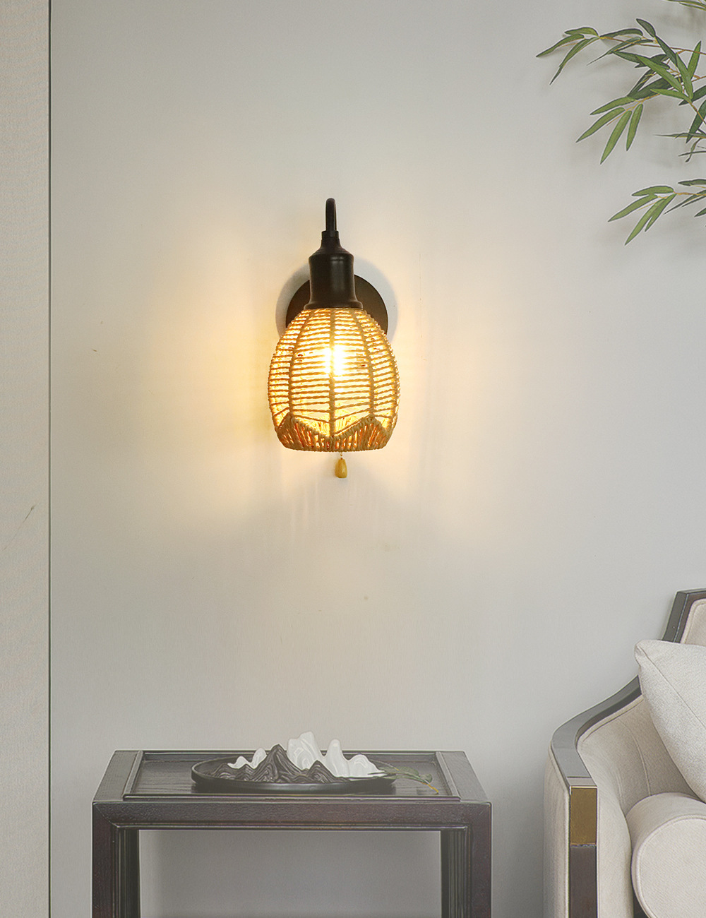 Tengyi 목가적 인 스타일 지퍼 침실 침실 통로 배경 벽 램프 현대 짠 케이지 램프 철사 벽 램프