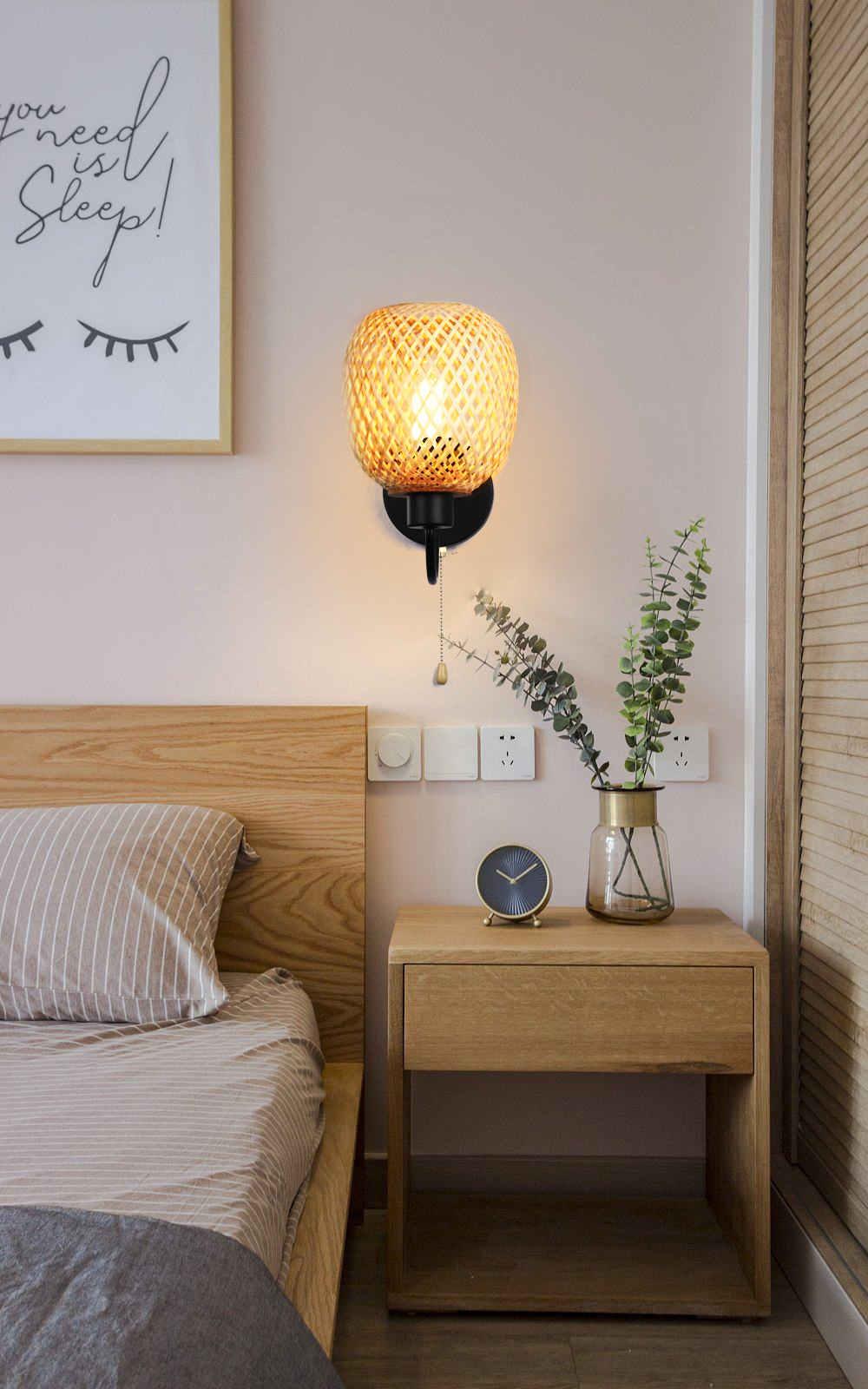 대나무 목가적 인 스타일 지퍼 침실 머리맡 통로 배경 벽 램프 현대 새로운 중국 스타일 케이지 램프 눈 보호스토어 가기