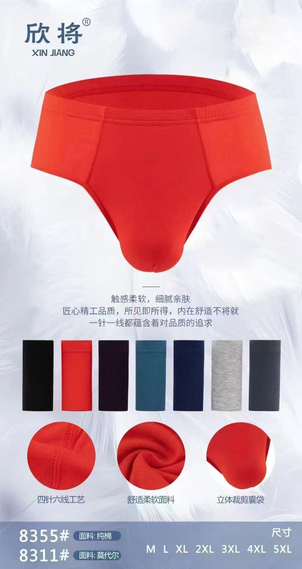 8355 남성용 311 면 속옷, 모달 삼각팬티, 편안하고 통기성이 좋으며 땀 흡수성이 뛰어난 루즈핏, 중간 허리 사이즈