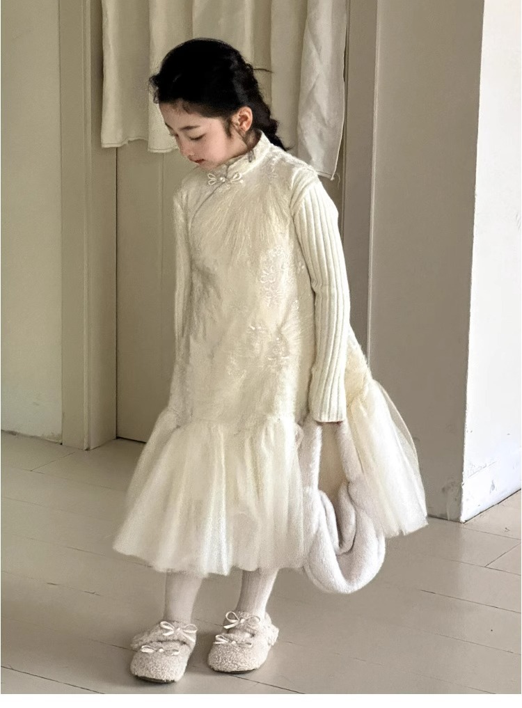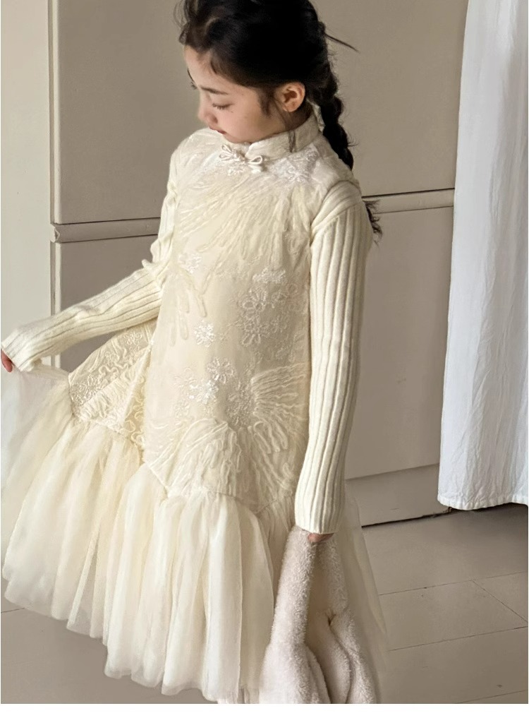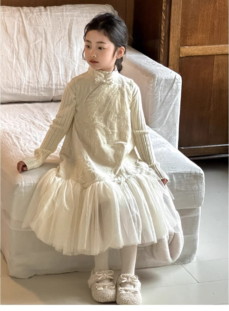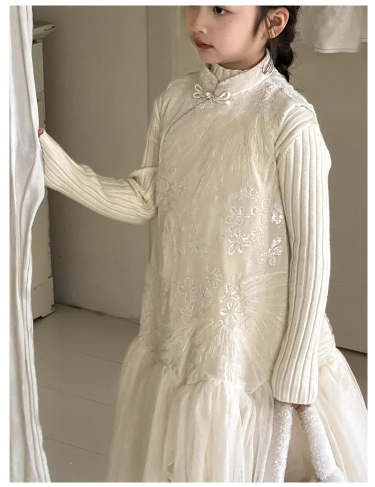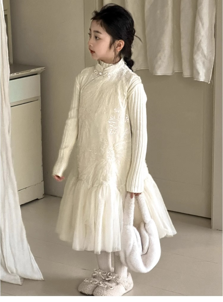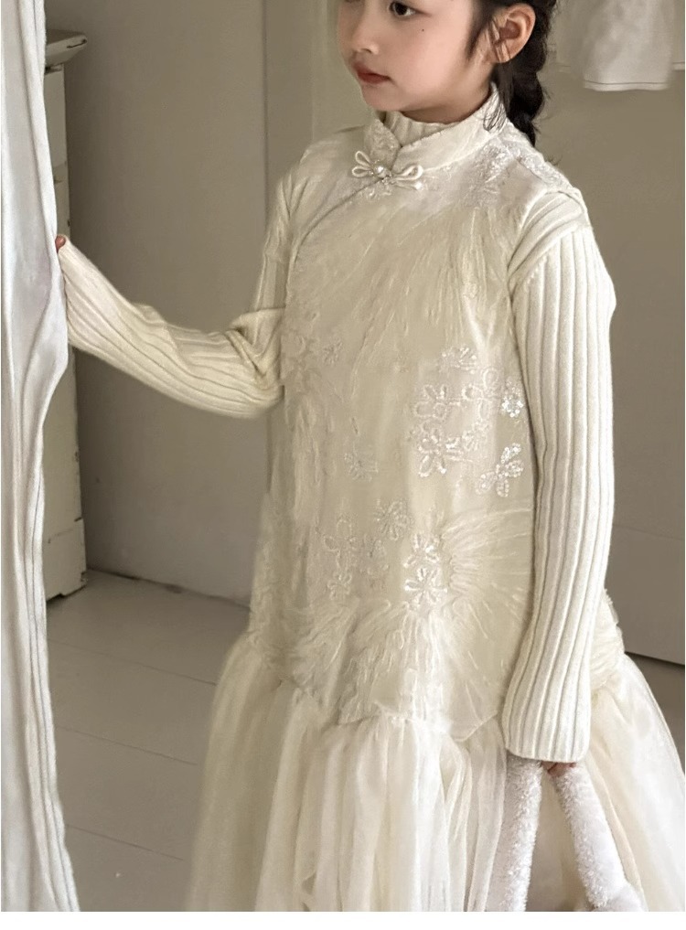 가을 · 겨울 원피스 소녀 2025 새 고급 중국 청삼 버클 스커트 어린이 기모 조끼 공주 원피스스토어 가기