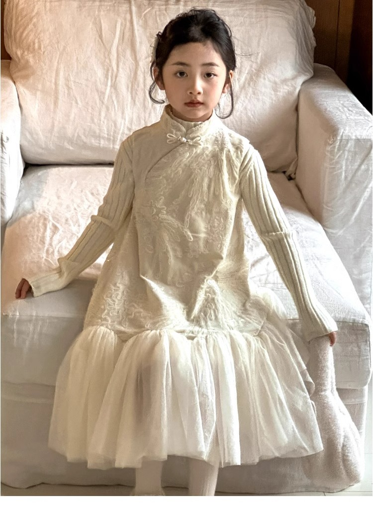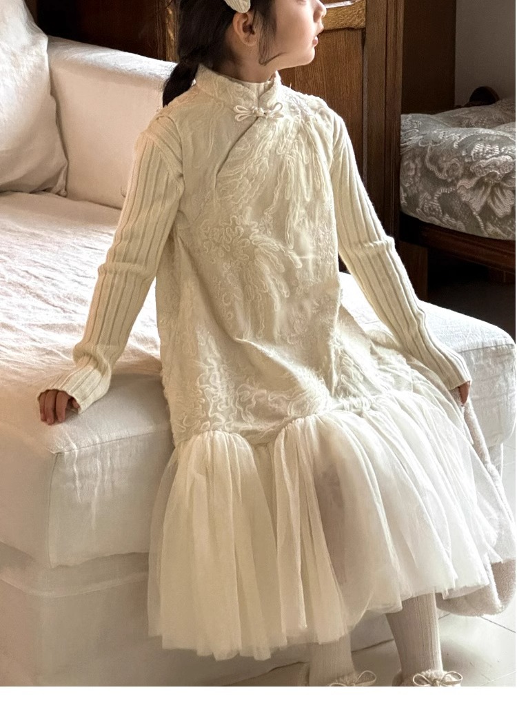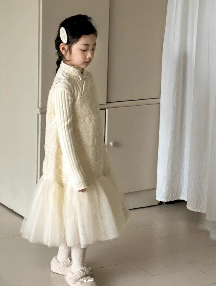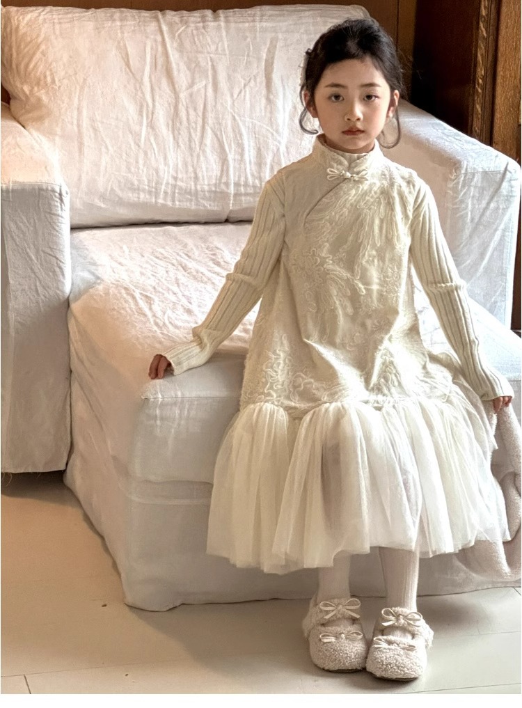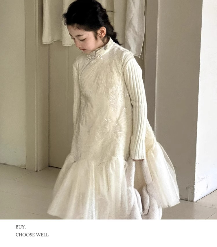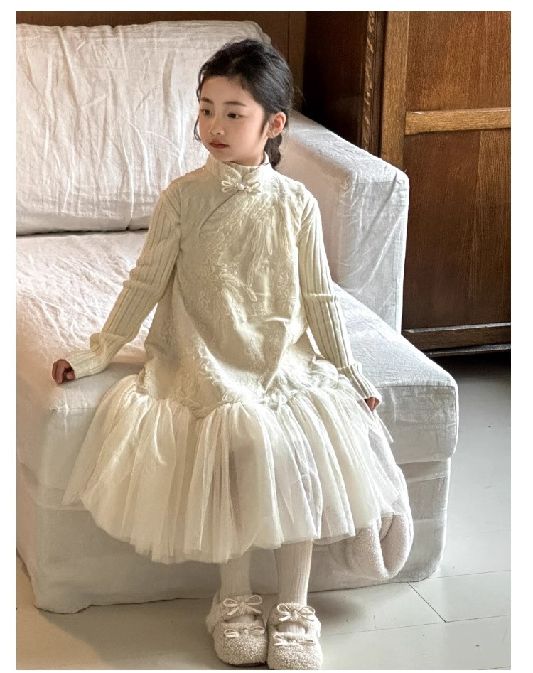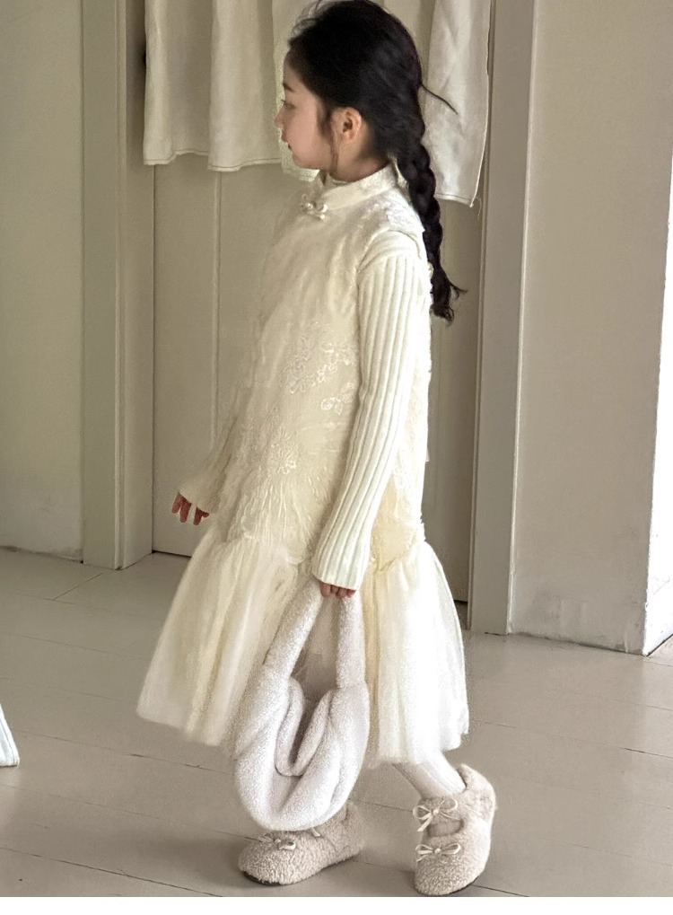 가을 · 겨울 원피스 소녀 2025 새 고급 중국 청삼 버클 스커트 어린이 기모 조끼 공주 원피스스토어 가기