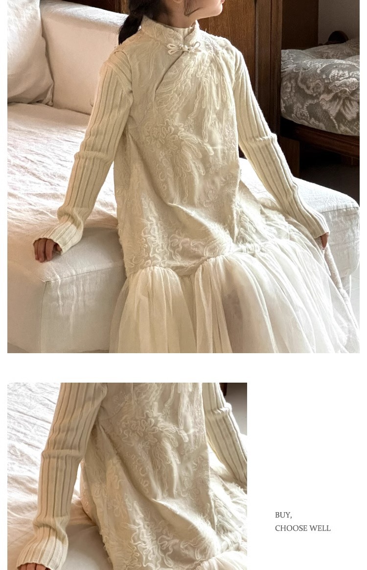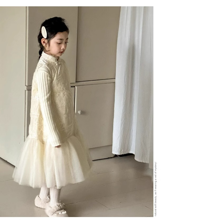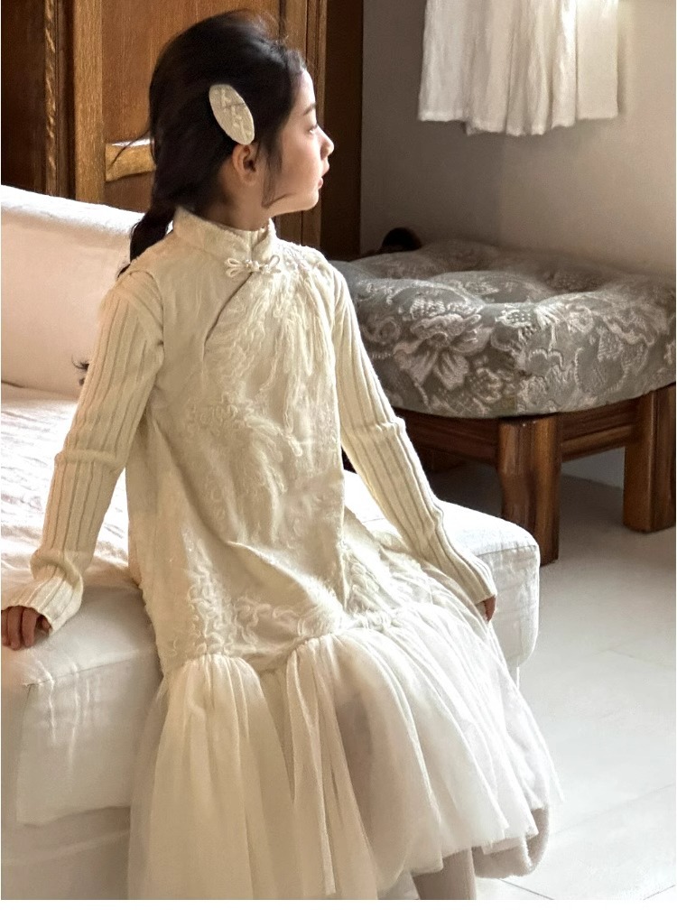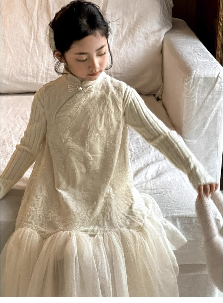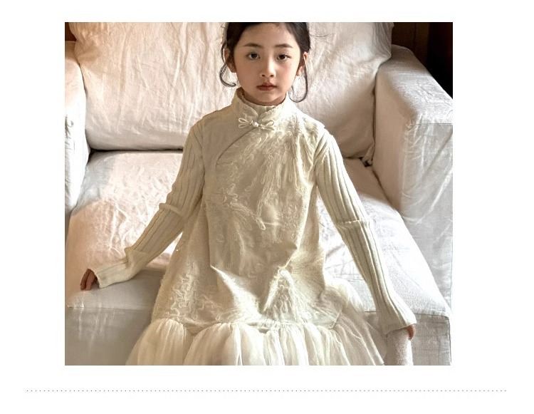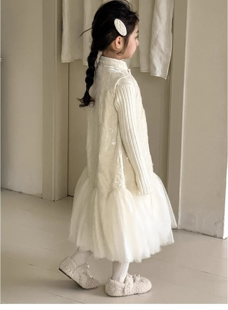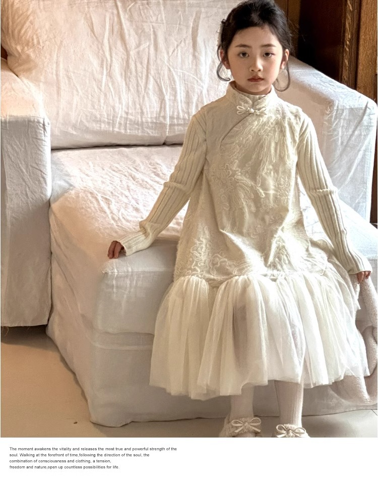 가을 · 겨울 원피스 소녀 2025 새 고급 중국 청삼 버클 스커트 어린이 기모 조끼 공주 원피스스토어 가기