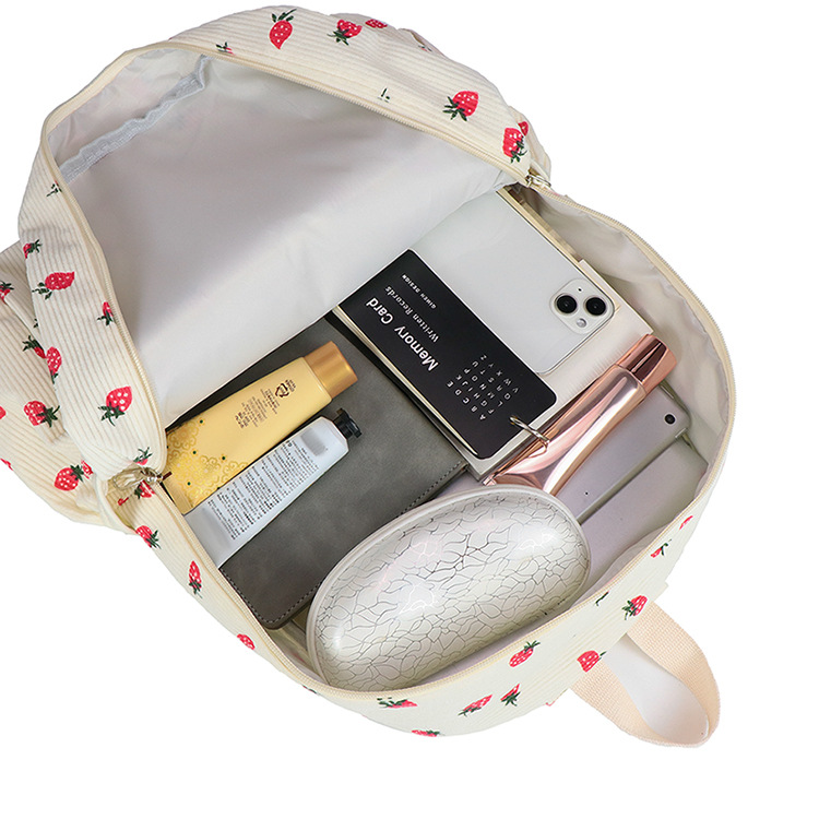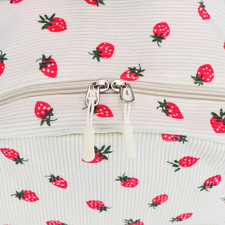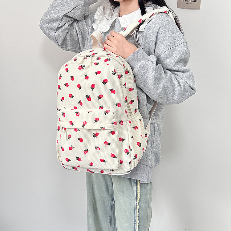 새로운 국경 학교 가방 중학교 여학생 Corduroy 귀여운 딸기 배낭 캐주얼 여행 여성 배낭스토어 가기