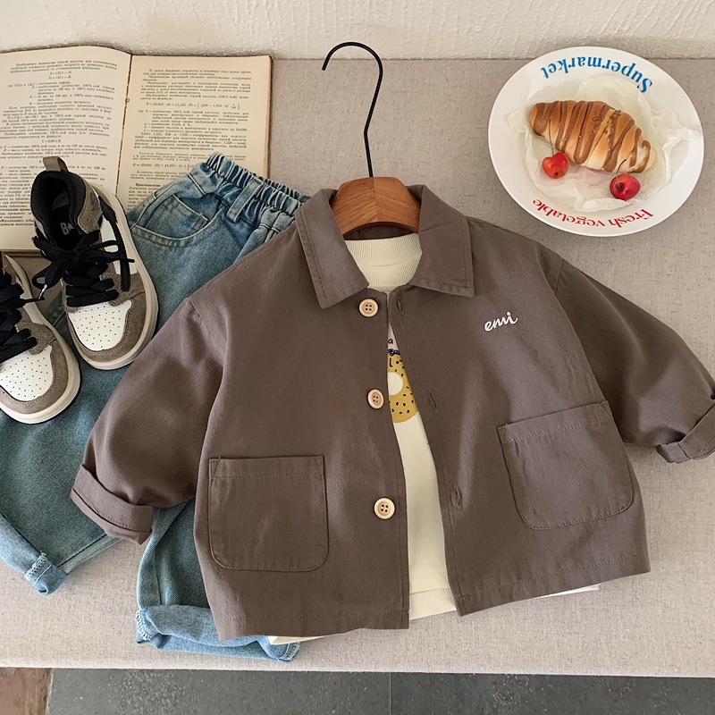 어린이 새 봄 2025 소년 솔리드 컬러 올드 카디건 어린이 한국 스타일 복고풍 재킷 디자인 센스