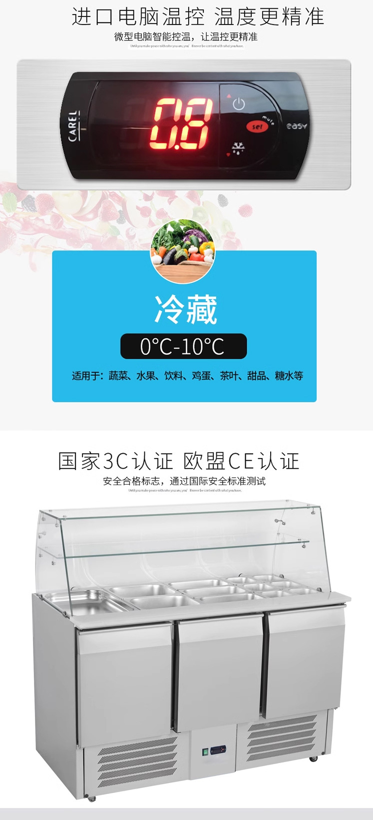 상업용 지하철 에어 실린더 살라 캐비닛 공랭식 슬롯 피자 콘솔 소스 플랫폼 냉장고 과일 낚시 디스플레이
