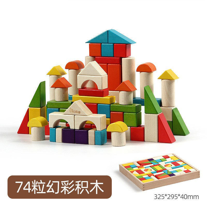 • 74개의 다채로운 빌딩 블록 + 나무 상자