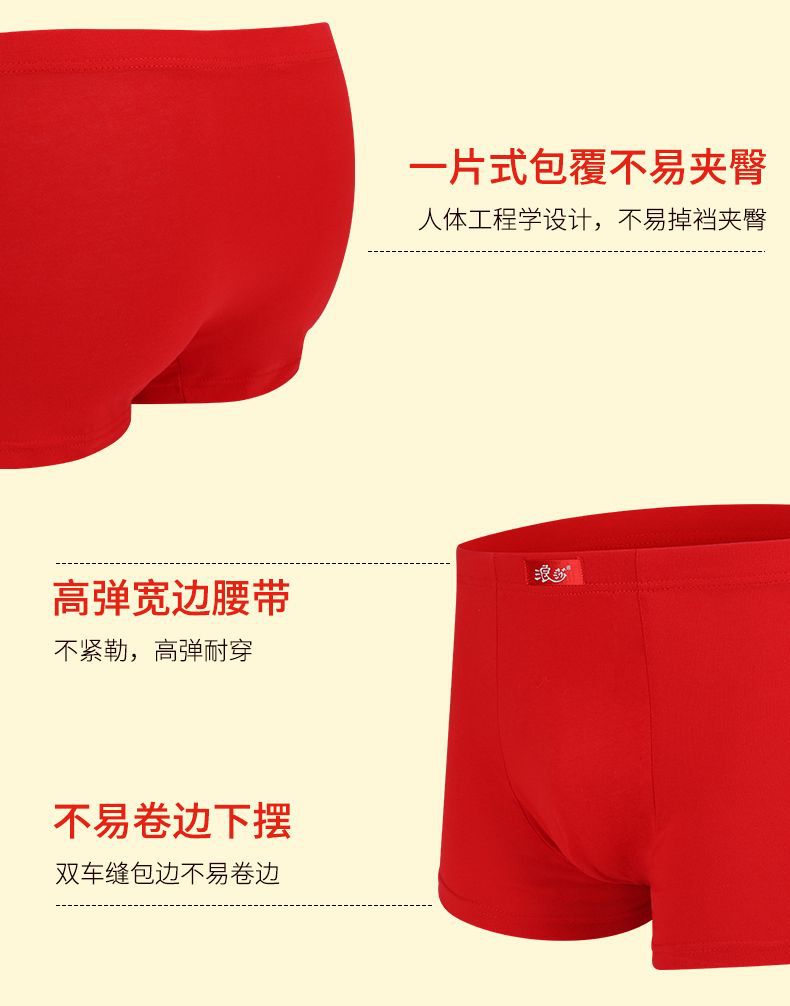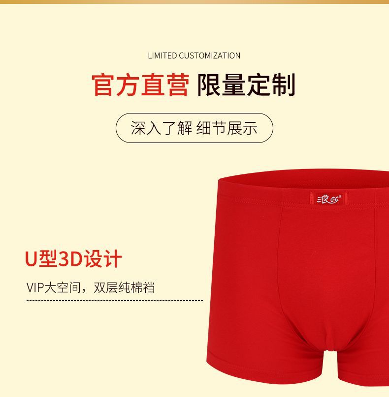 Longsha Benmingnian Red 속옷 남성용 순수 코튼 복서 반바지 레드 포 코너 바지 커플 웨딩 레드 속옷 여성스토어 가기