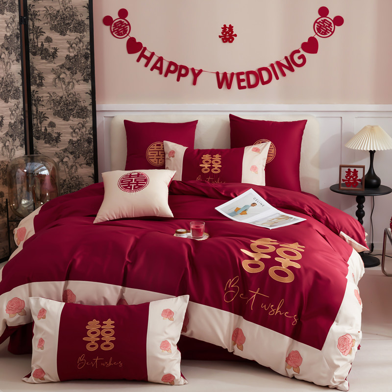 고급 소녀의 심장 100 웨딩 침대 시트 퀼트 커버 웨딩 침구 4 피스 세트 동반 레드 퀼트 6스토어 가기