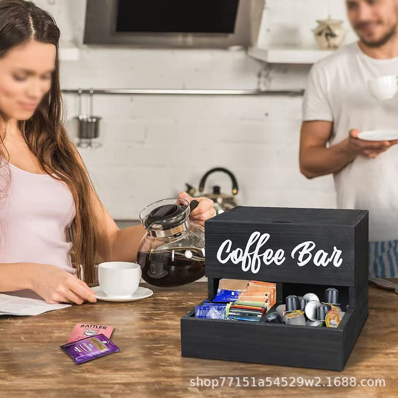 나무 데스크탑 티백 저장 상자 플립 온 구획 커피 캡슐 저장 상자 단단한 나무 다층 아이템 오거커 상자스토어 가기