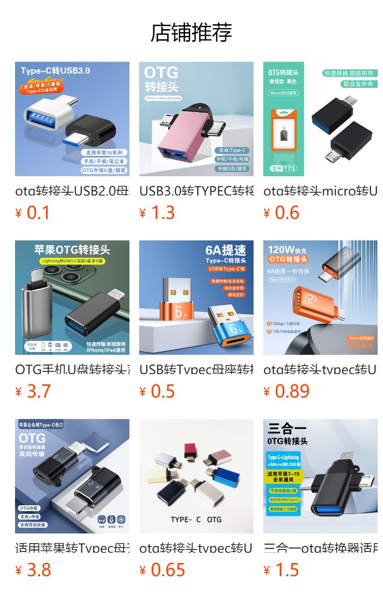 야간 조명 otg 변환기 typec-USB3.0 휴대 전화 태블릿 노트북 마우스 키보드 어댑터스토어 가기