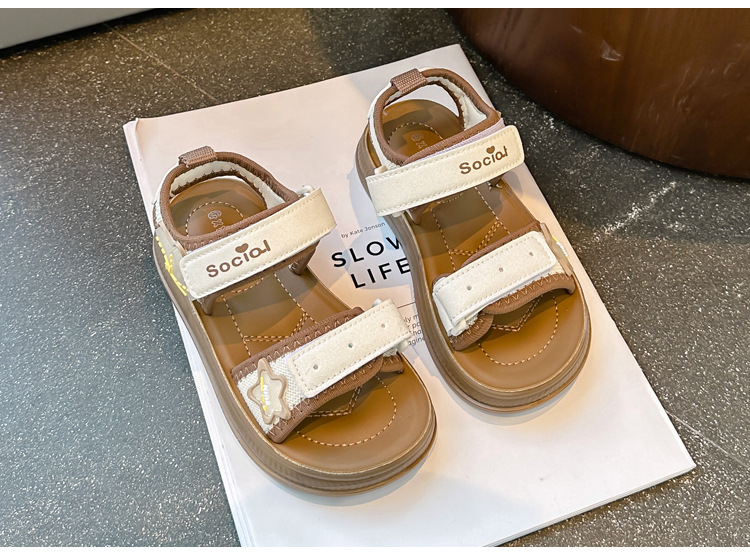 소녀 사랑 편지 샌들 2025 봄과 여름 새로운 어린이 중공 비치 슈즈 패션 오픈 발가락 신발 타이드