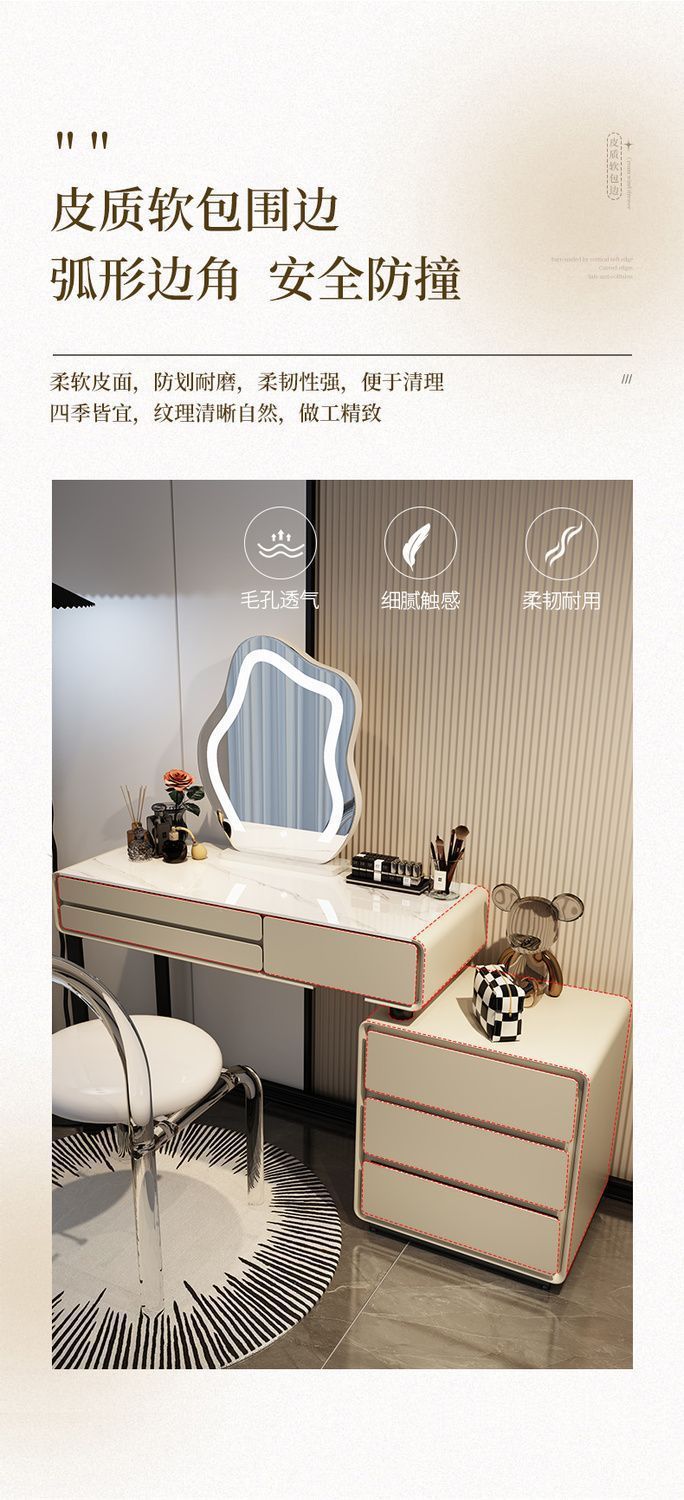 2024 크림 스타일 록 보드 솔리드 우드 드레싱 테이블 침대 테이블 통합 인터넷 연예인 텔레스코픽 드레싱 테이블 침실 현대 단순스토어 가기