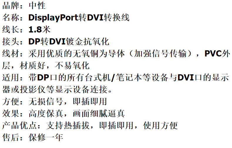 대형 dp to dvi 1.8 m 어댑터 dp to dvi-d 1.8 m HD 어댑터 금 도금 1080P스토어 가기