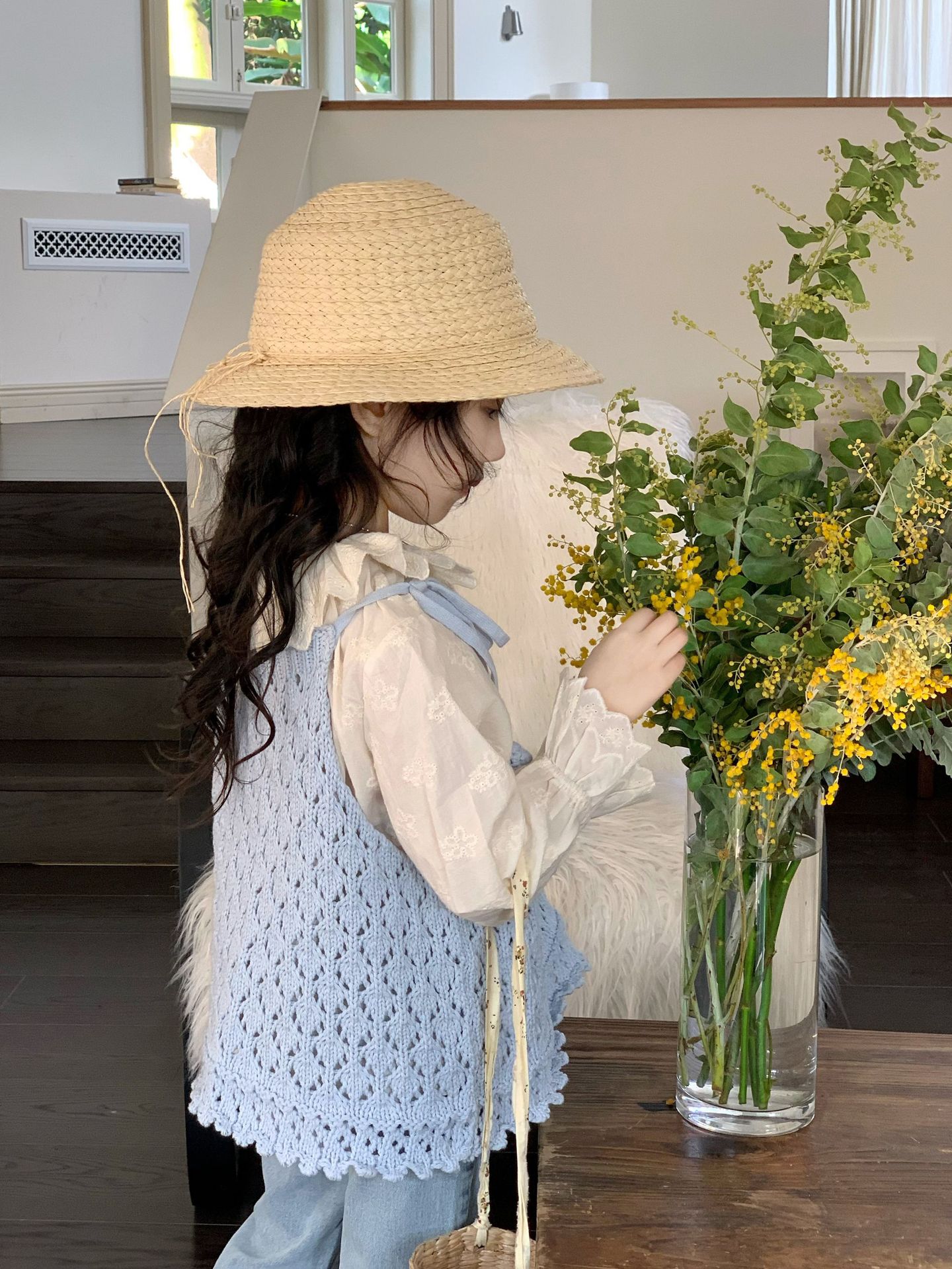 2025 한국 봄 새 소녀 패션 크로 셰 뜨개질 중공 니트 조끼 스트랩 세련된스토어 가기