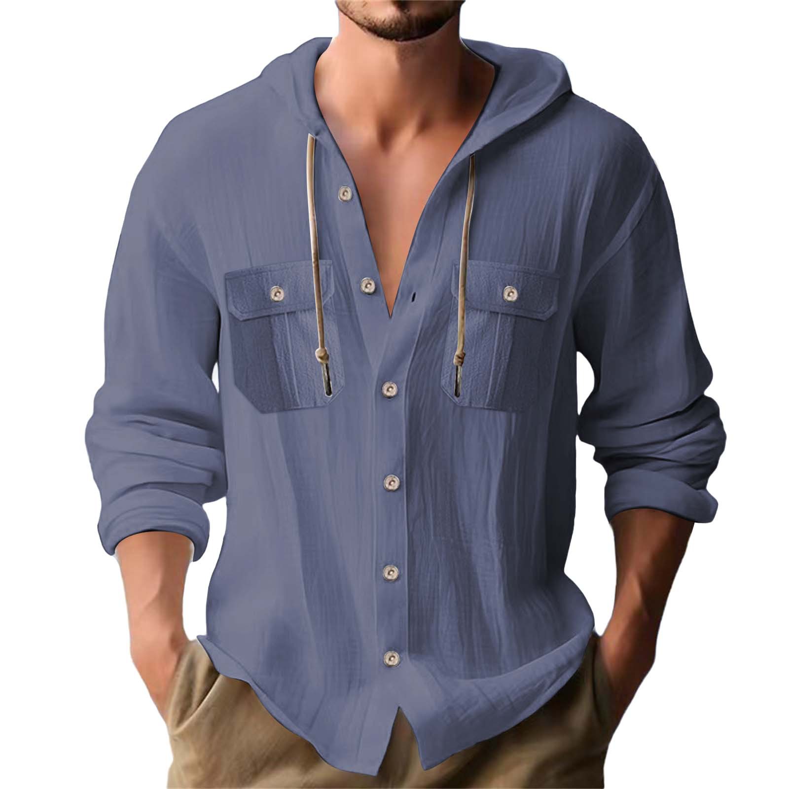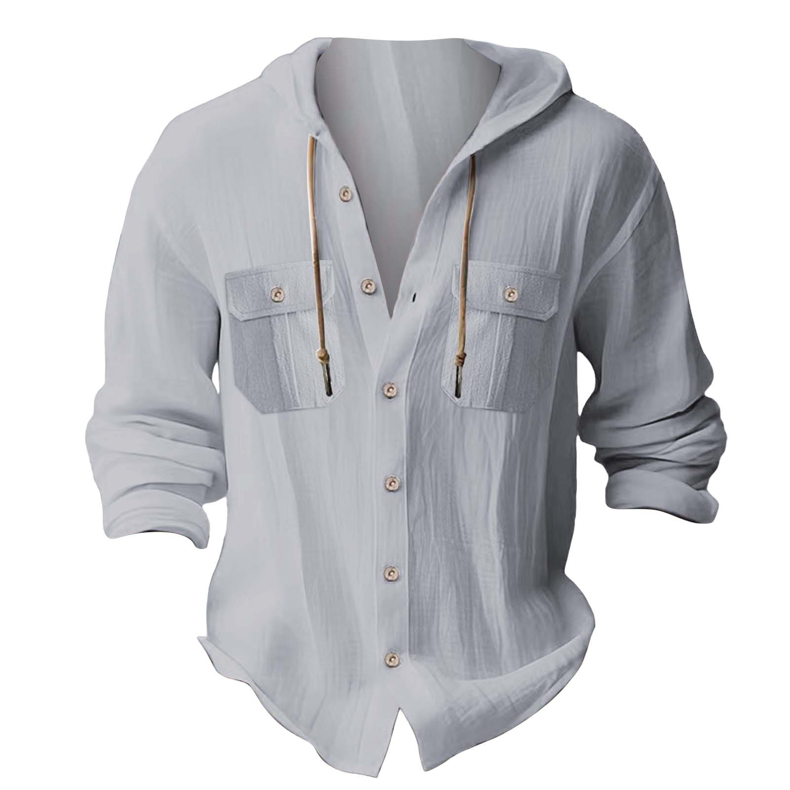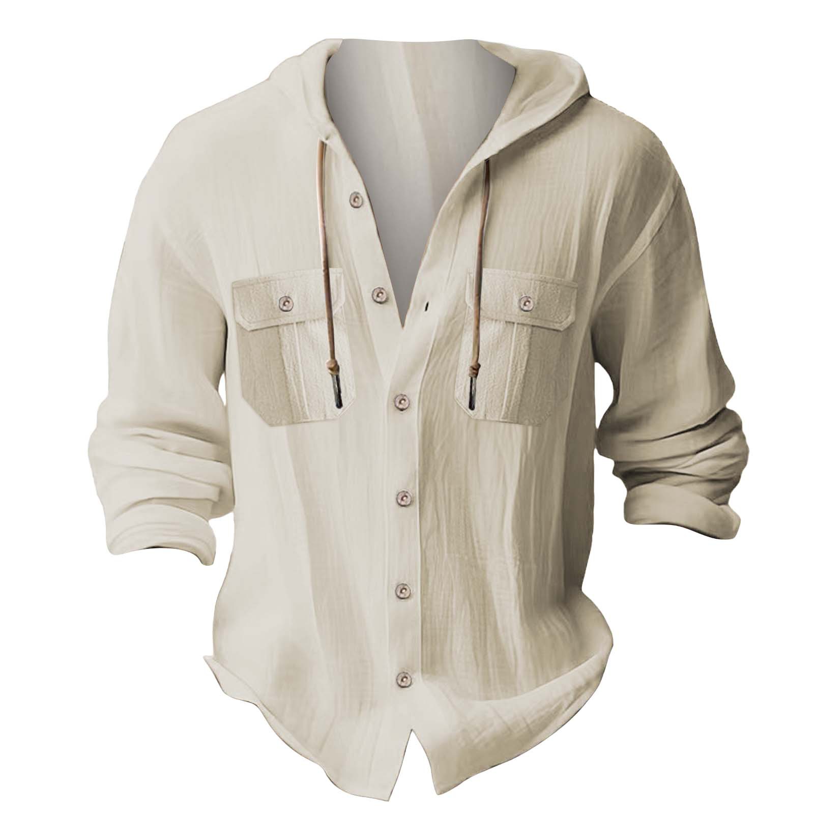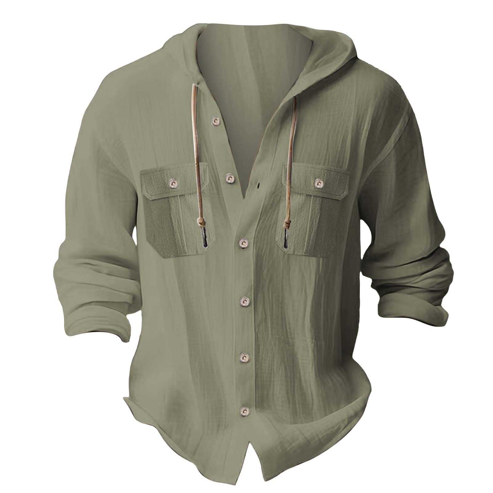 2025 국경을 넘는 유럽과 미국 사계절 새로운 남성면 및 린넨 긴 소매 카디건 느슨한 단색 후드 캐주얼 남성용 셔츠