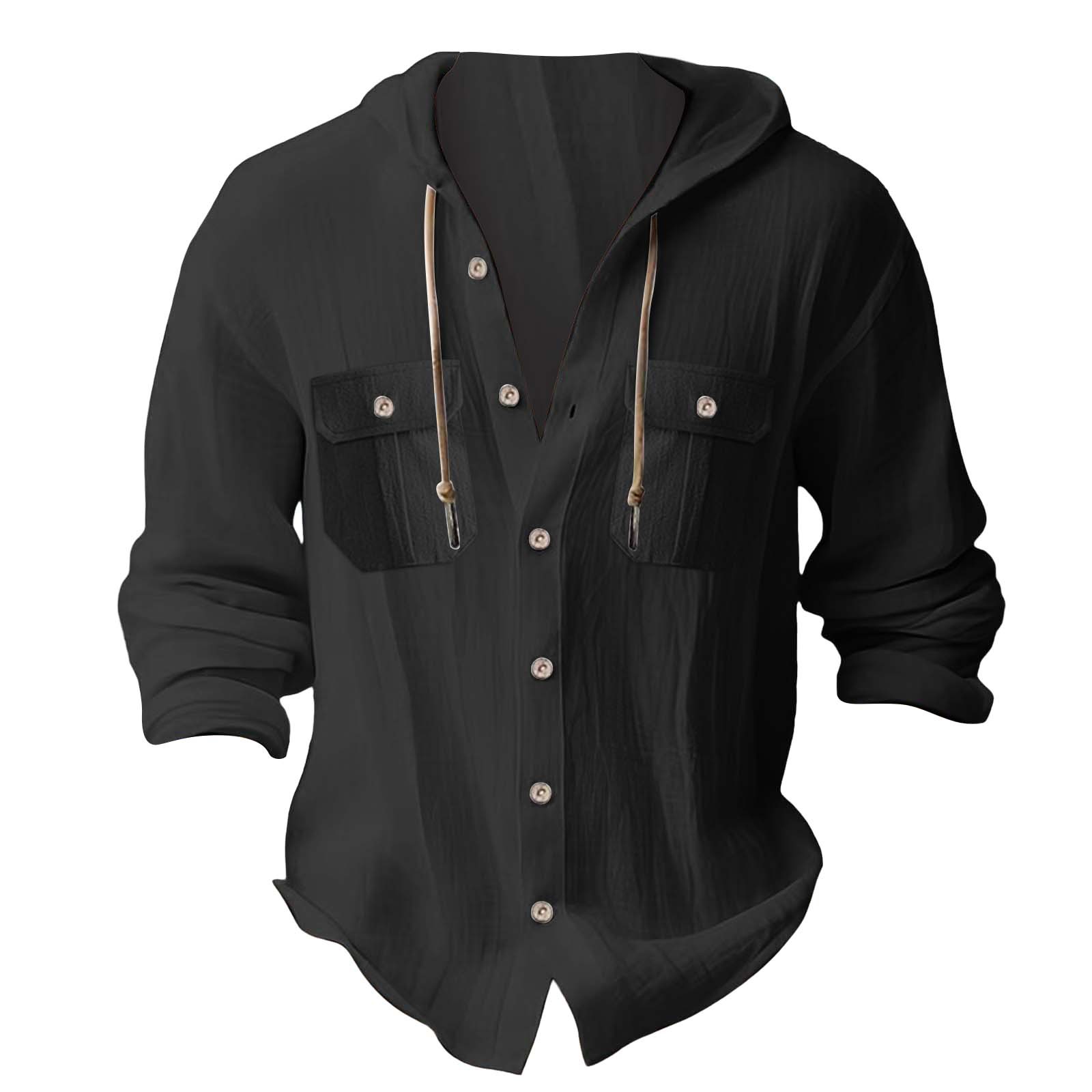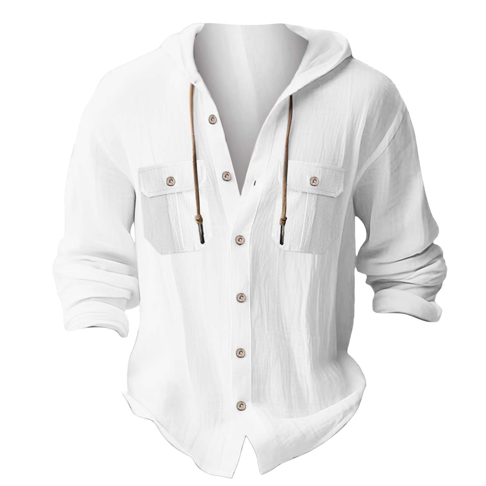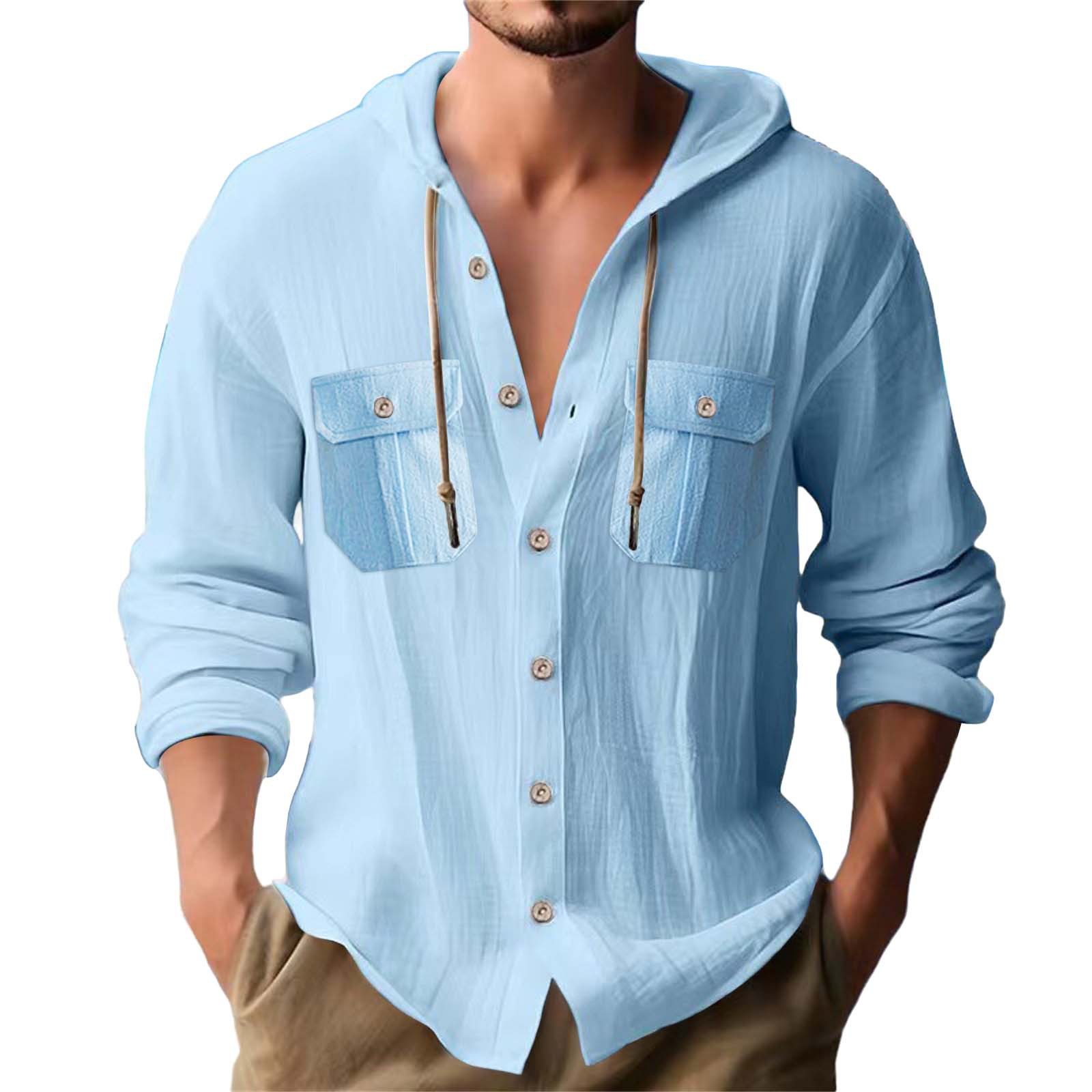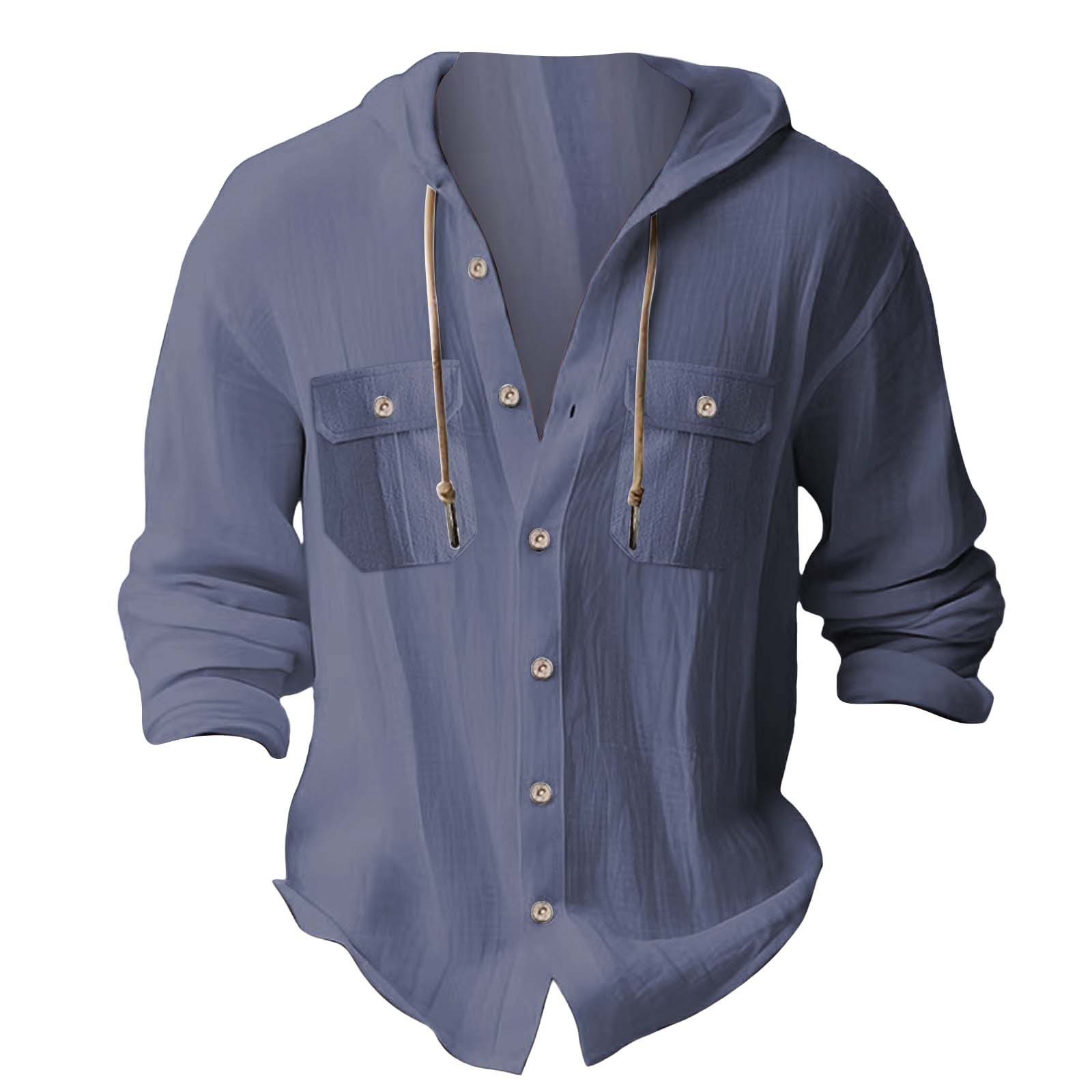 2025 국경을 넘는 유럽과 미국 사계절 새로운 남성면 및 린넨 긴 소매 카디건 느슨한 단색 후드 캐주얼 남성용 셔츠