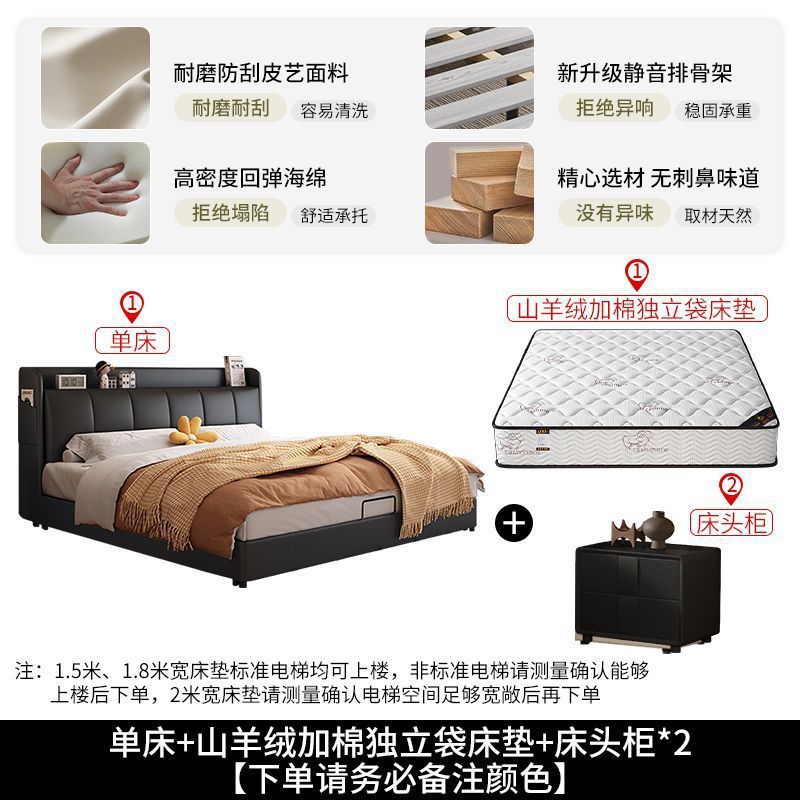 이탈리아 빛 럭셔리 가죽 침대 현대 간단한 침대 1.5 m 가구 작은 아파트 마스터 침실 더블 침대 새로운 스타일 웨딩 침대