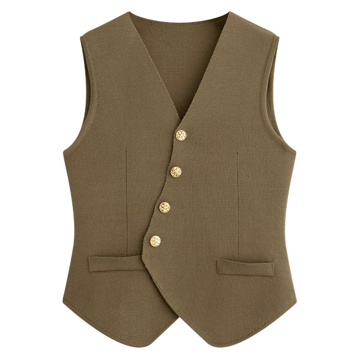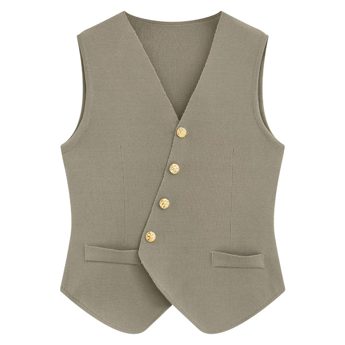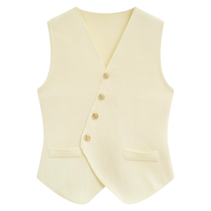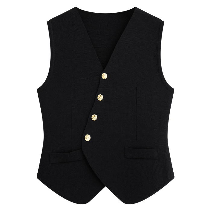 니트웨어 여성용 겨울 새로운 민소매 탑 디자인 센스 싱글 브레스트 프렌치 V 넥 카디건 조끼스토어 가기
