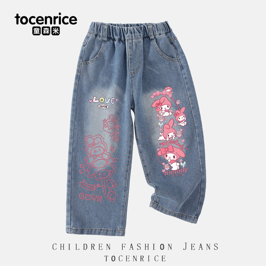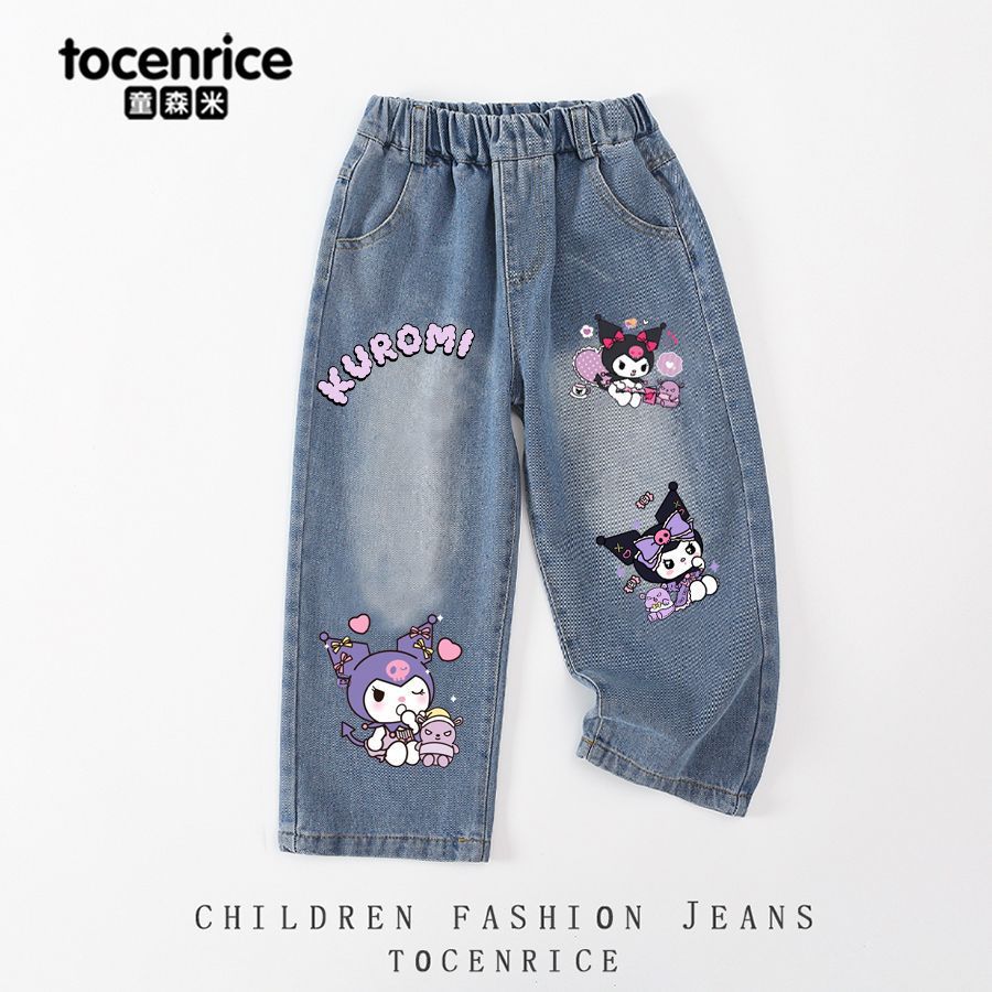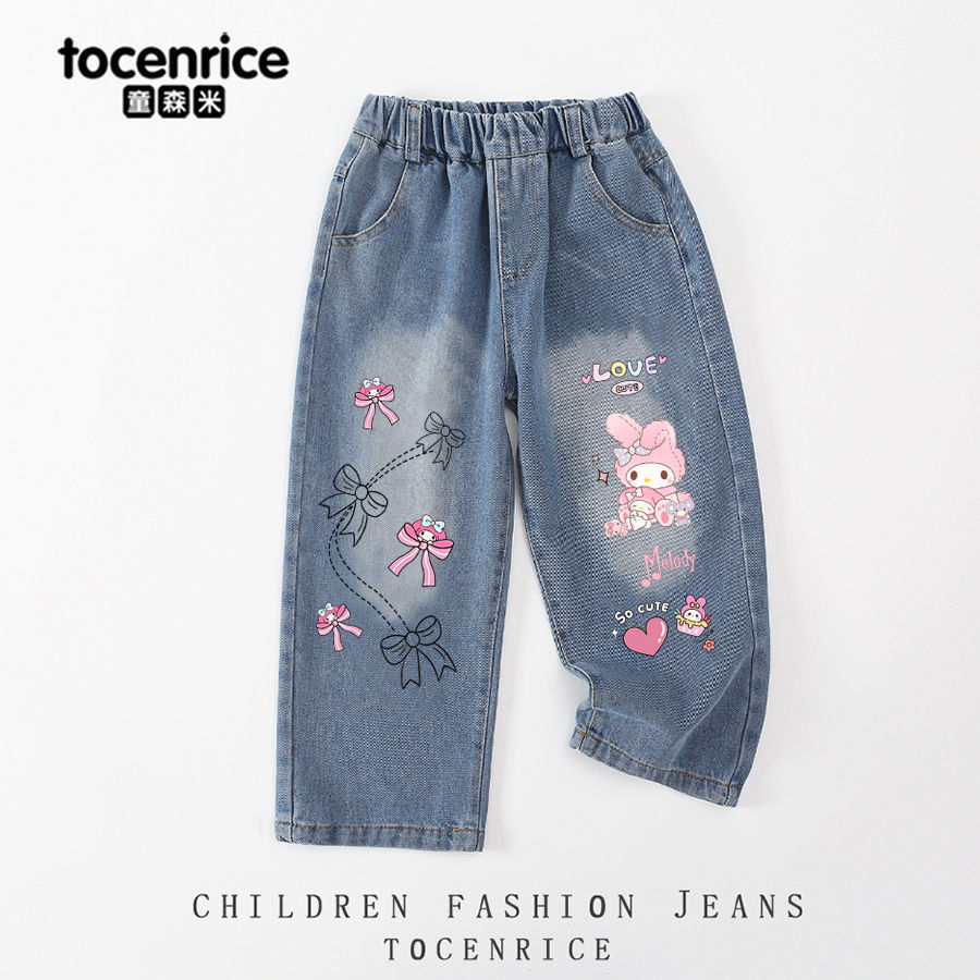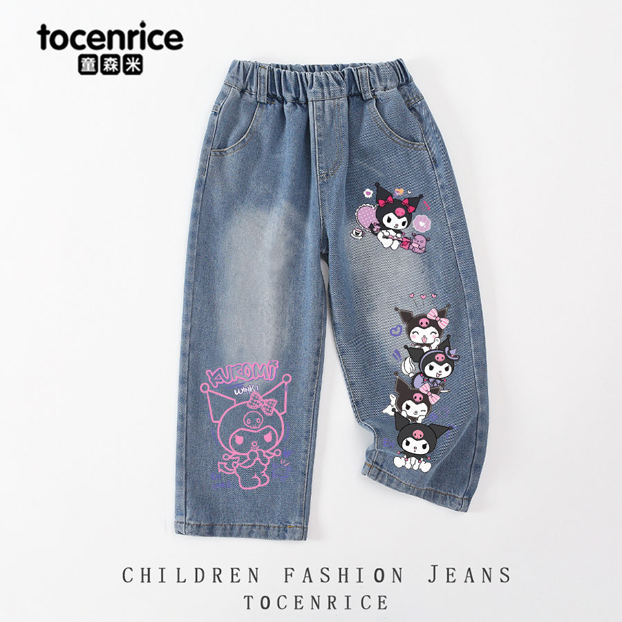 Kulomi 멜로디 어린이 청바지 옥 계피 개 소녀 봄과 가을 스트레이트 바지 소녀 캐주얼 바지 유행