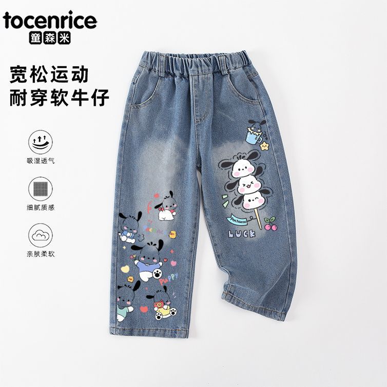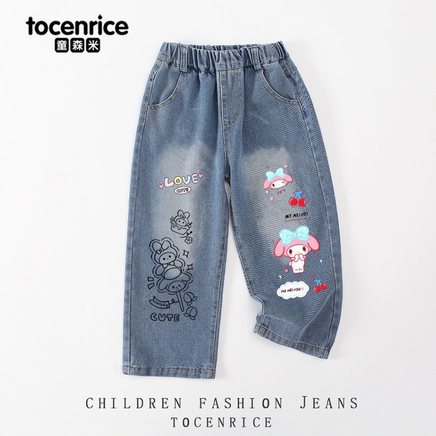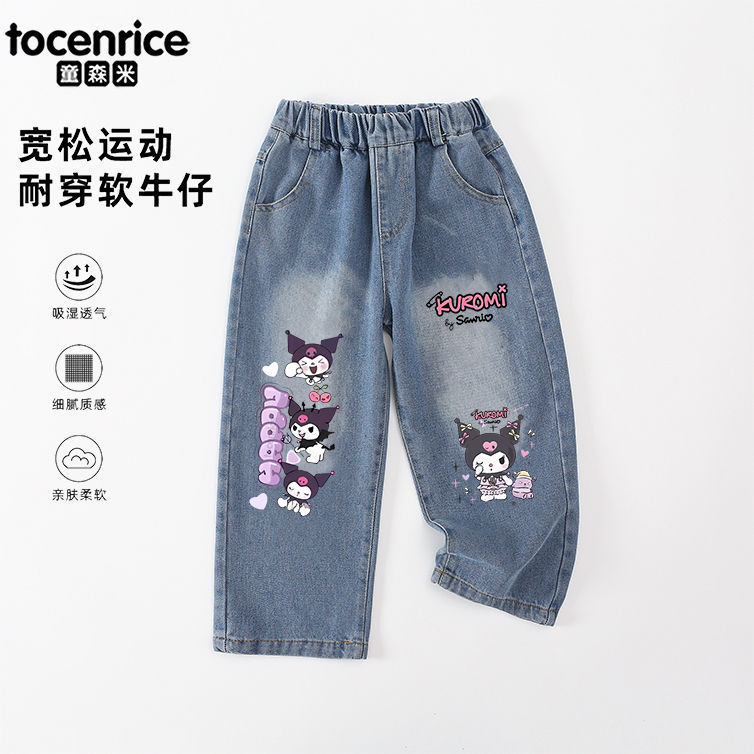 Kulomi 멜로디 어린이 청바지 옥 계피 개 소녀 봄과 가을 스트레이트 바지 소녀 캐주얼 바지 유행스토어 가기