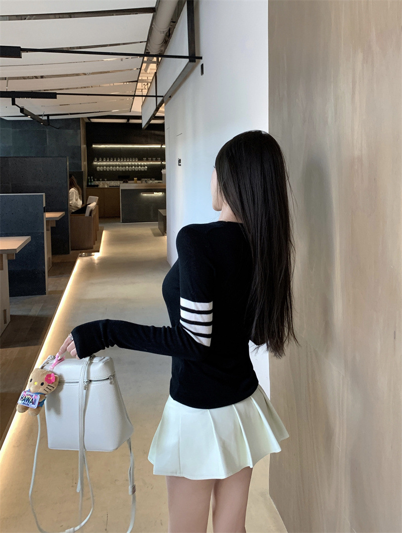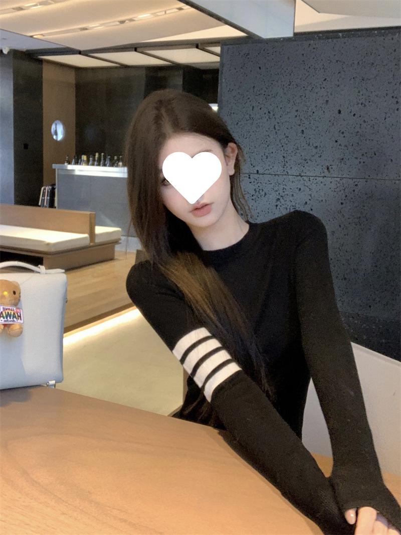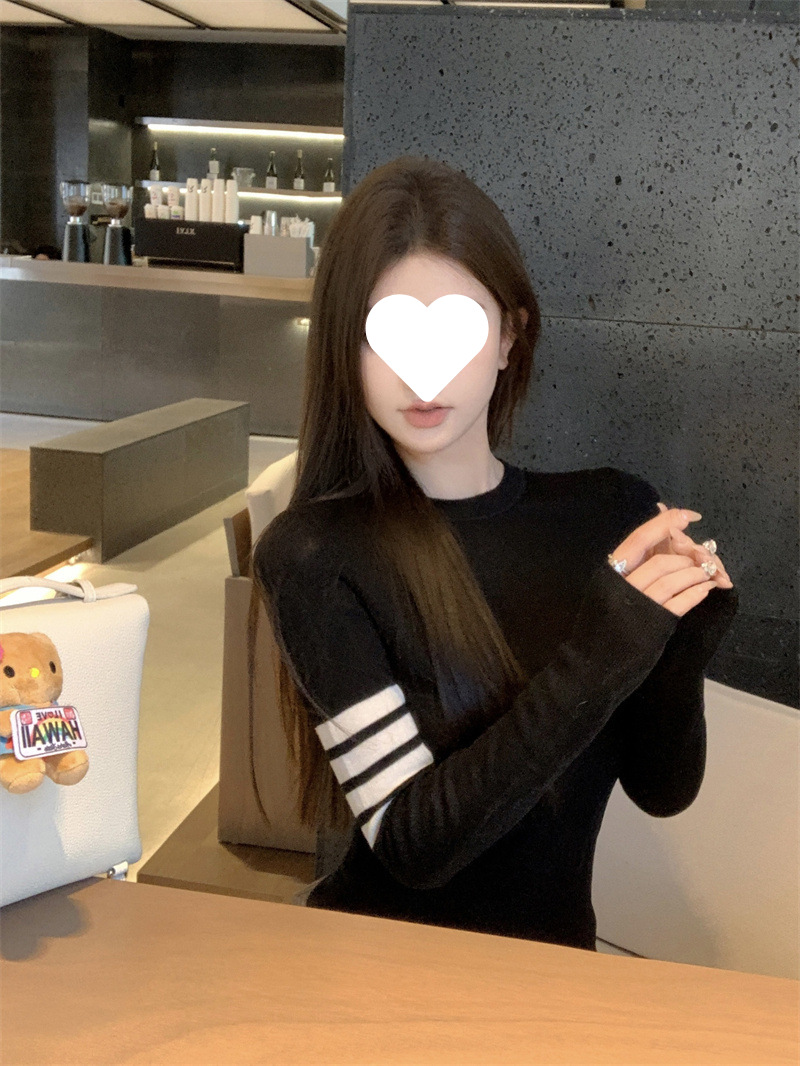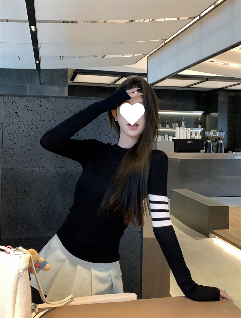 여성용 니트 스웨터 프렌치 컬리지 스타일 복고풍 스트라이프 긴팔 셔츠 가을 겨울 신작 슬림 풀오버 쇼트 탑스토어 가기