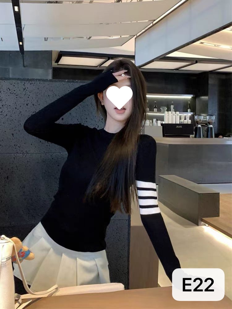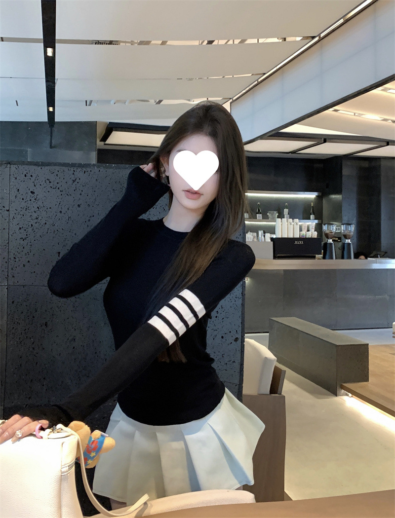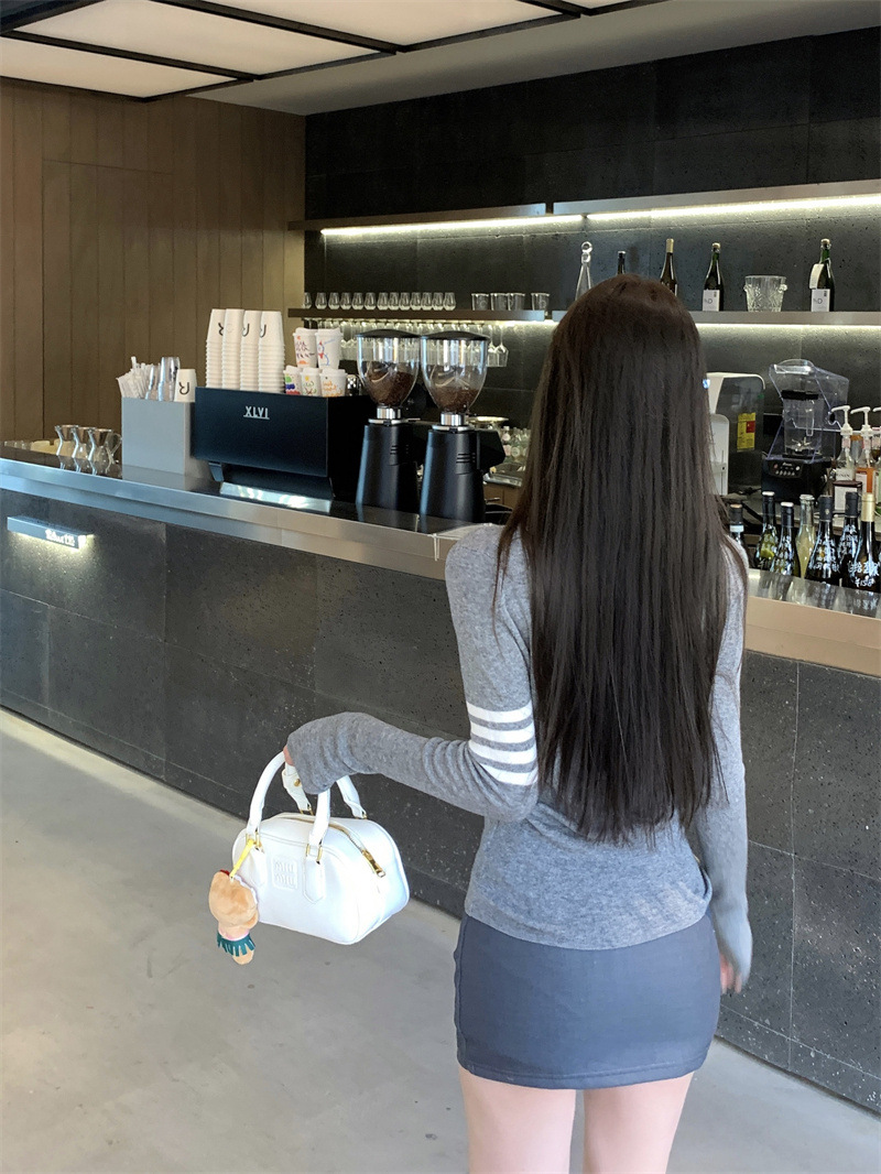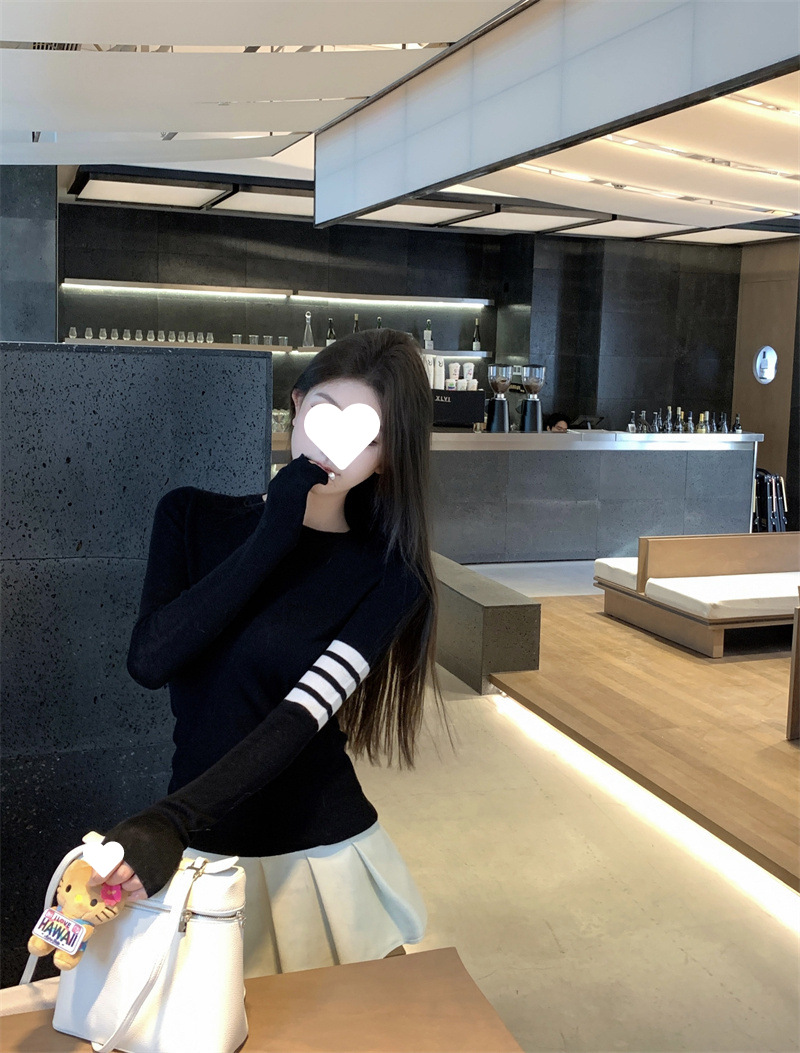 여성용 니트 스웨터 프렌치 컬리지 스타일 복고풍 스트라이프 긴팔 셔츠 가을 겨울 신작 슬림 풀오버 쇼트 탑스토어 가기