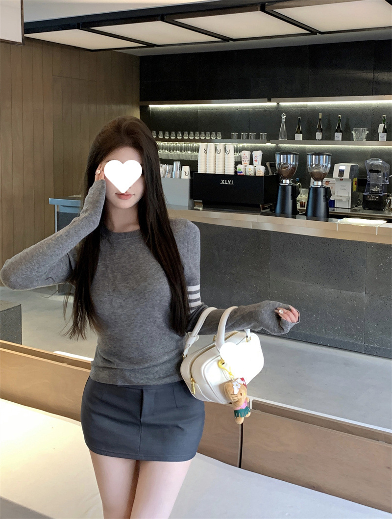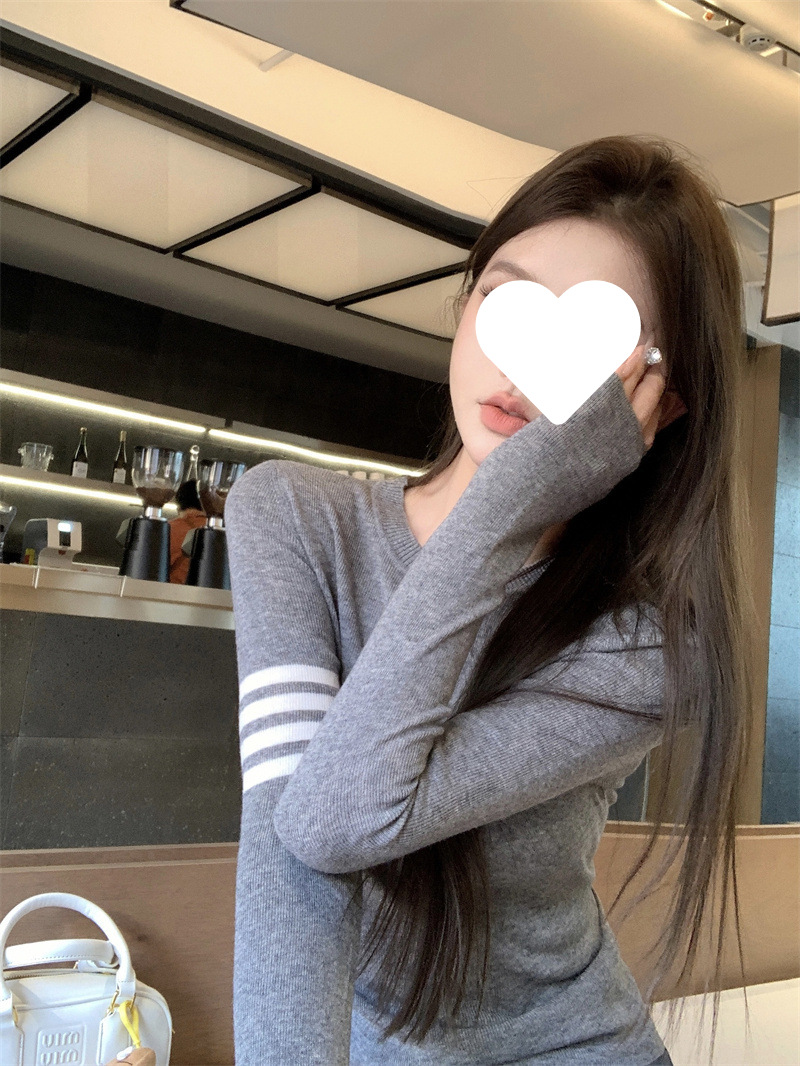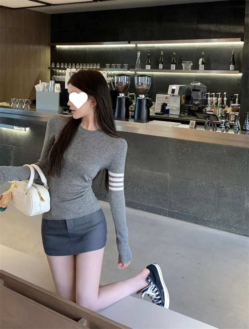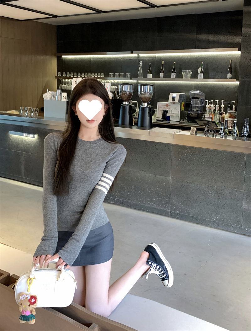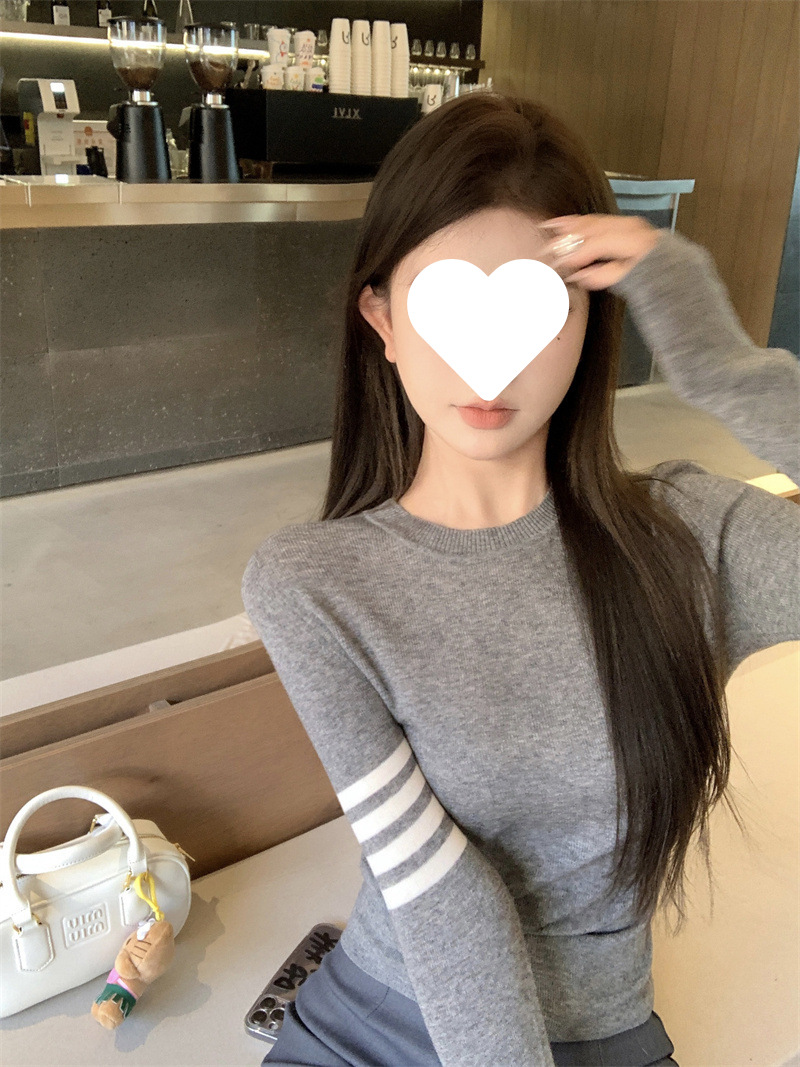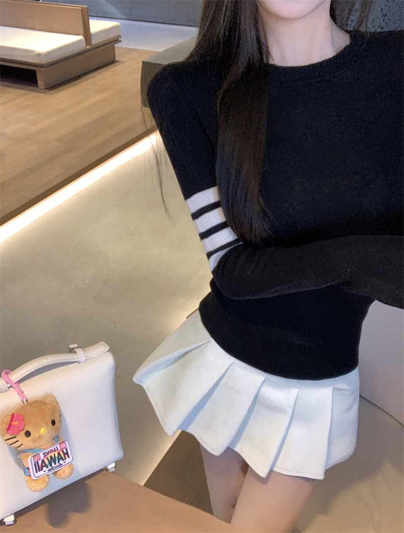 여성용 니트 스웨터 프렌치 컬리지 스타일 복고풍 스트라이프 긴팔 셔츠 가을 겨울 신작 슬림 풀오버 쇼트 탑