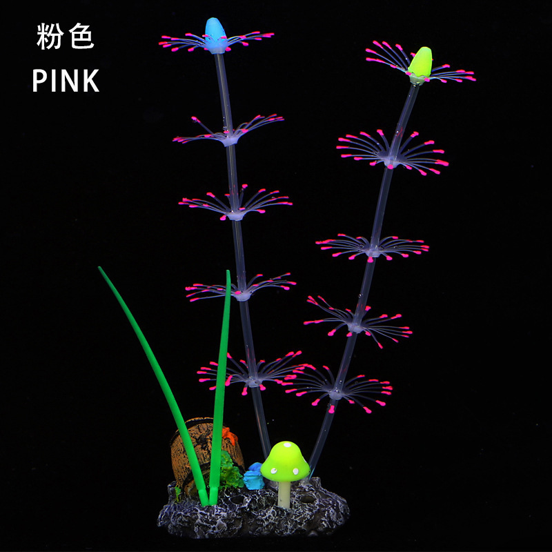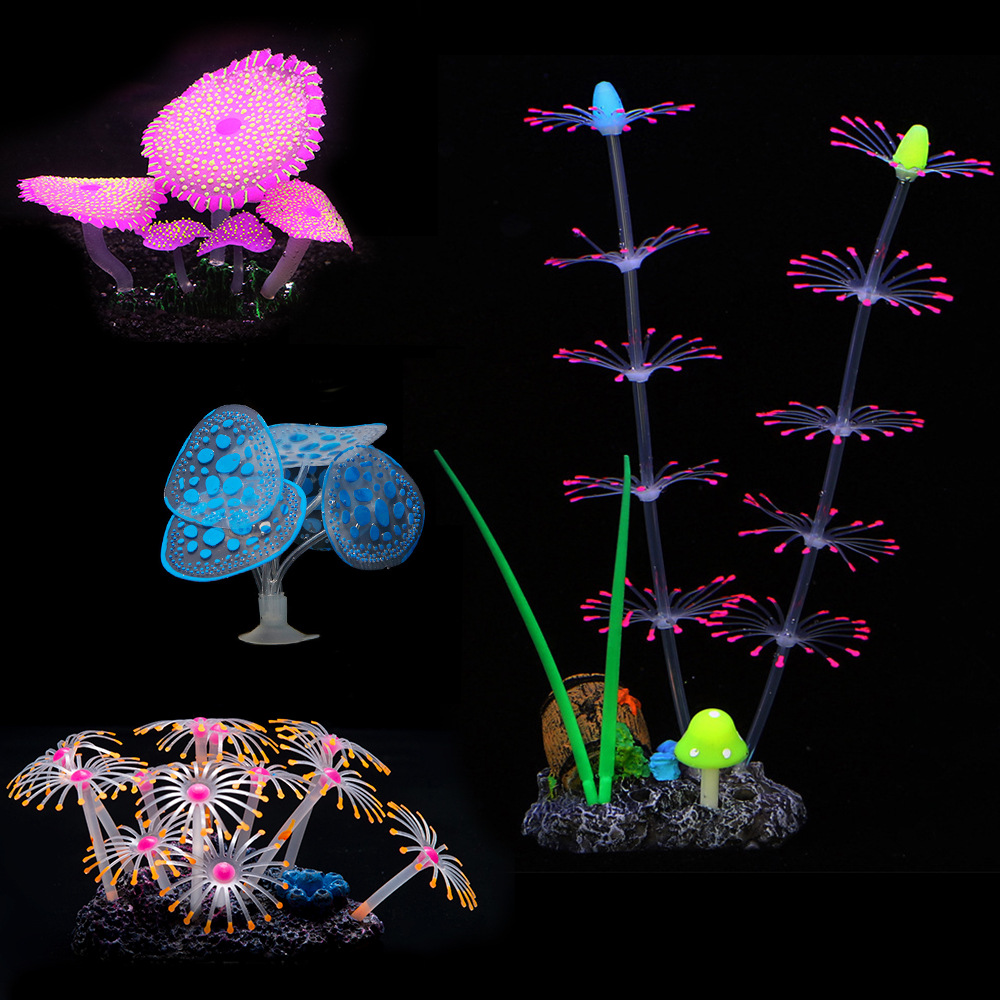 어항 모조 수초 수족관 장식 소품 부드러운 실리콘 형광 산호 수초 식물 세트
