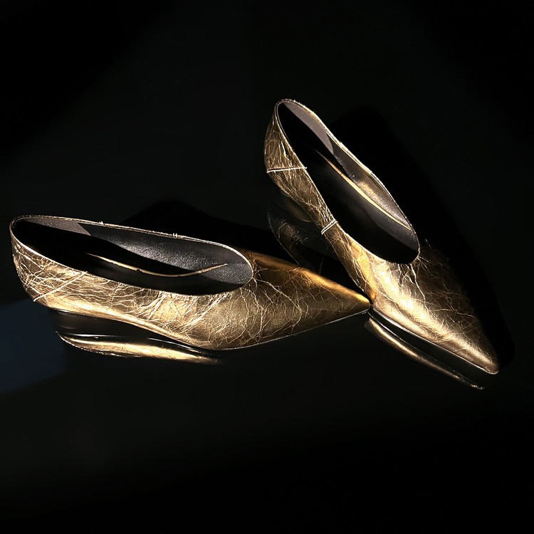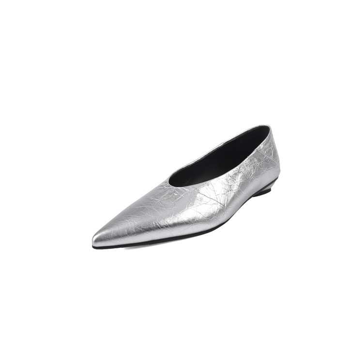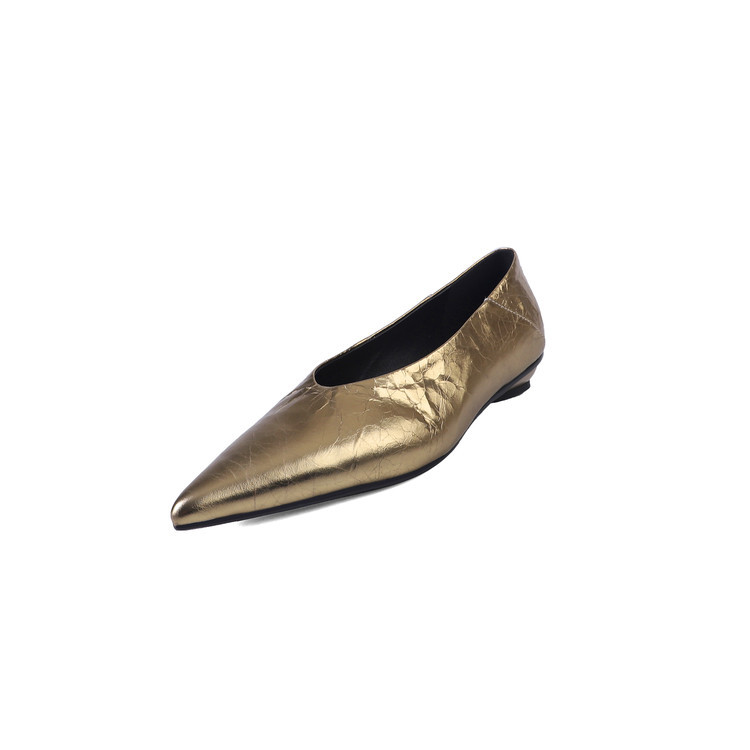 골든 얕은 입 싱글 레이어 신발 여성용 로우 힐 2025 새로운 스타일 탑 레이어 Cowhide 솔리드 컬러 레트로 포인팅 발가락 가죽 싱글 레이어 신발