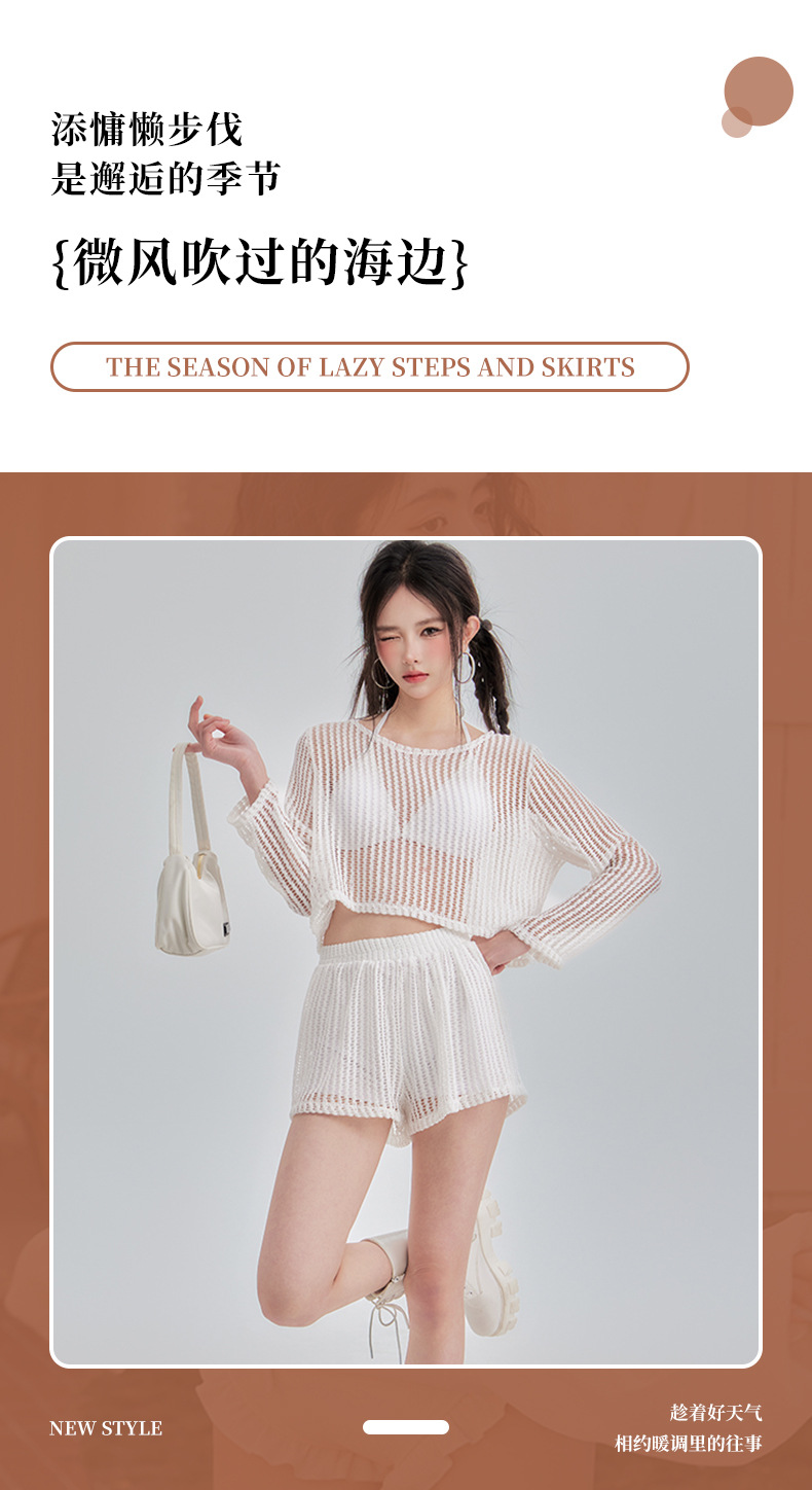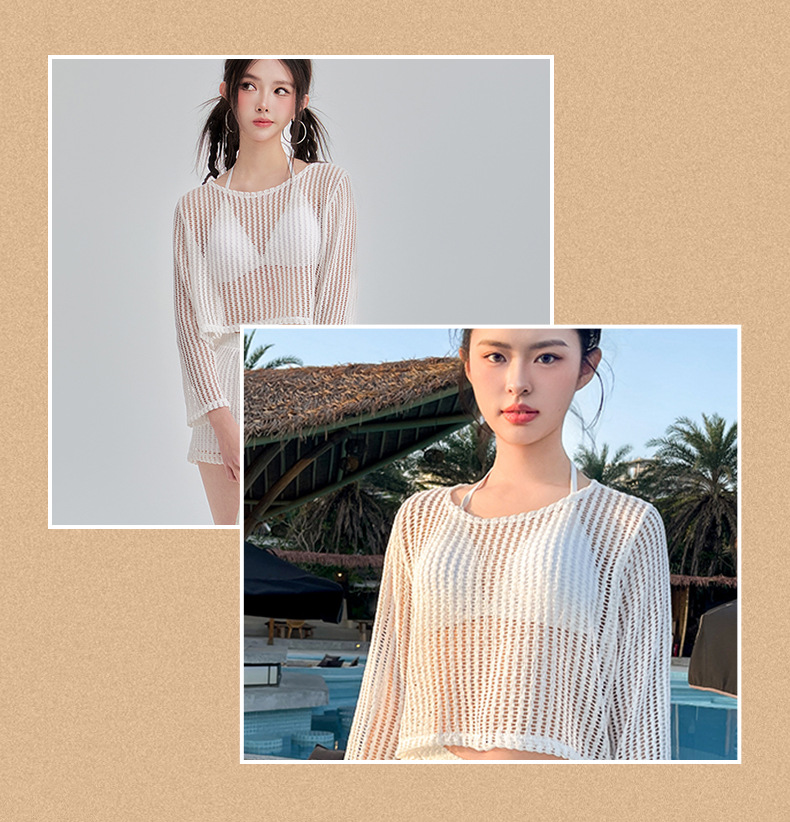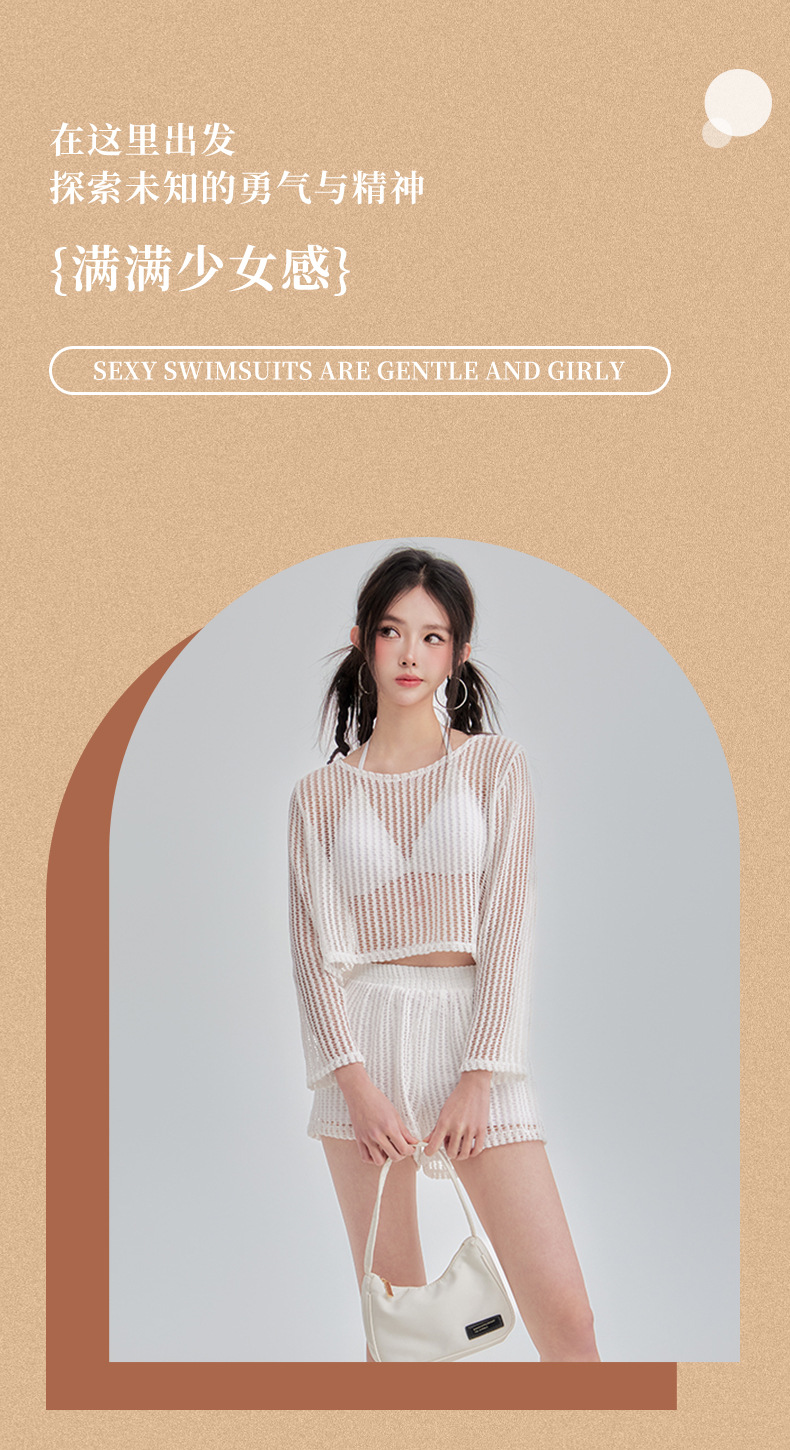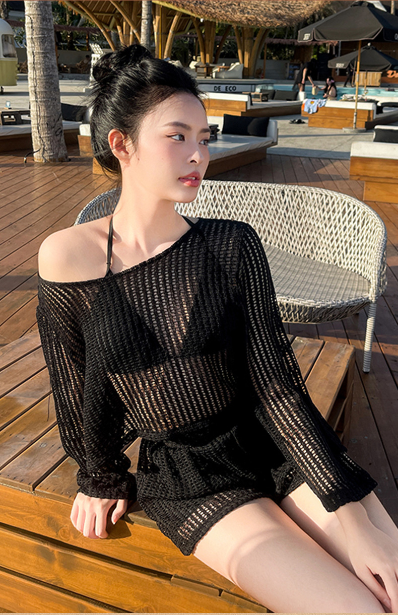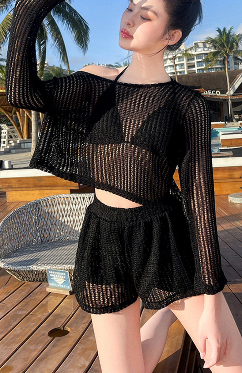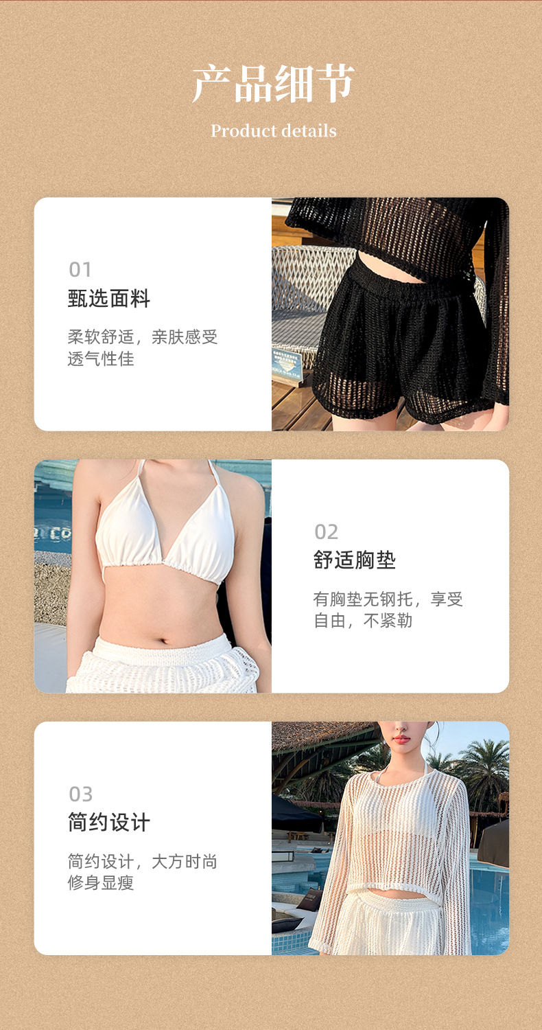[스거 러브] 수영복 여성 스플릿 비키니 쓰리피스 긴팔 커버업 레이스 온천 인터넷 연예인 수영복스토어 가기
