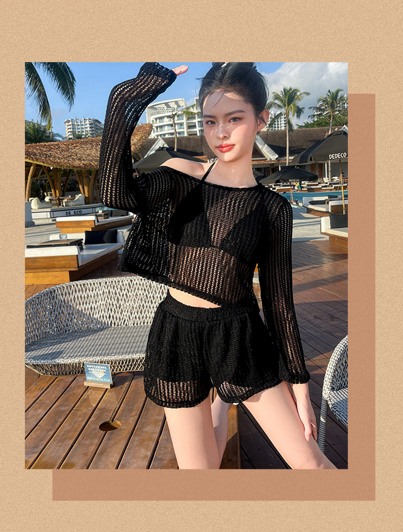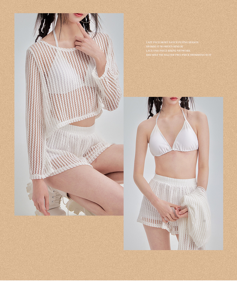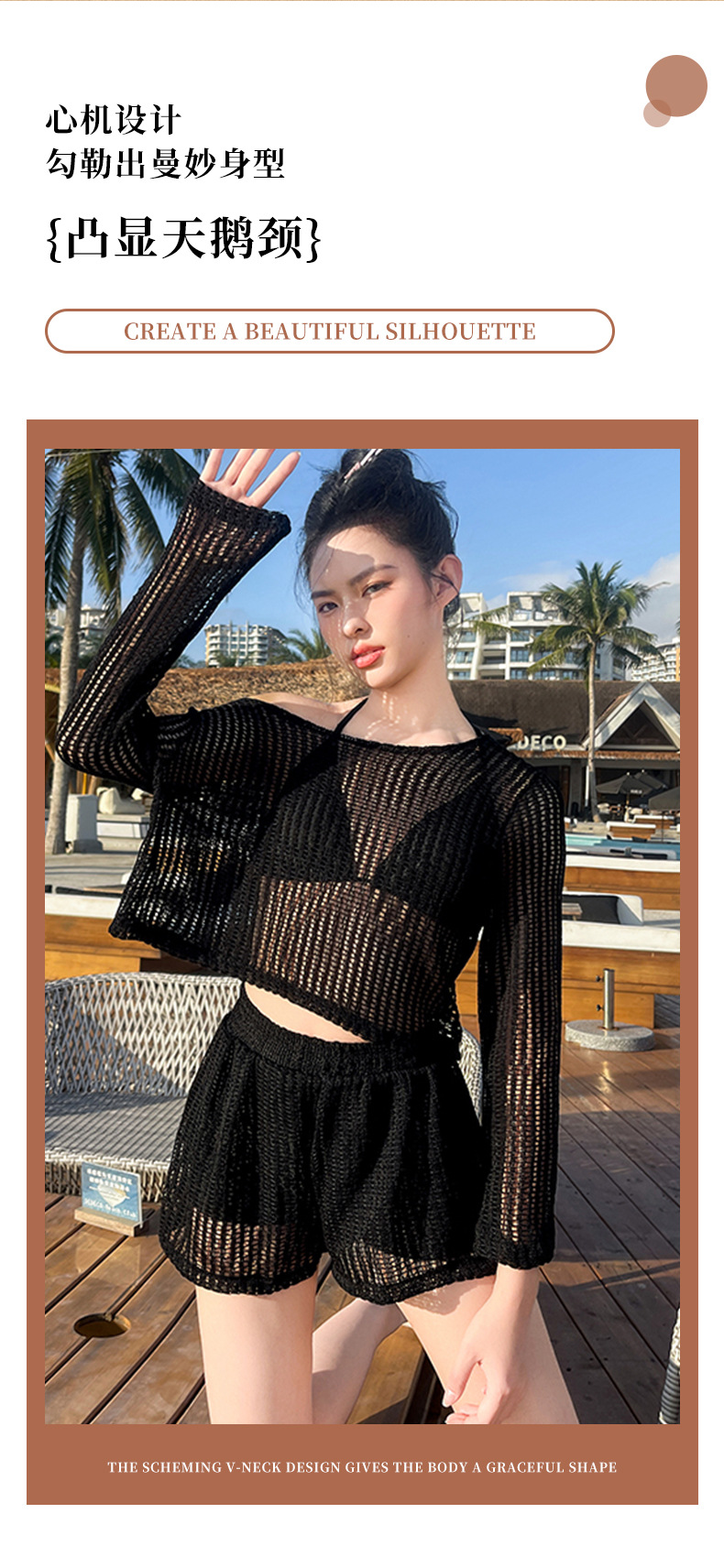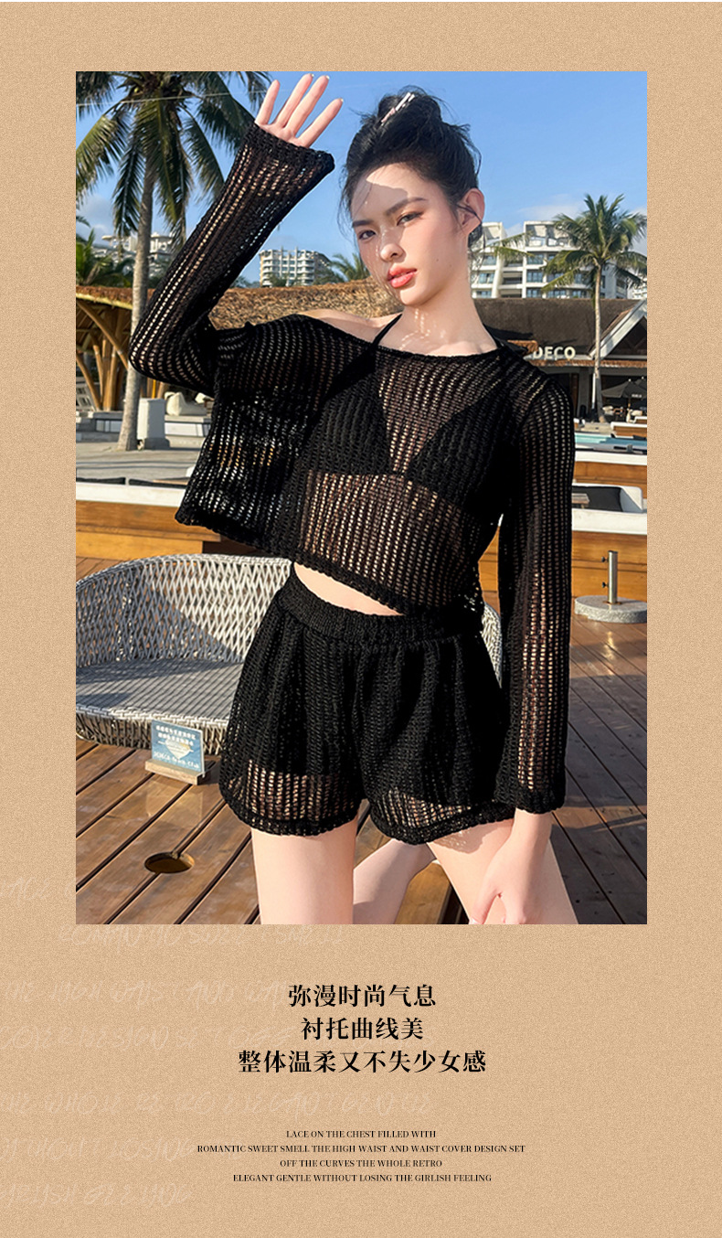 [스거 러브] 수영복 여성 스플릿 비키니 쓰리피스 긴팔 커버업 레이스 온천 인터넷 연예인 수영복