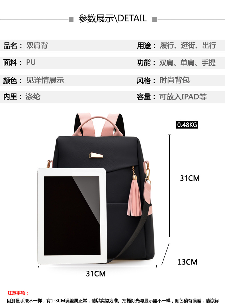 국경 간 간단한 단색 배낭 여성의 새로운 패션 여행 배낭 이중 목적 소녀 대용량 캐주얼 여성 스쿨백