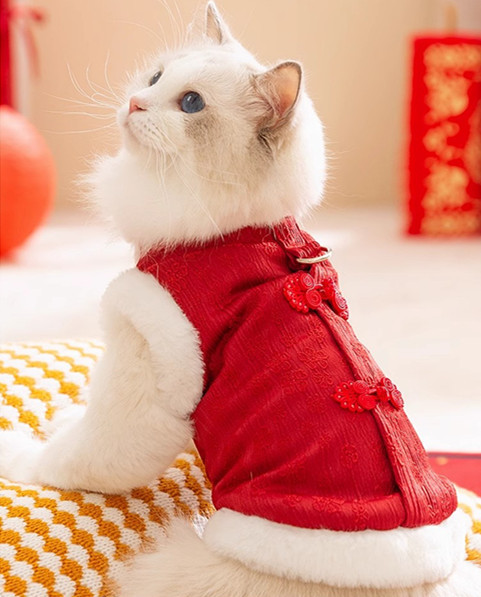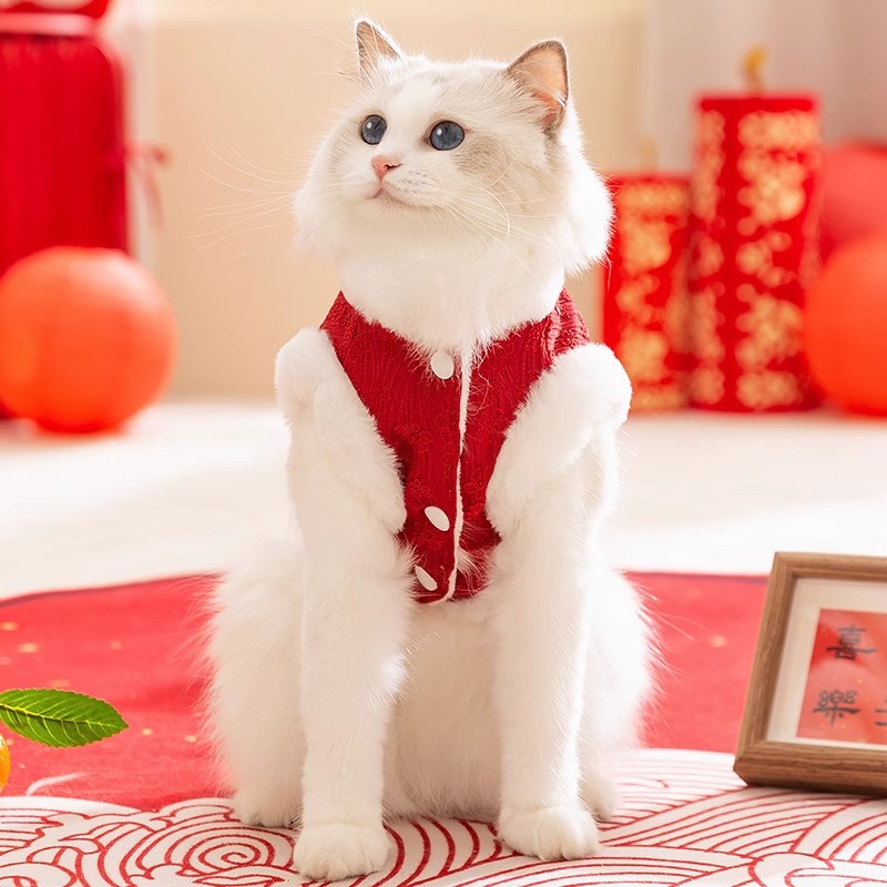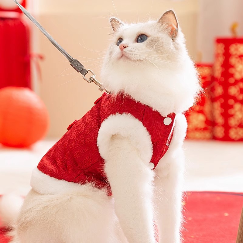 새끼 고양이 옷 가을과 겨울 설날 코튼 인형 고양이 파란 고양이 안티 헤어 애완 동물 겨울 새해 축제 조끼스토어 가기