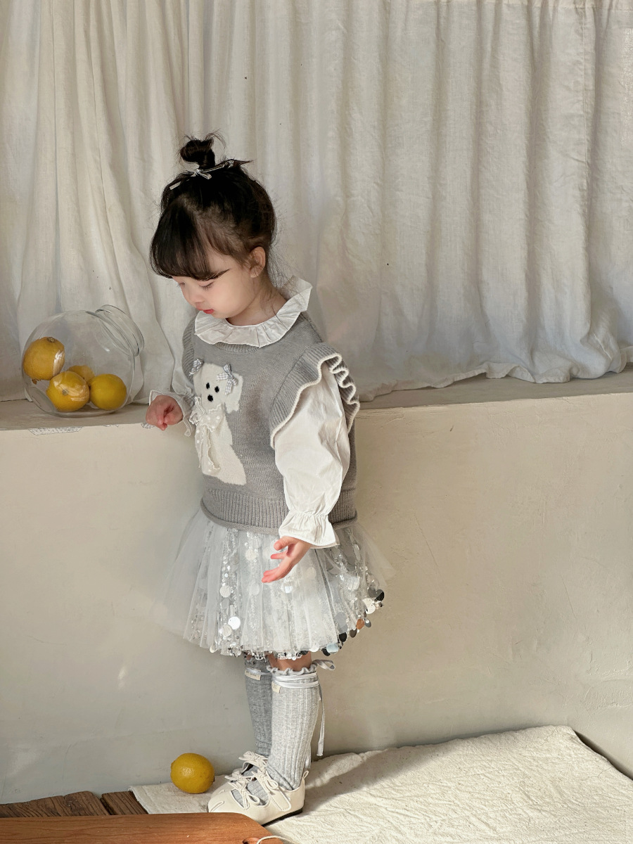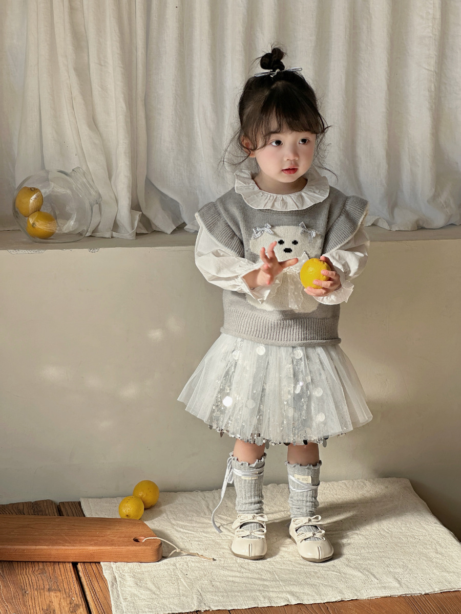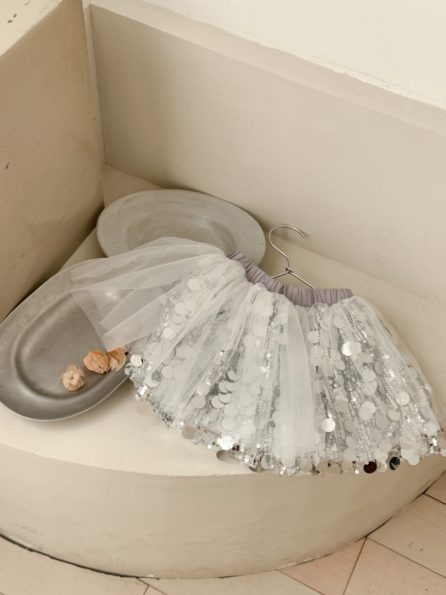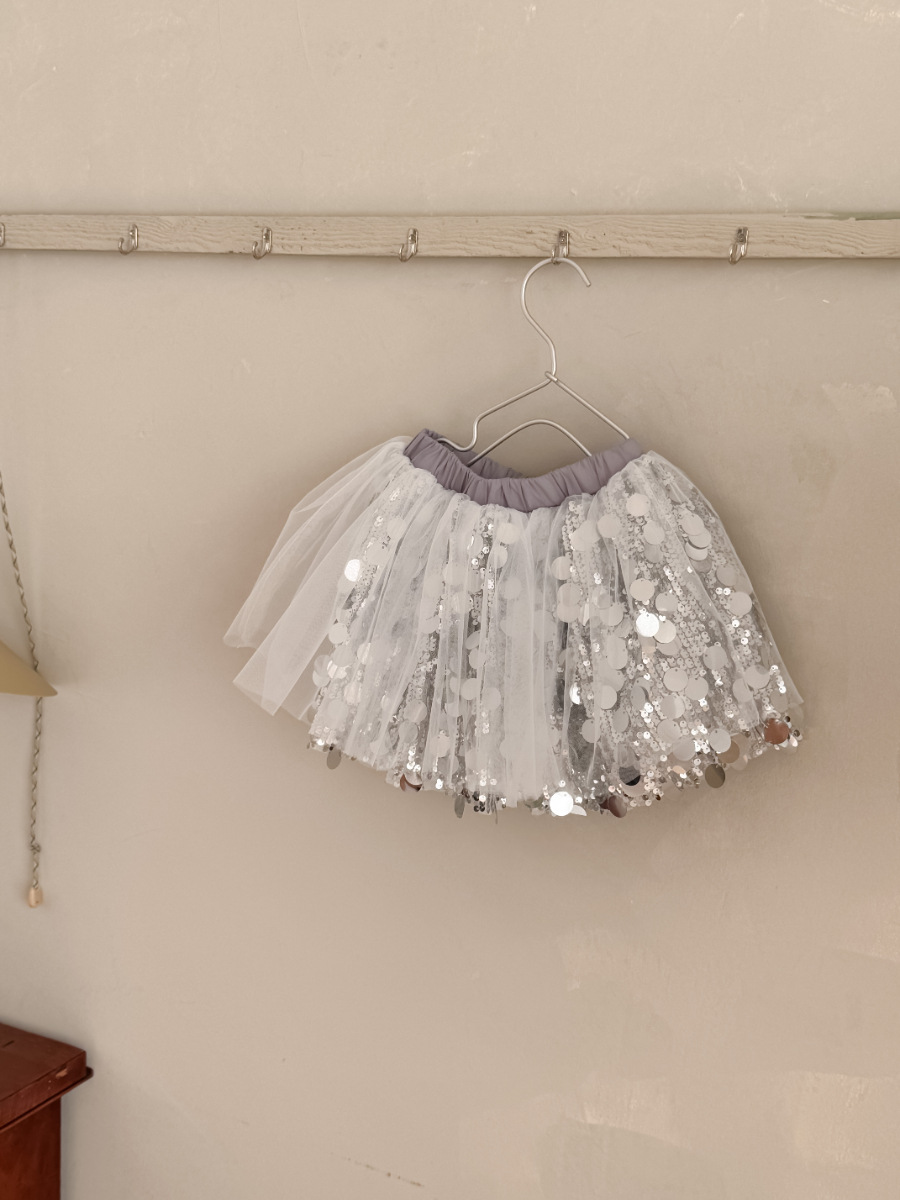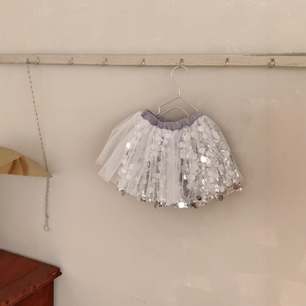 여아용 반짝이 망사 스커트 2025 가을 신상 스커트 어린이 여아 반바지 스커트 은색 반짝이 짧은 스커트
