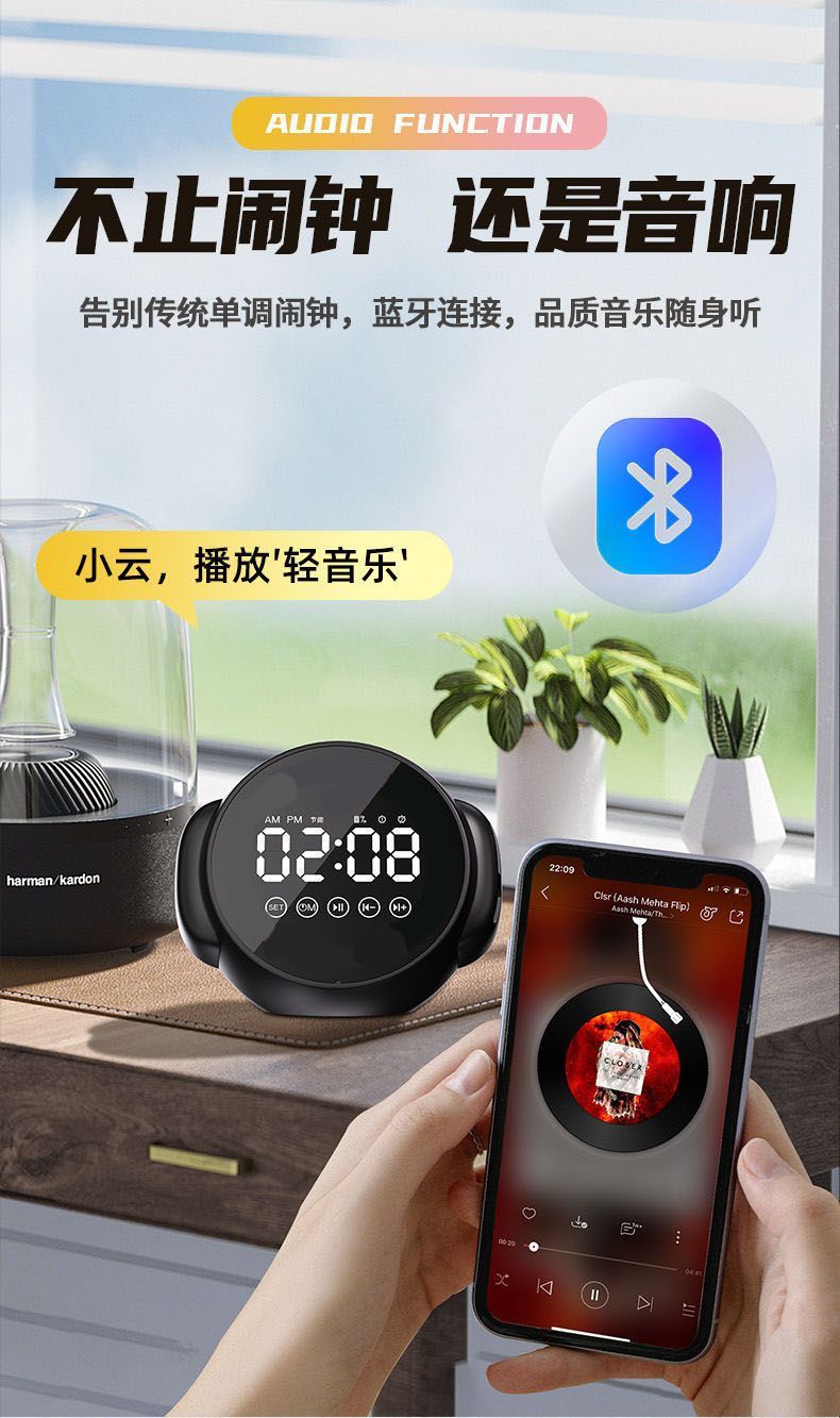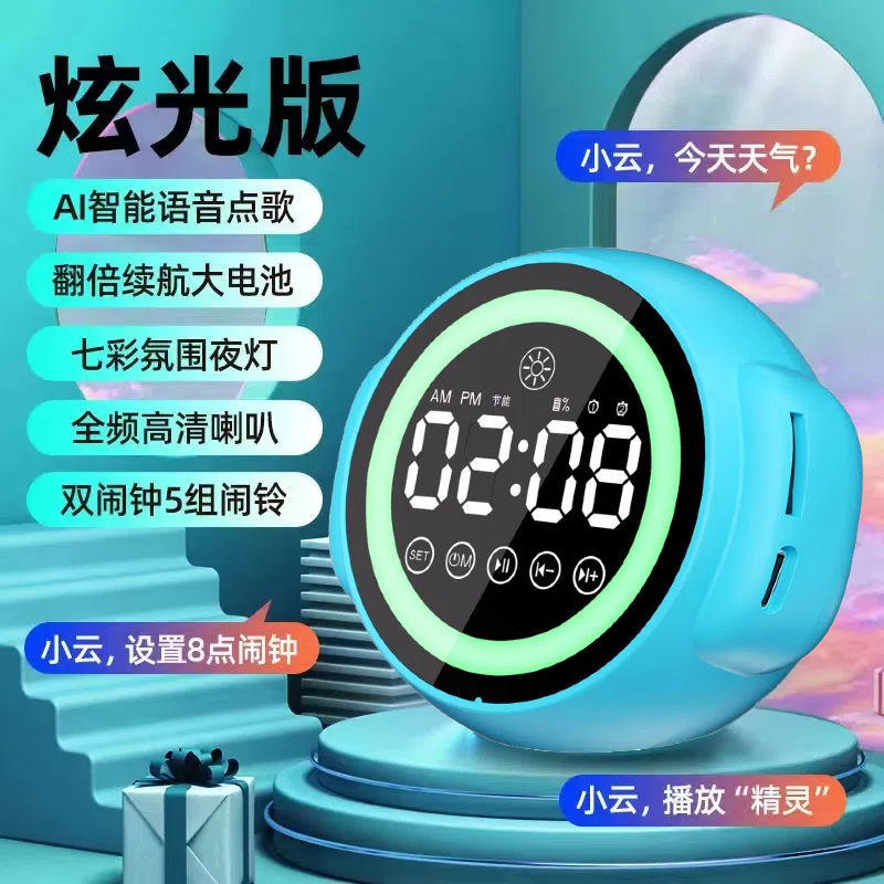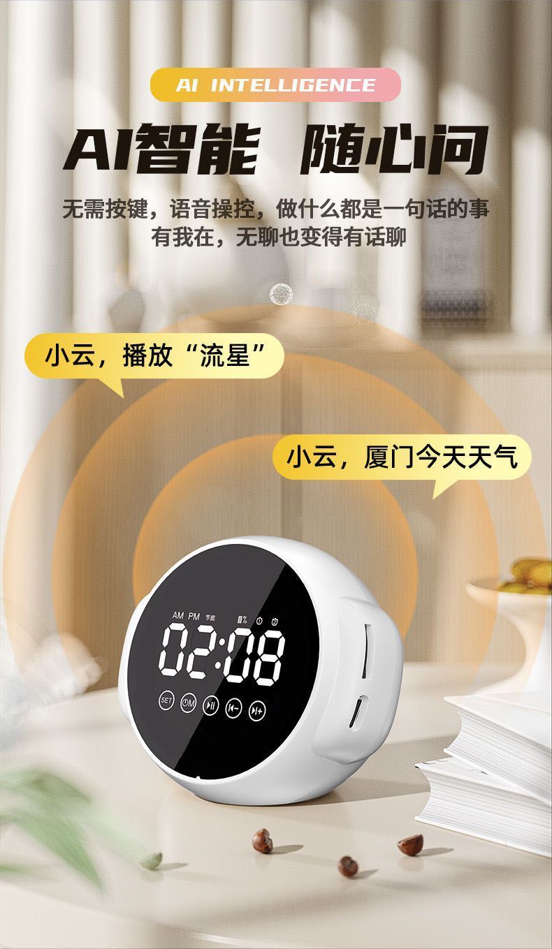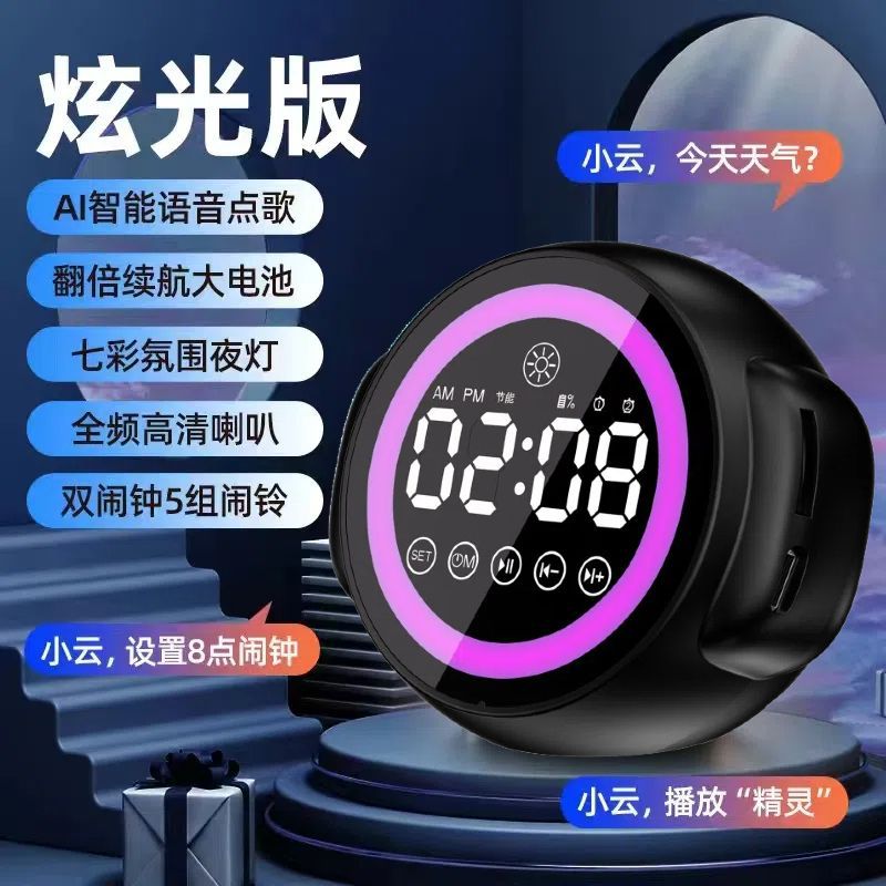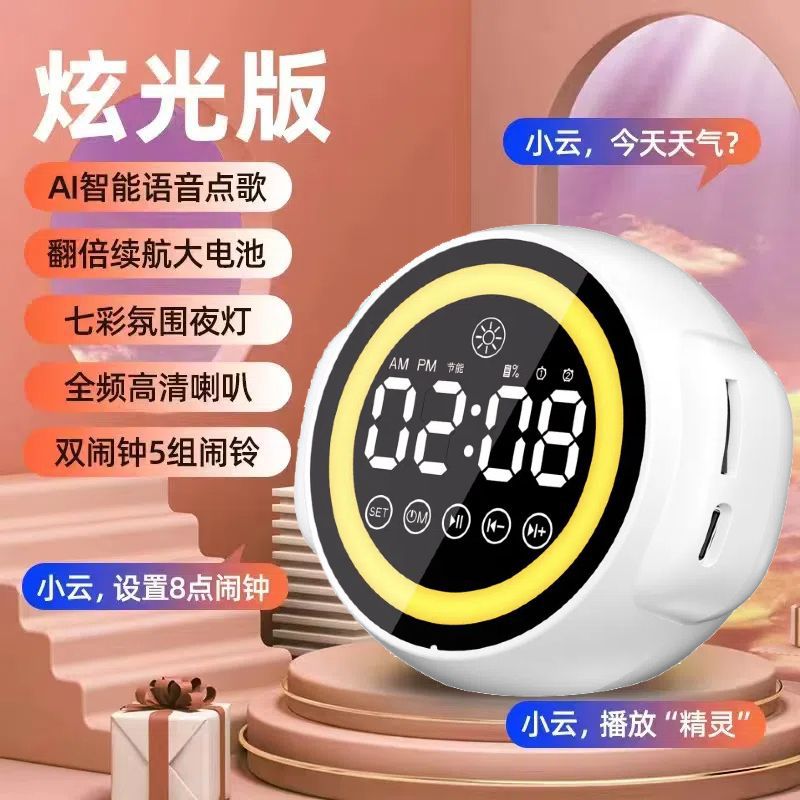 지능형 AI 음성 블루투스 스피커 알람 시계 무선 다기능 학생 경보 대용량 서브 우퍼 사운드의 엄격한 선택스토어 가기