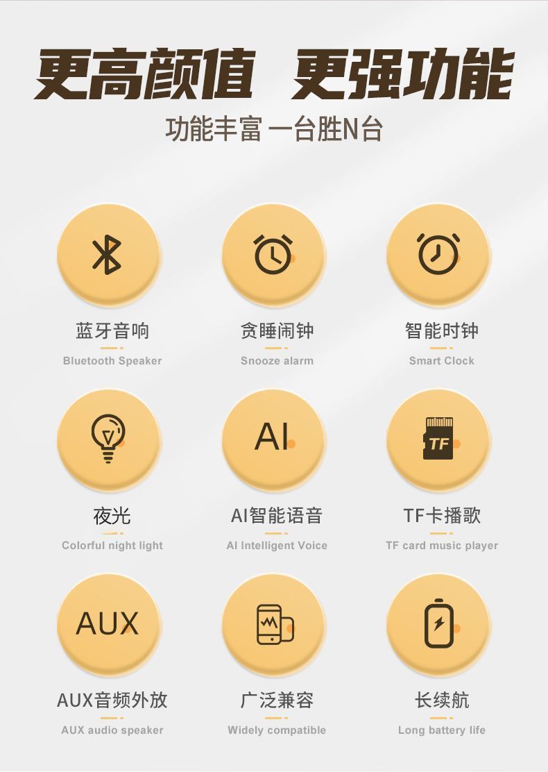 지능형 AI 음성 블루투스 스피커 알람 시계 무선 다기능 학생 경보 대용량 서브 우퍼 사운드의 엄격한 선택